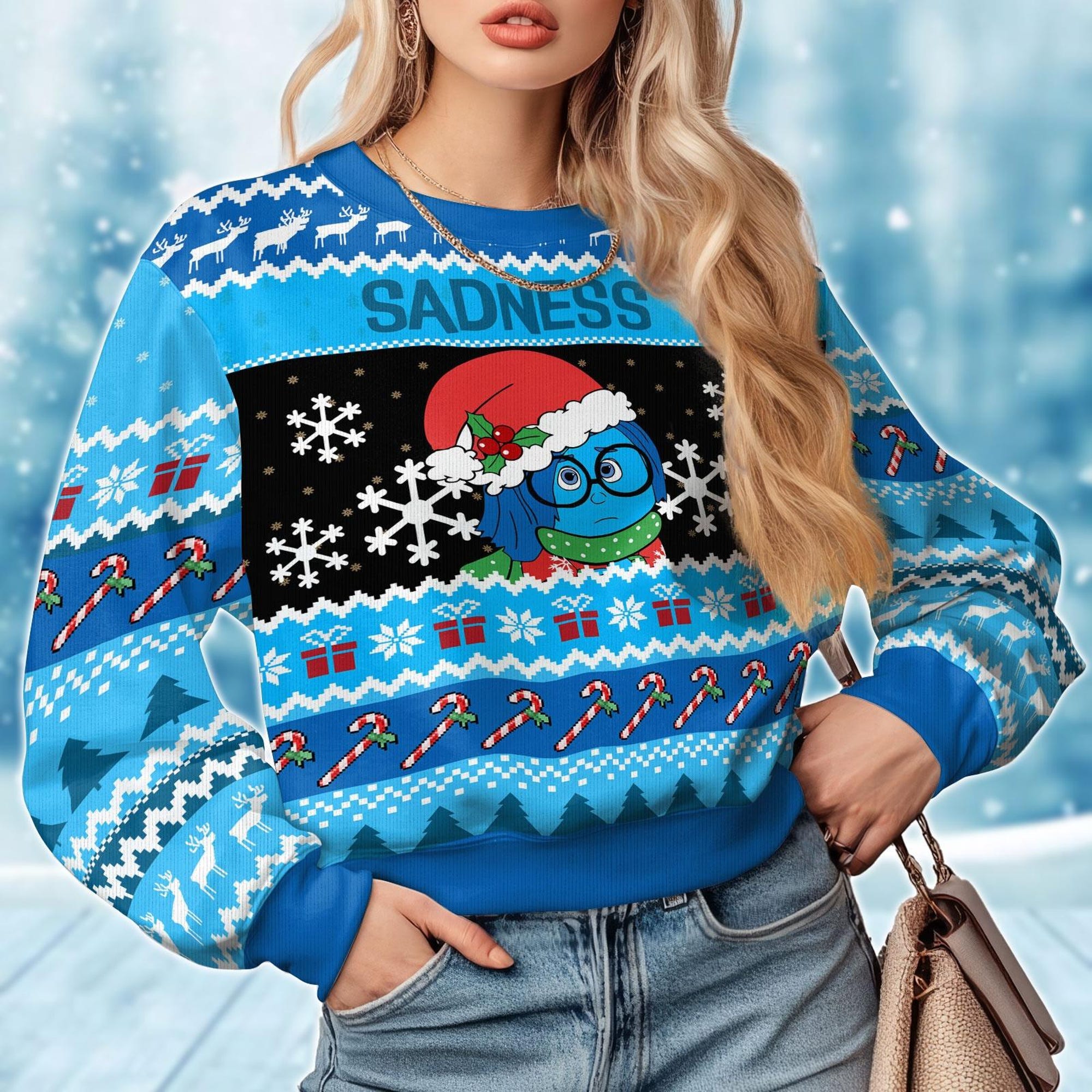 Disney Sadness Ugly Christmas Sweater, Inside Out 2 Holiday Sweater, Disney Feelings Xmas Sweater, Holiday Trip, Gift For Women Men Kid