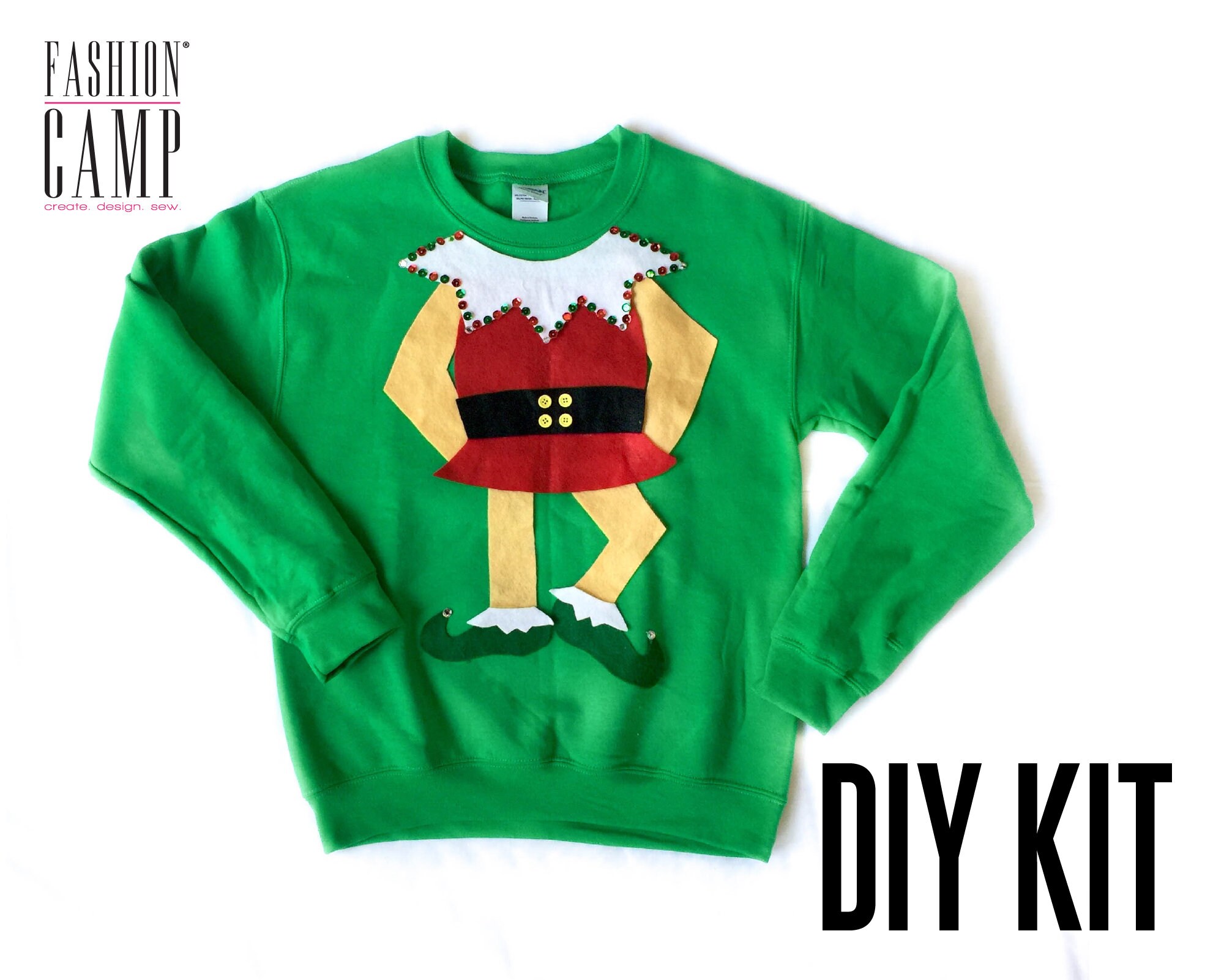Elf Ugly Christmas Sweater DIY Kit: Kids & Adult Sizes