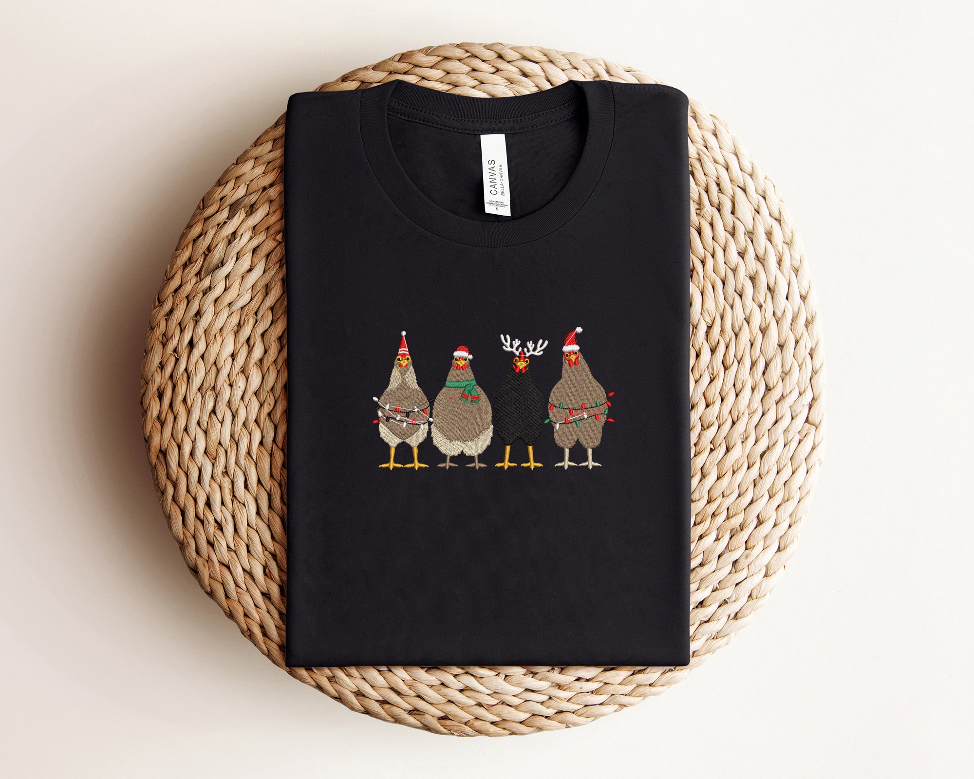 Embroidered Christmas Chicken Sweatshirt, Embroidered Christmas Shirt, Christmas Shirt, Christmas Chicken Sweatshirt, Christmas Matching Tee