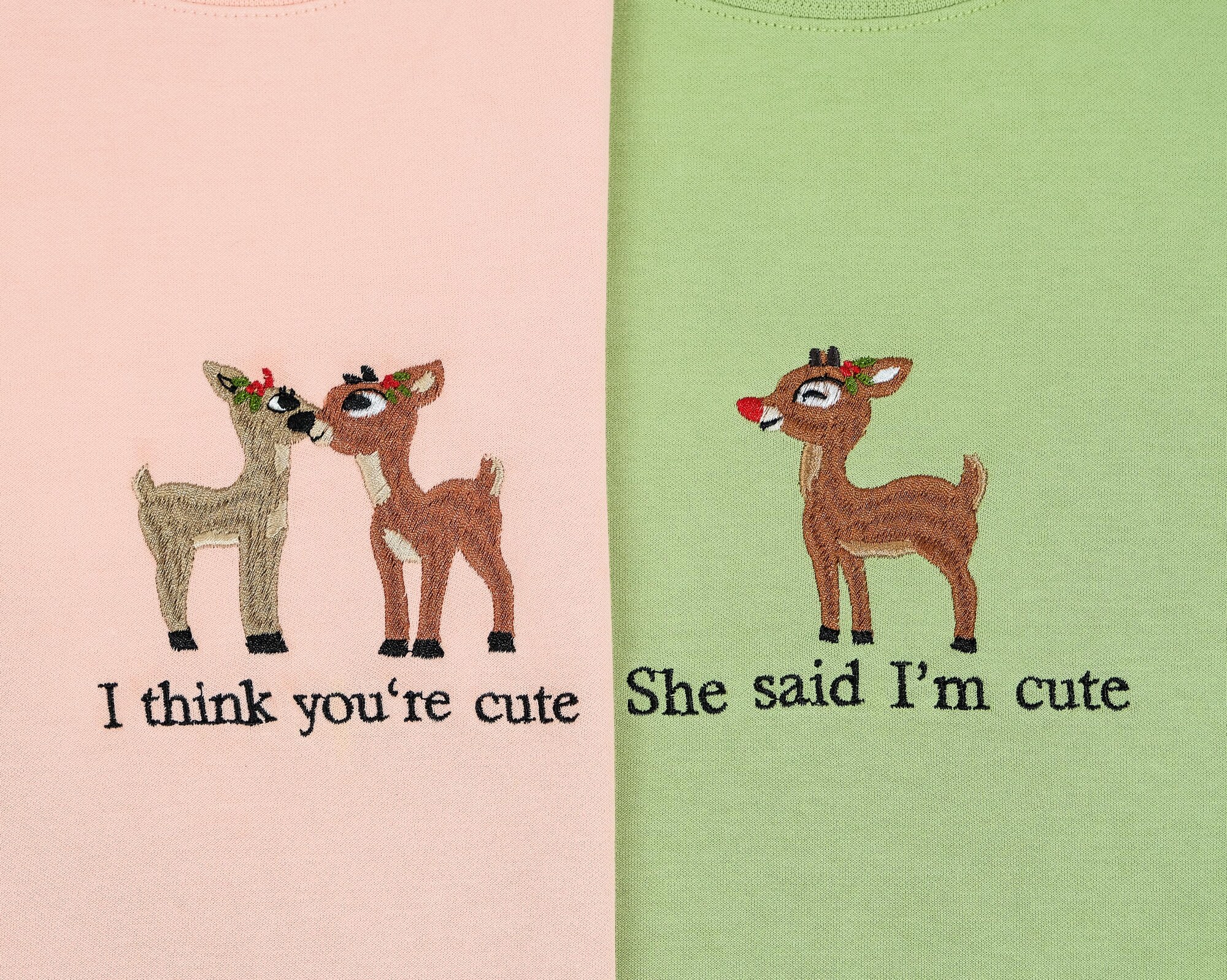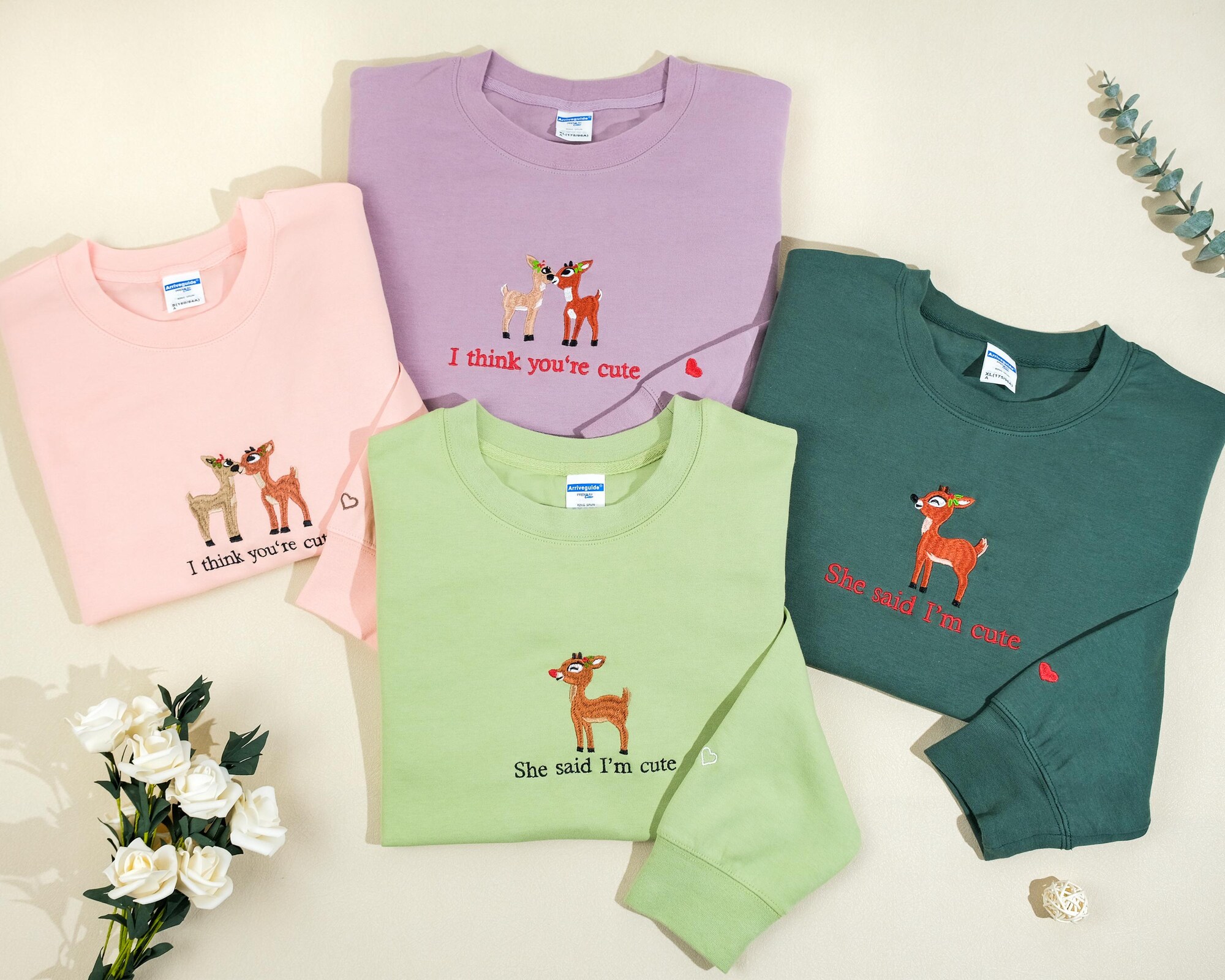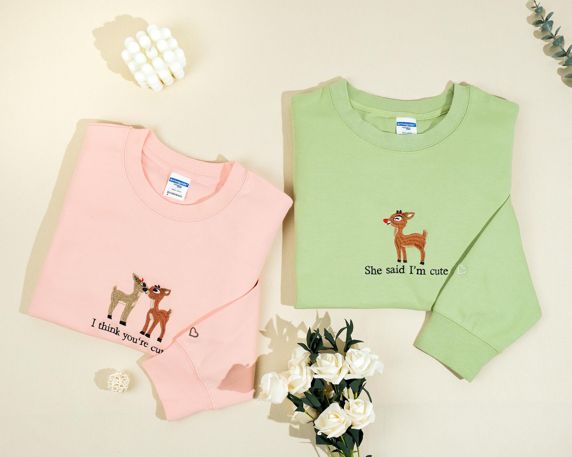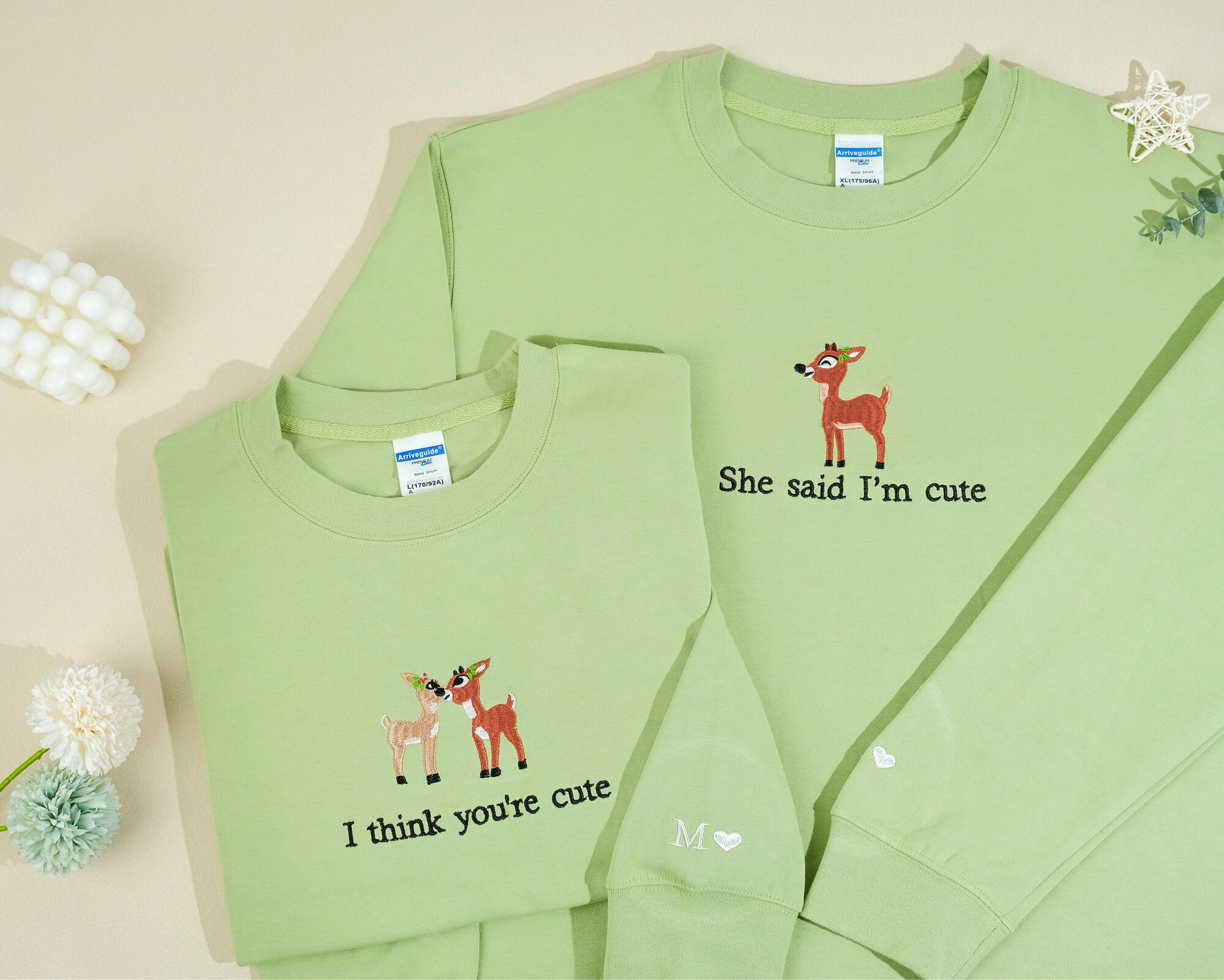 Embroidered Christmas Couple Sweatshirt,Custom Initial Heart on Sleeve Hoodie ,Funny Christmas Sweatshirt ,Embroidered Reindeer Hoodie
