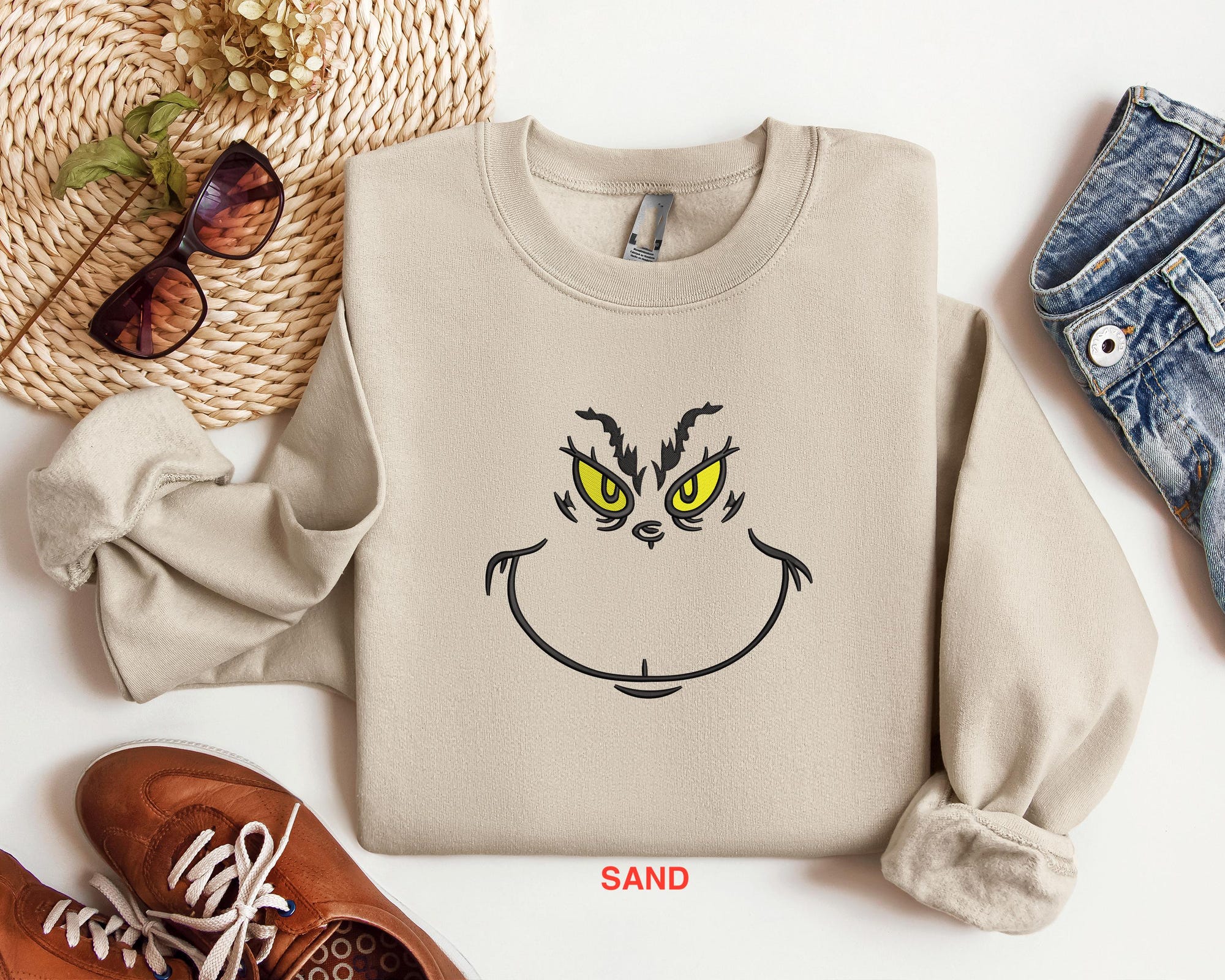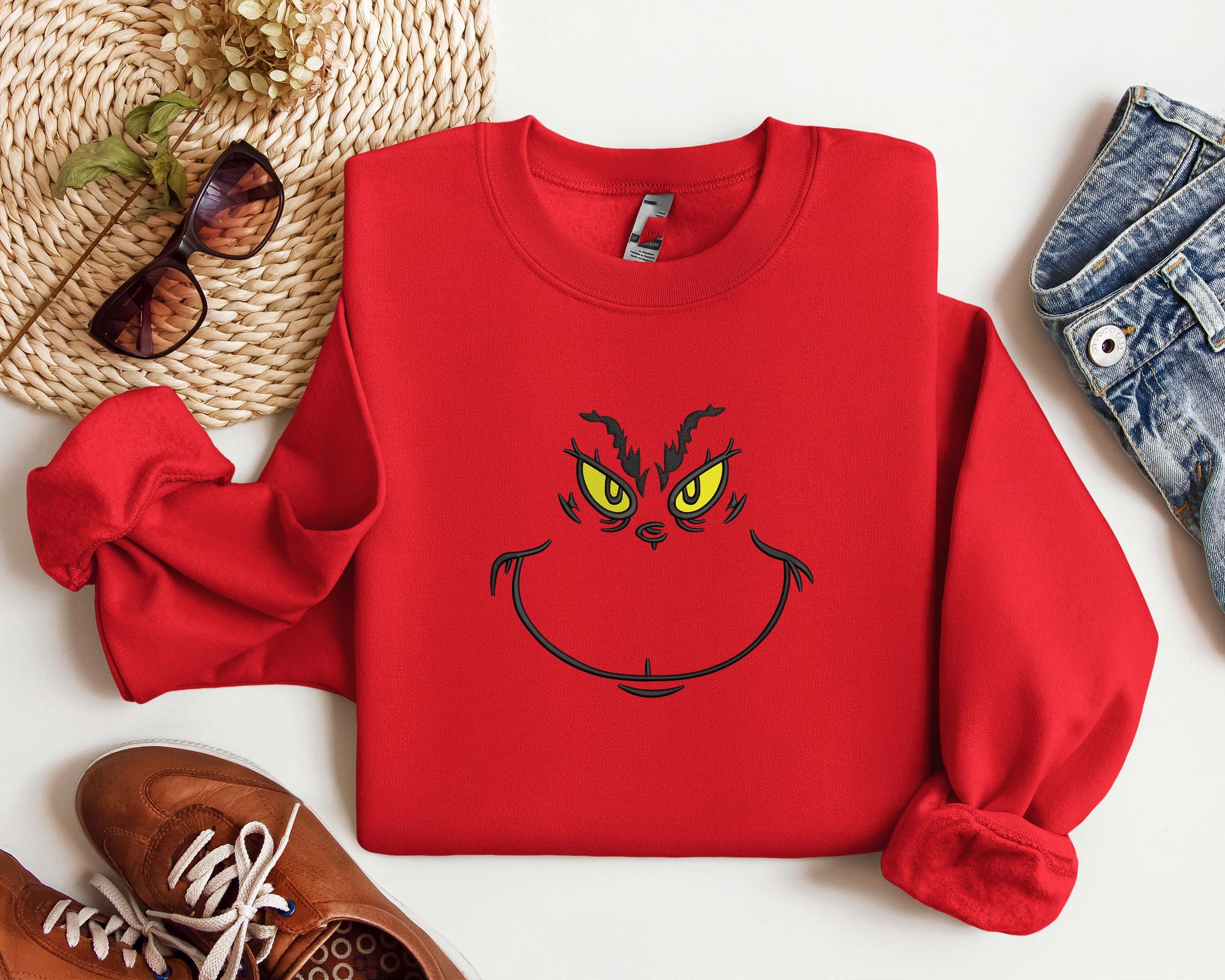 Embroidered Grinch Sweatshirt, Embroidered Grinch Face Shirt, Christmas Shirt, Christmas Grinch Sweatshirt, Grinch Face Sweatshirt