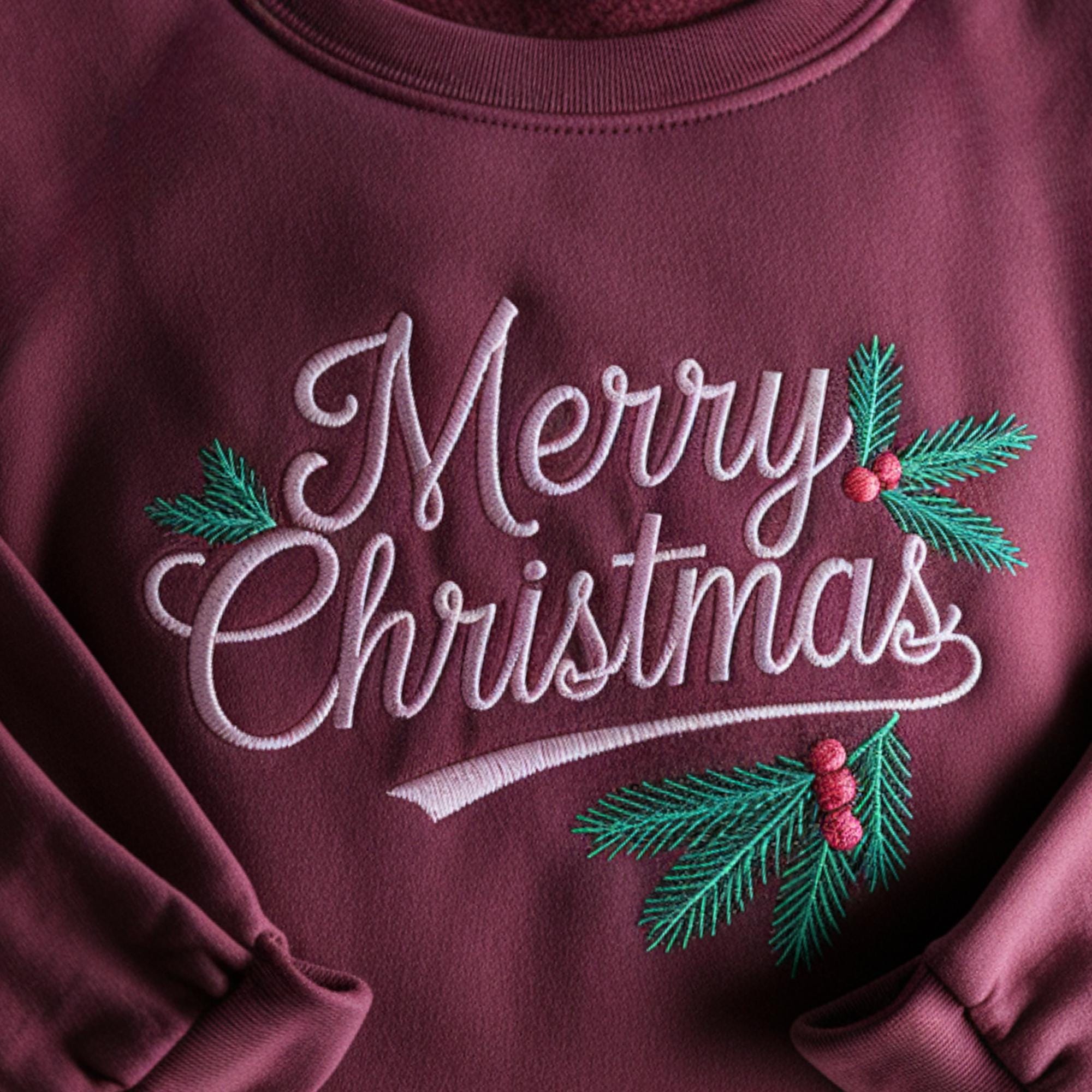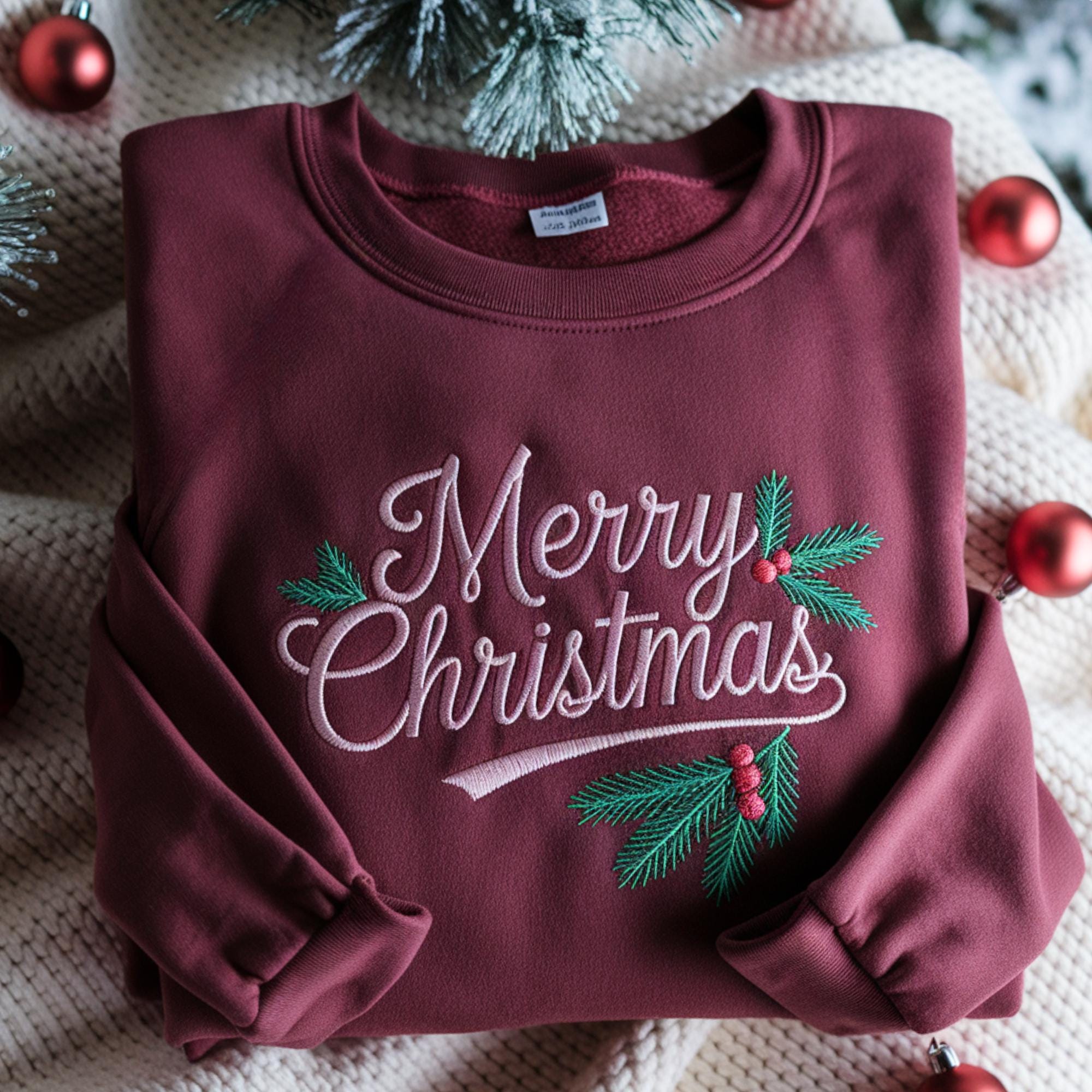 Embroidered Merry Christmas Sweatshirt: Holiday Family Shirt