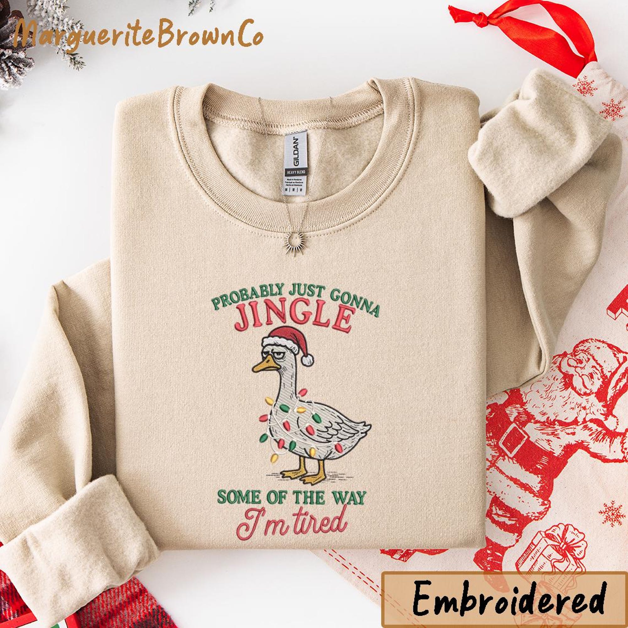 Embroidered Probably Just Gonna Jingle Tired Sweatshirt, Funny Silly Goose Christmas Sweatshirt, Holiday Humor, Christmas Gift for Women