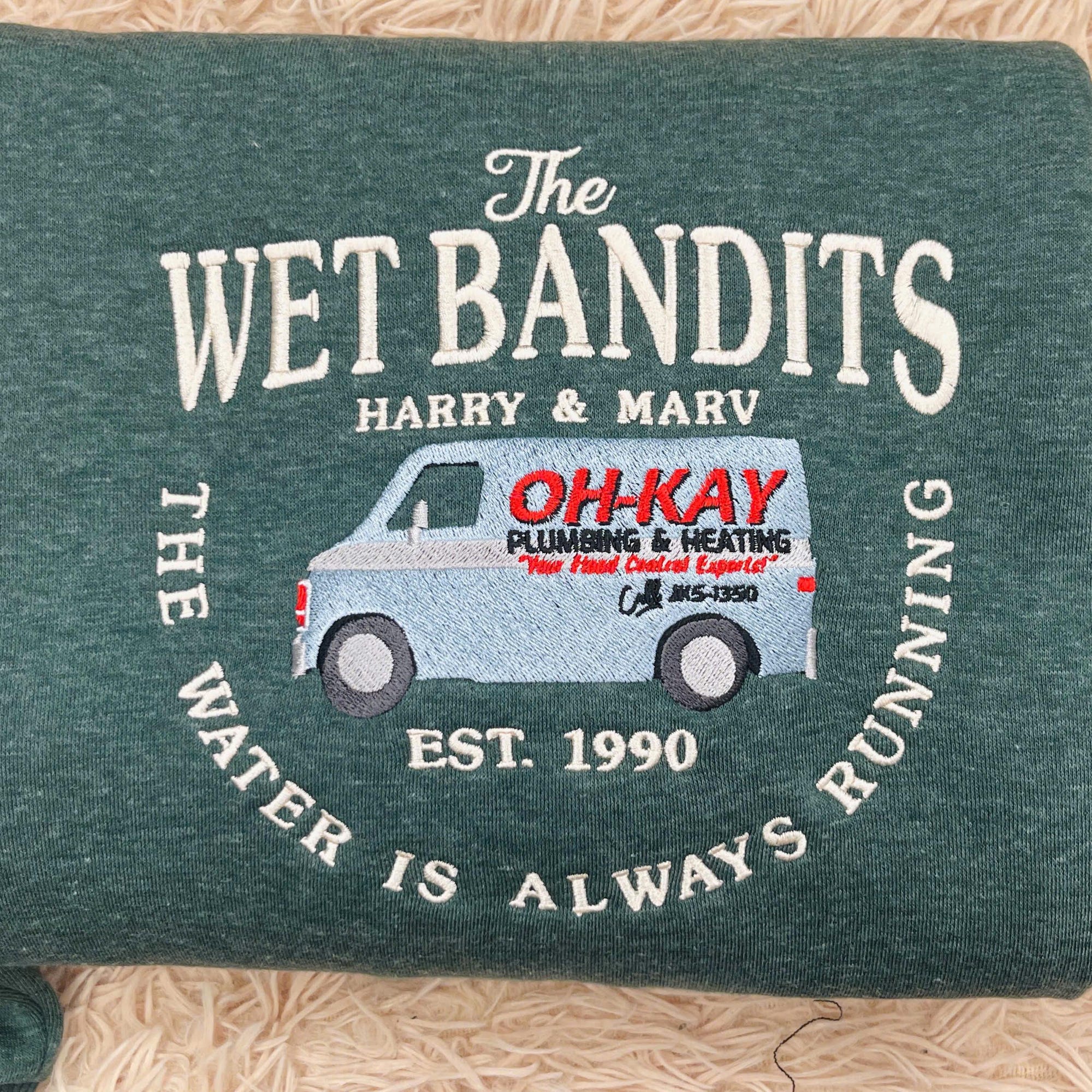 Embroidered Wet Bandits Plumbing Co Sweatshirt: Holiday Movie Lover Gifts, Funny Christmas Movie Crewneck
