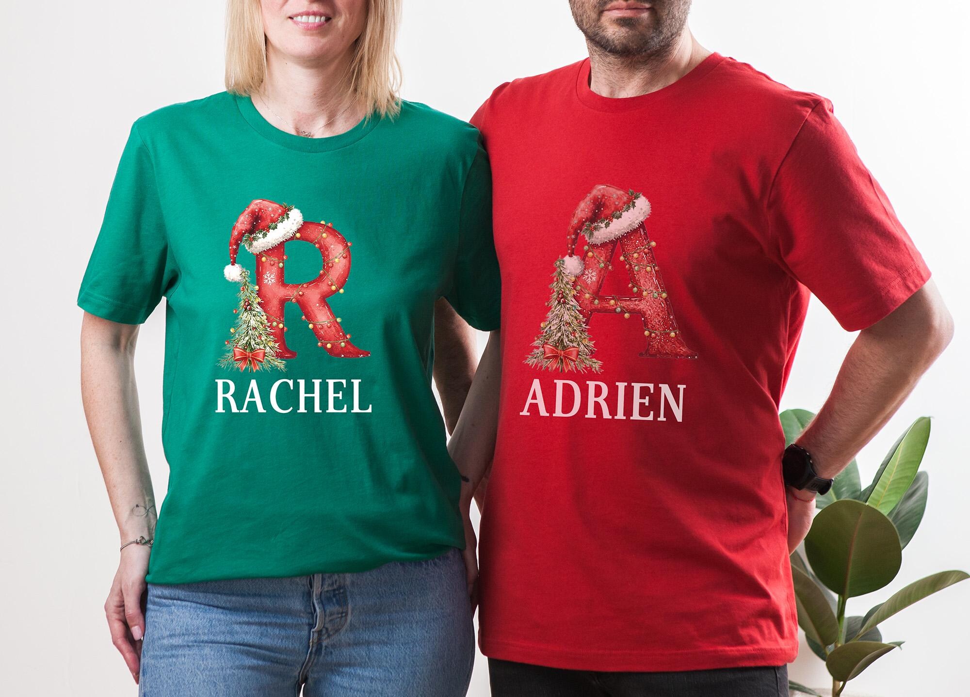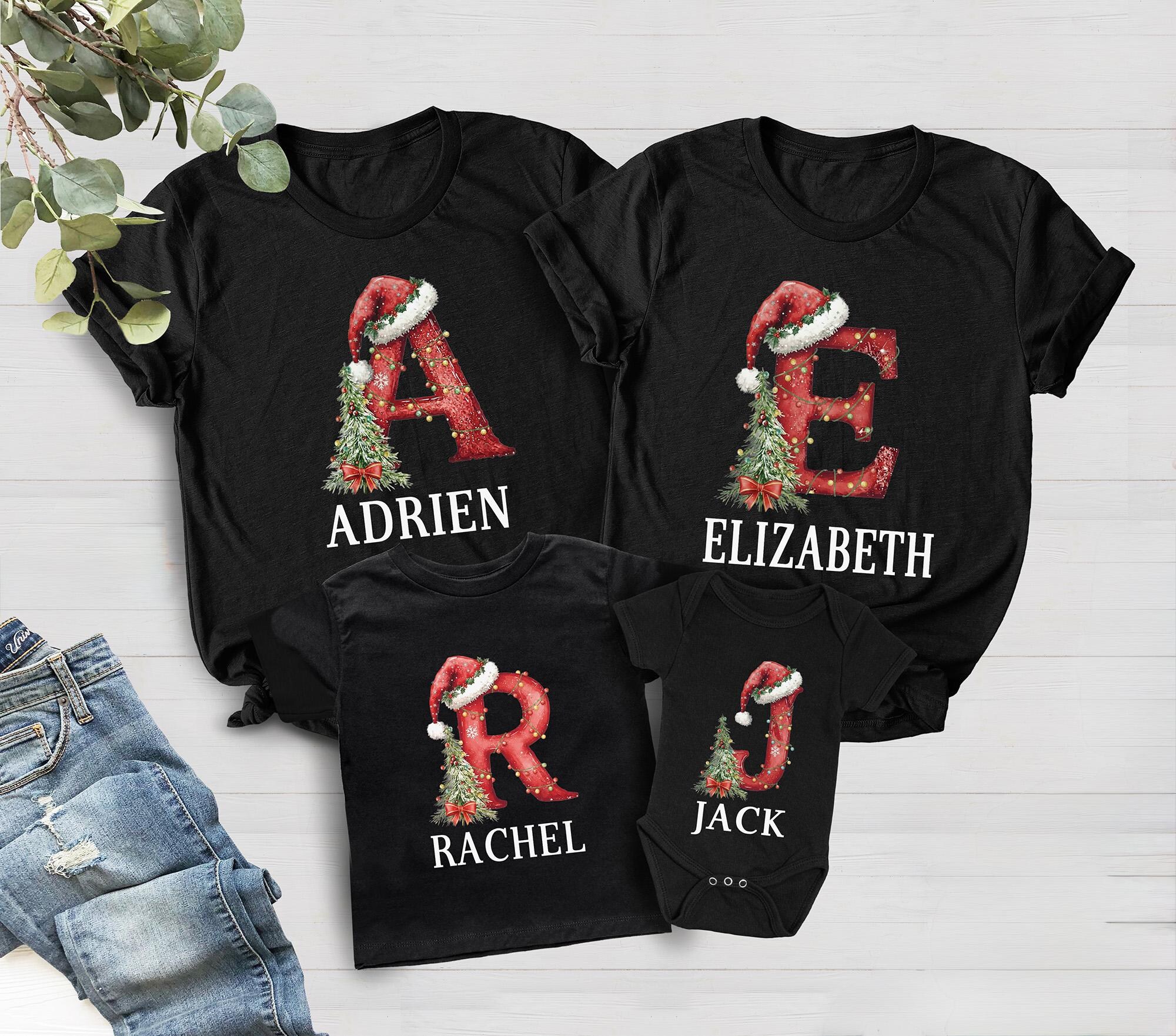 Family Christmas Shirt, Christmas Name Custom Shirt, Funny Family Xmas Pjs, Christmas Custom Letter Shirt, Personalized Christmas Family Tee