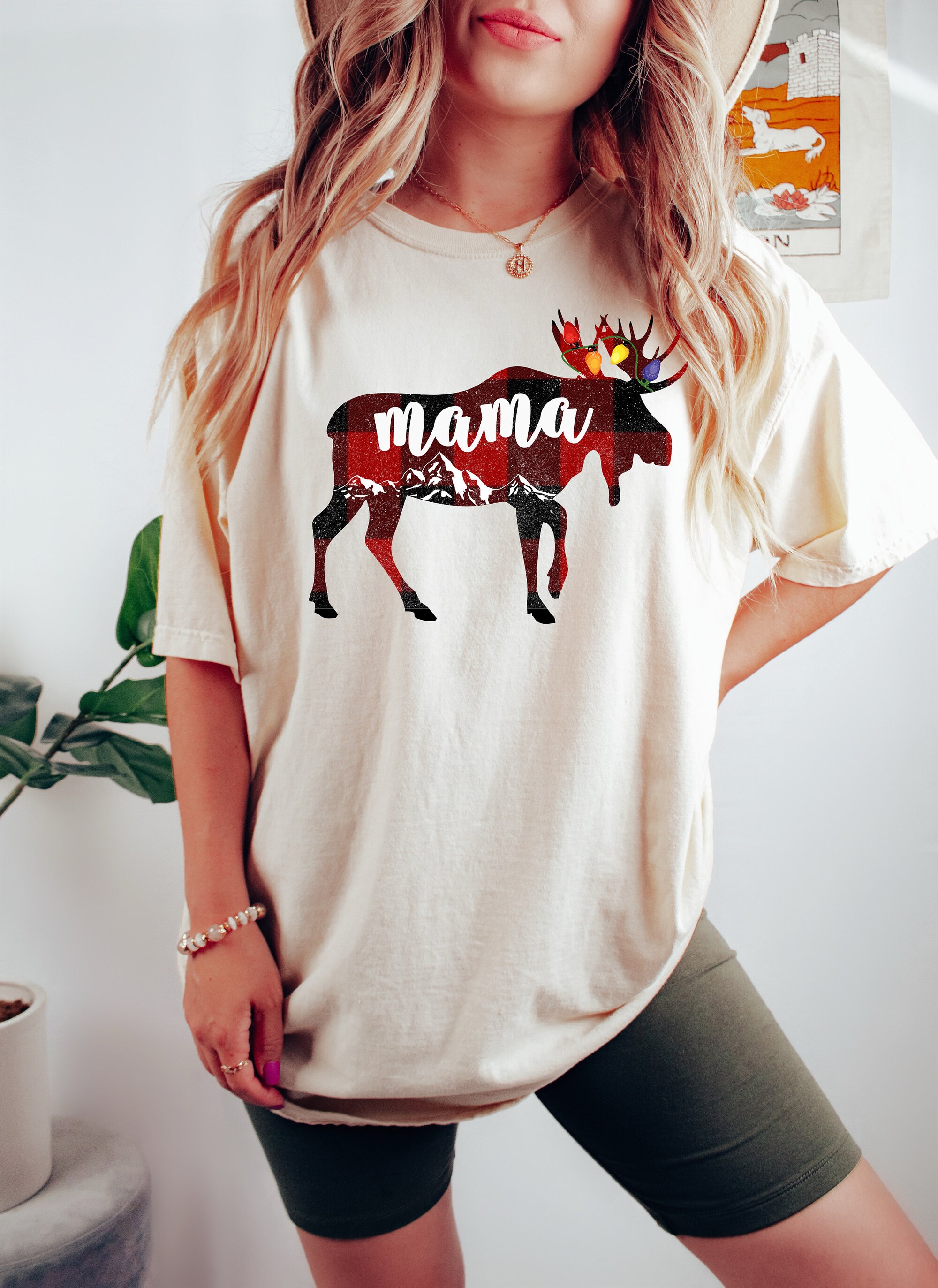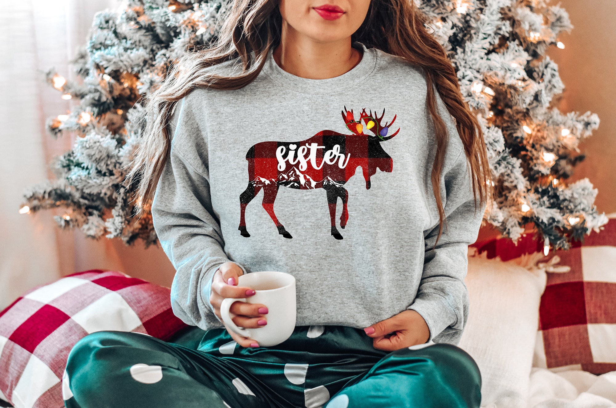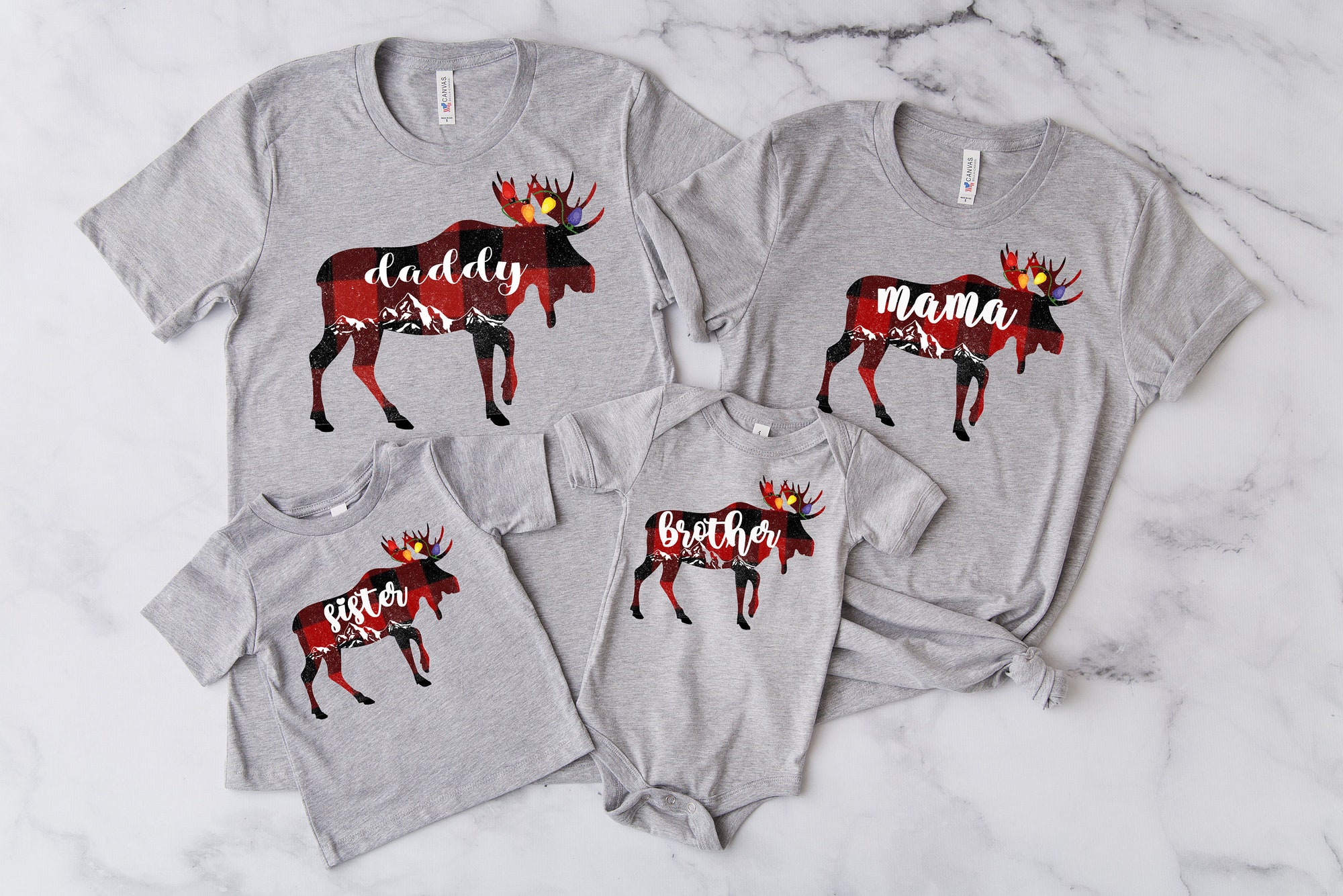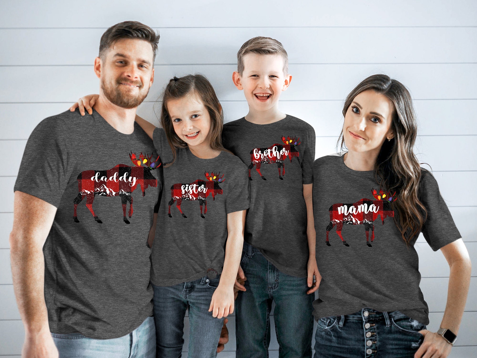 Family Moose Christmas Shirt: Buffalo Plaid Matching Tee