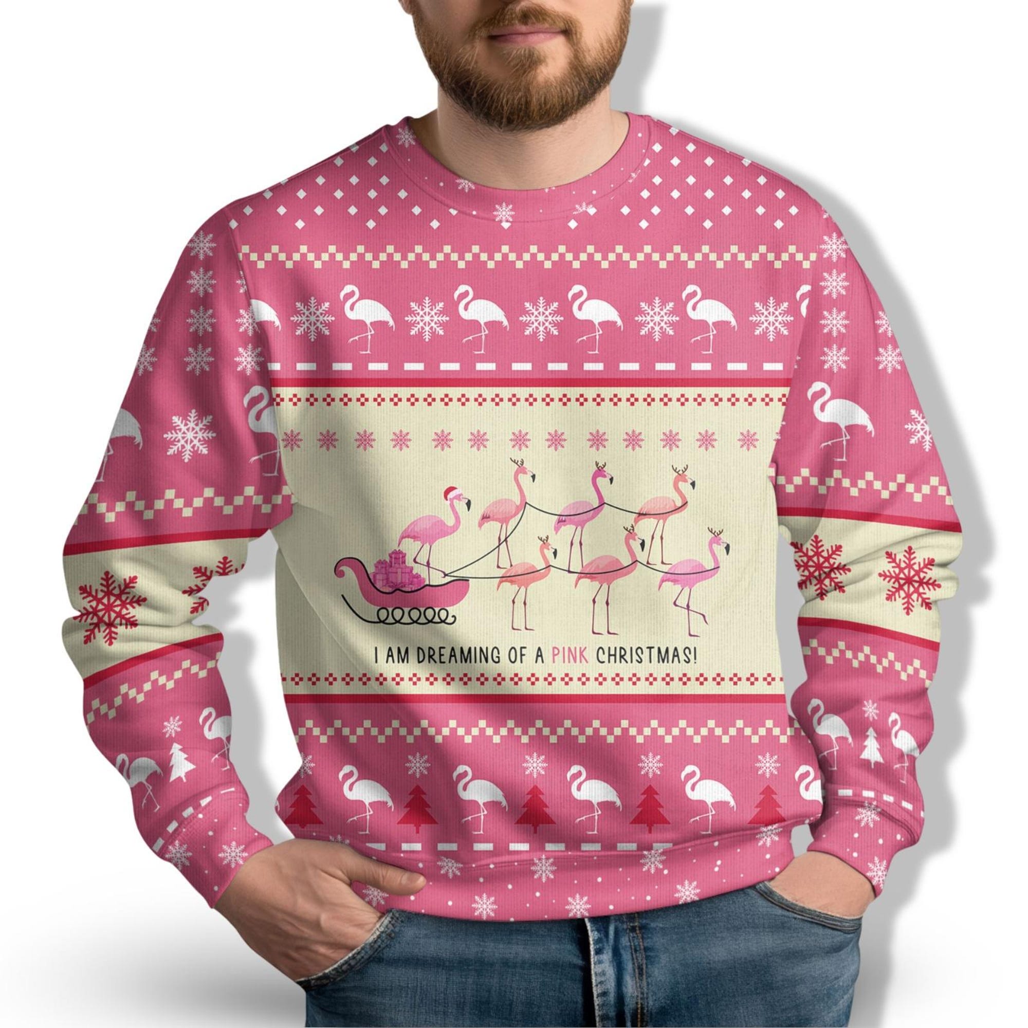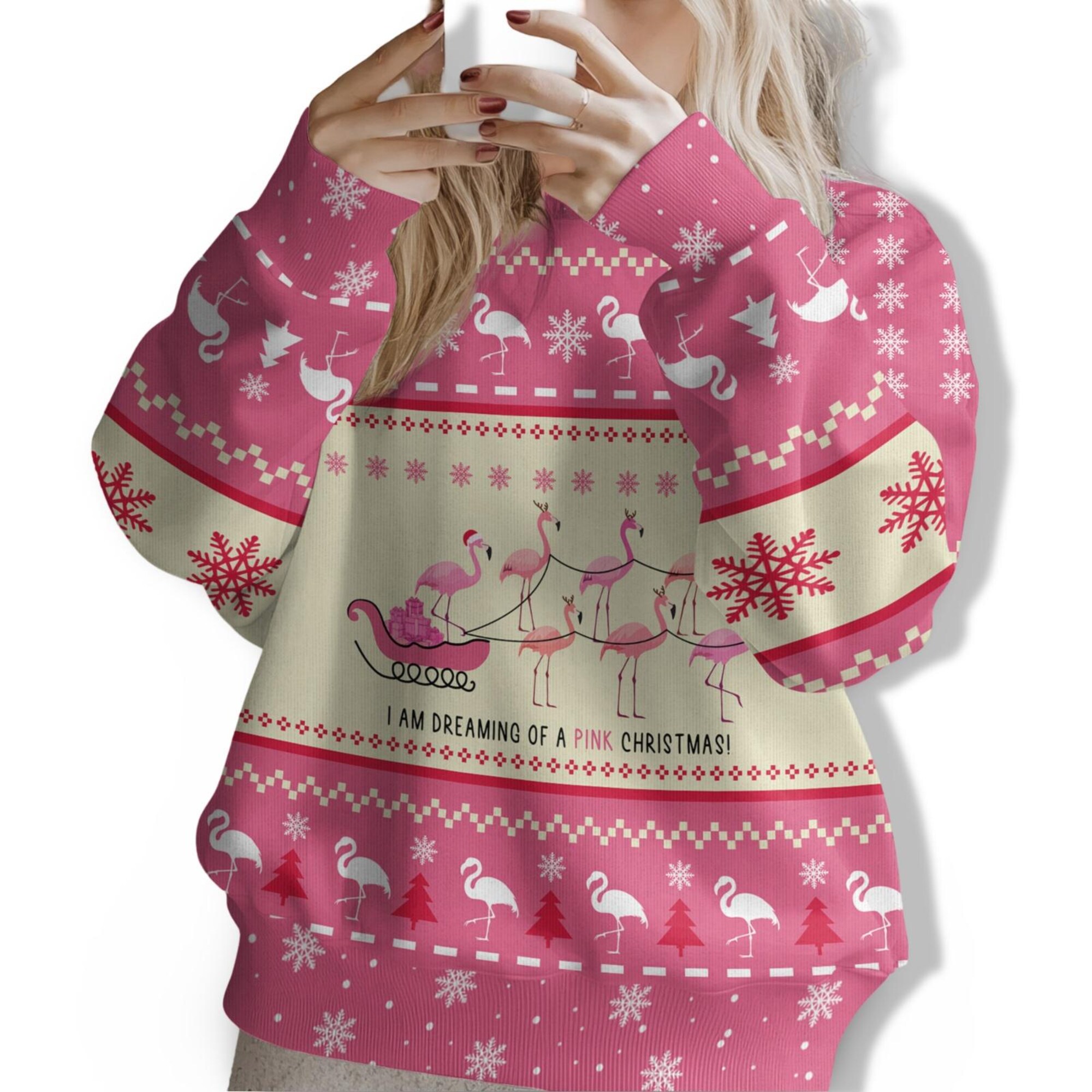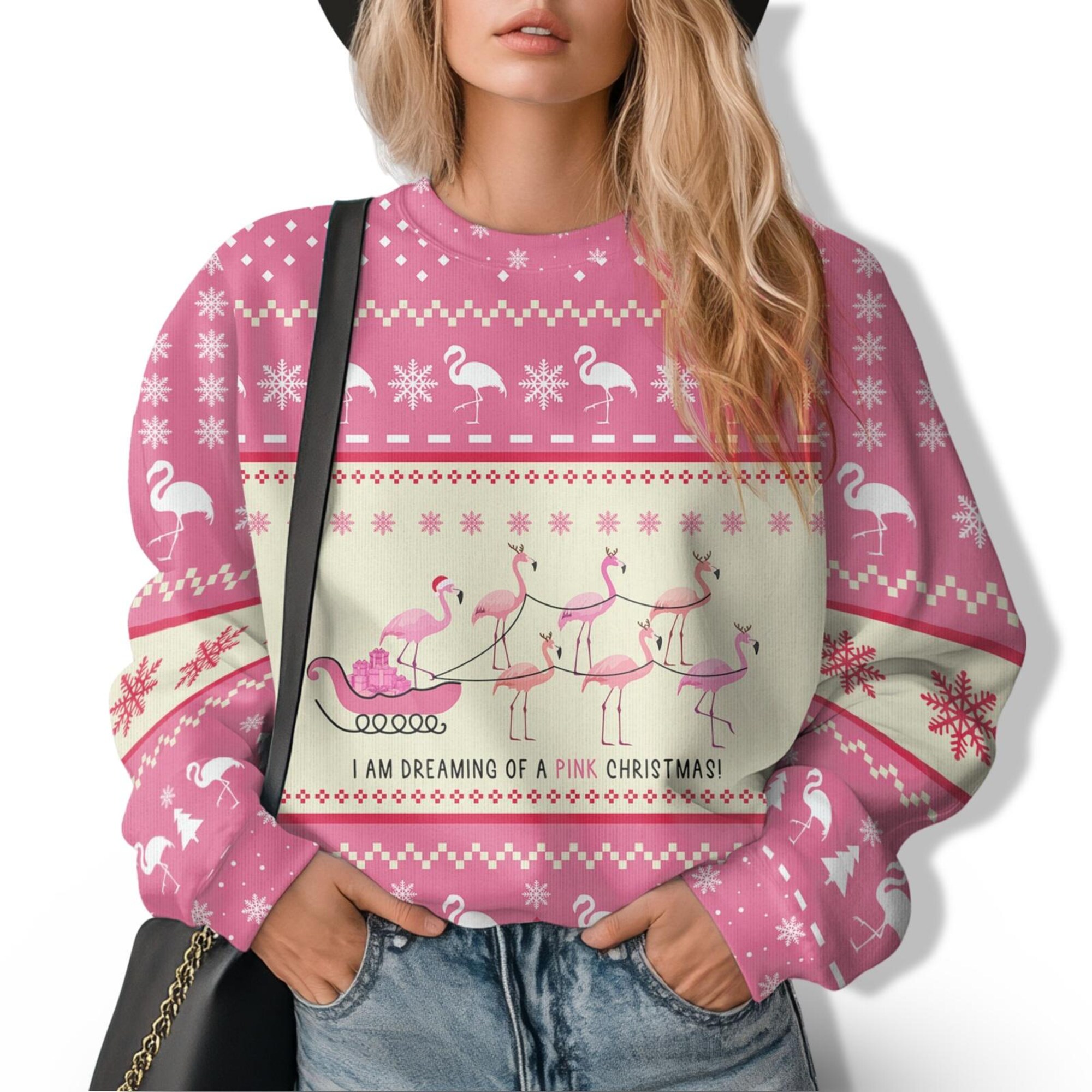 Flamingo Ugly Christmas Sweater, Pink Bird Ugly Sweater, Cute Bird Christmas Sweater, Pink Xmas Sweater, Women Christmas Sweater