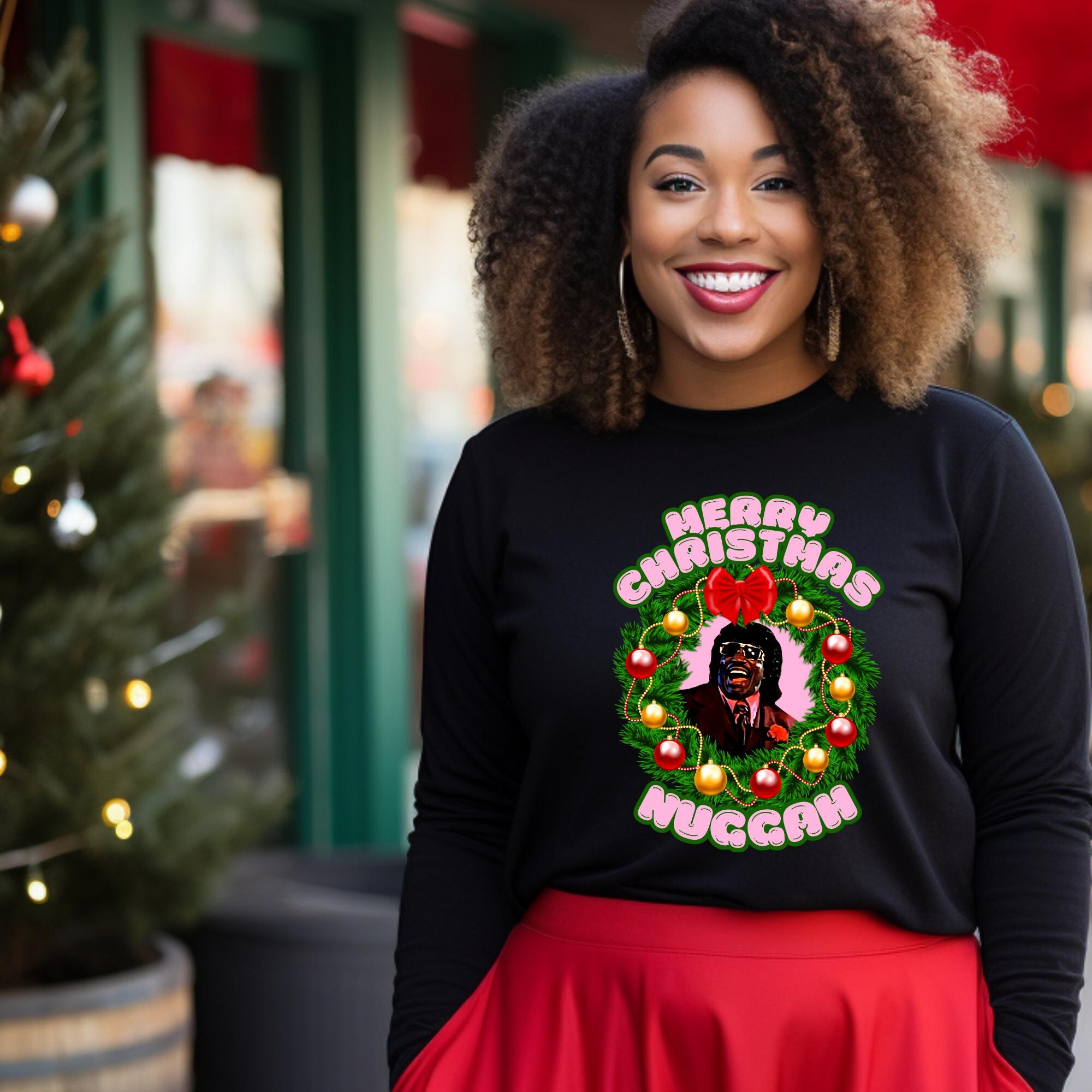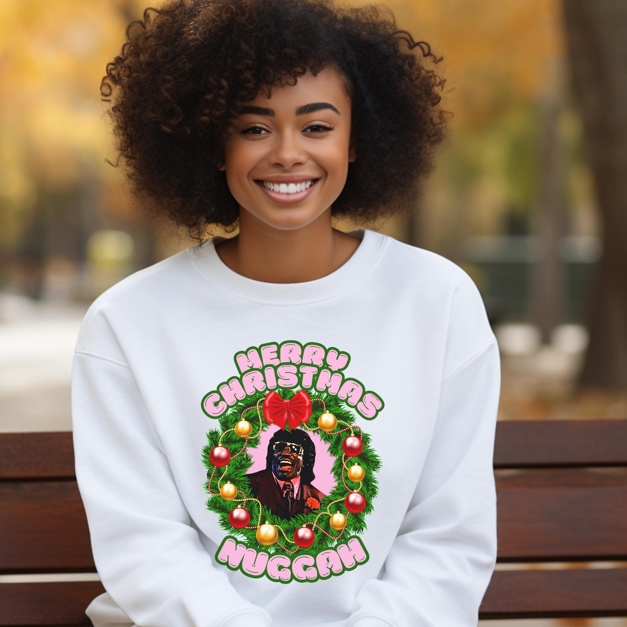 Funny Black Christmas Shirt, Merry Christmas Nuggah, African American Santa Shirts, Humor, Melanin Christmas Shirts, Unisex, Sweatshirts, Pinky, Black Movies