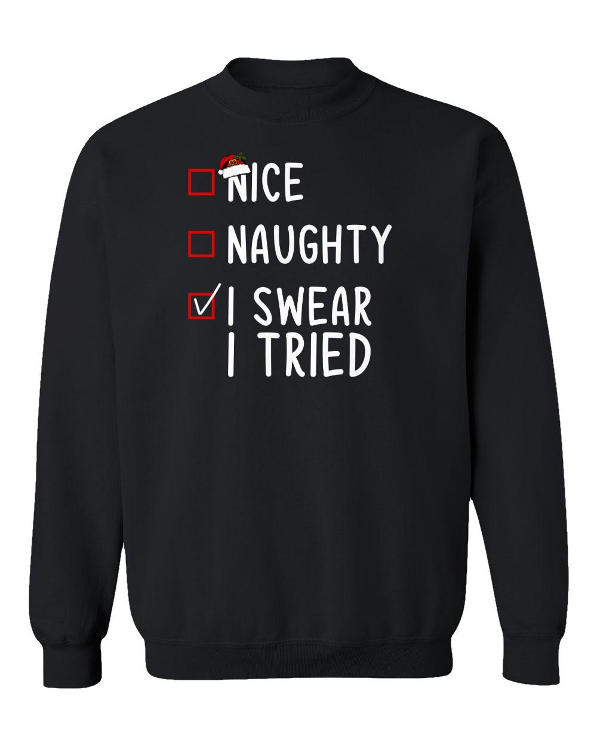 Funny Christmas Gift – I Swear I Tried to be Nice and Naughty Funny Joke Santa Ugly Style Sweatshirt, Unisex Long and Women T-Shirt, Hoodie