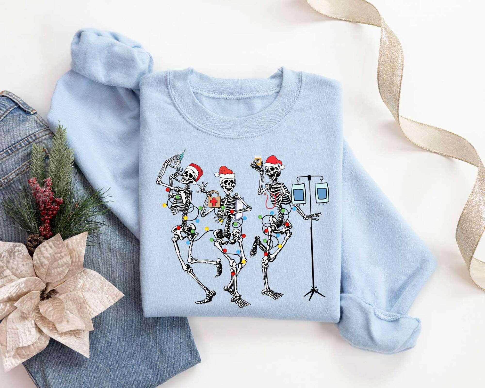 Funny Christmas Nurse Shirt, Skeleton Nurse Dance Sweatshirt, Funny Skeleton Nurse Sweatshirt, Nurse Christmas Stethoscope Tree Hoodie