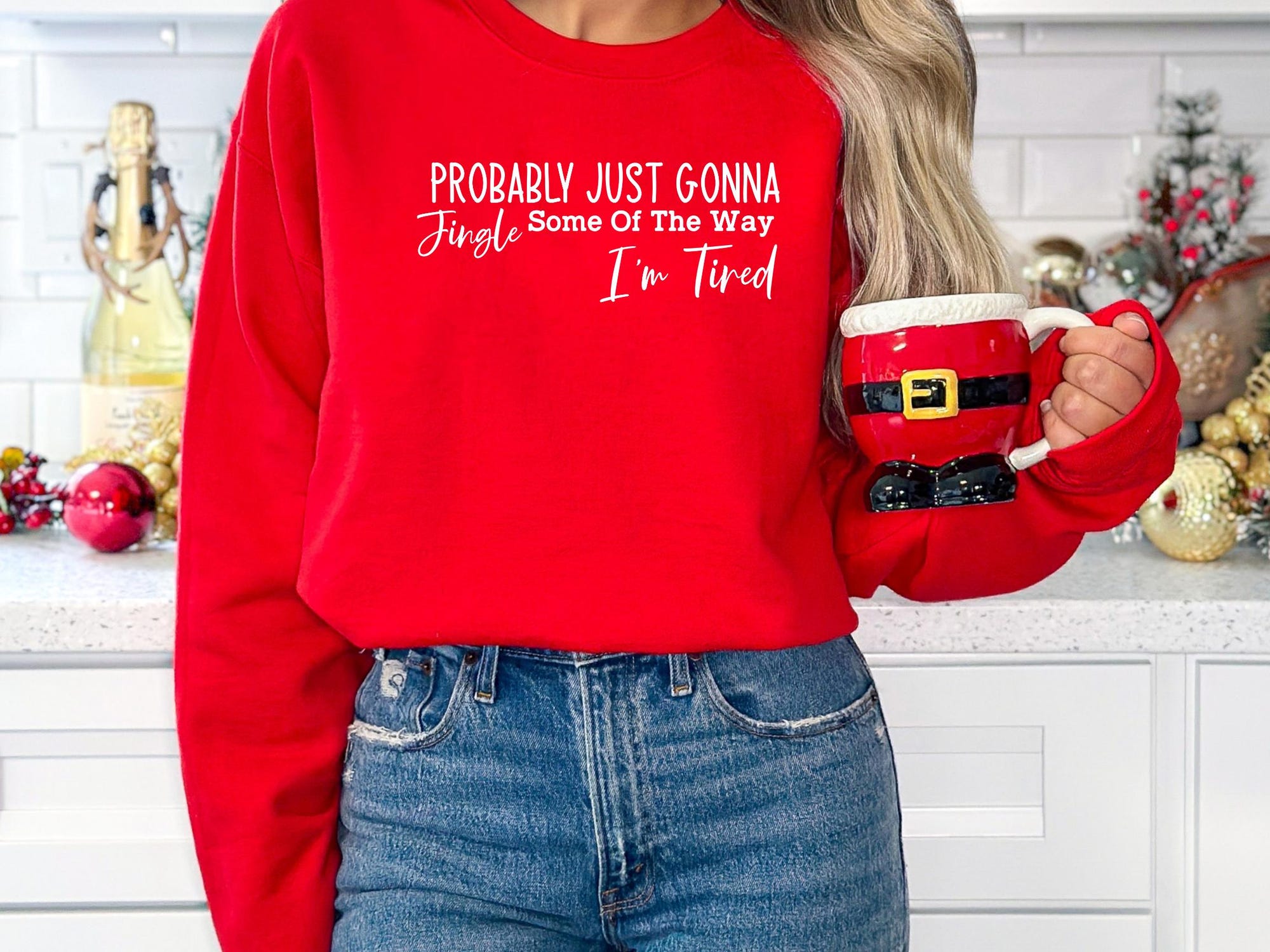 Funny Christmas Sweatshirt, Probably Just Gonna Jingle Tired Tee, Holiday Saying Shirt, Cute Christmas Gift for Women, Halloween Gift