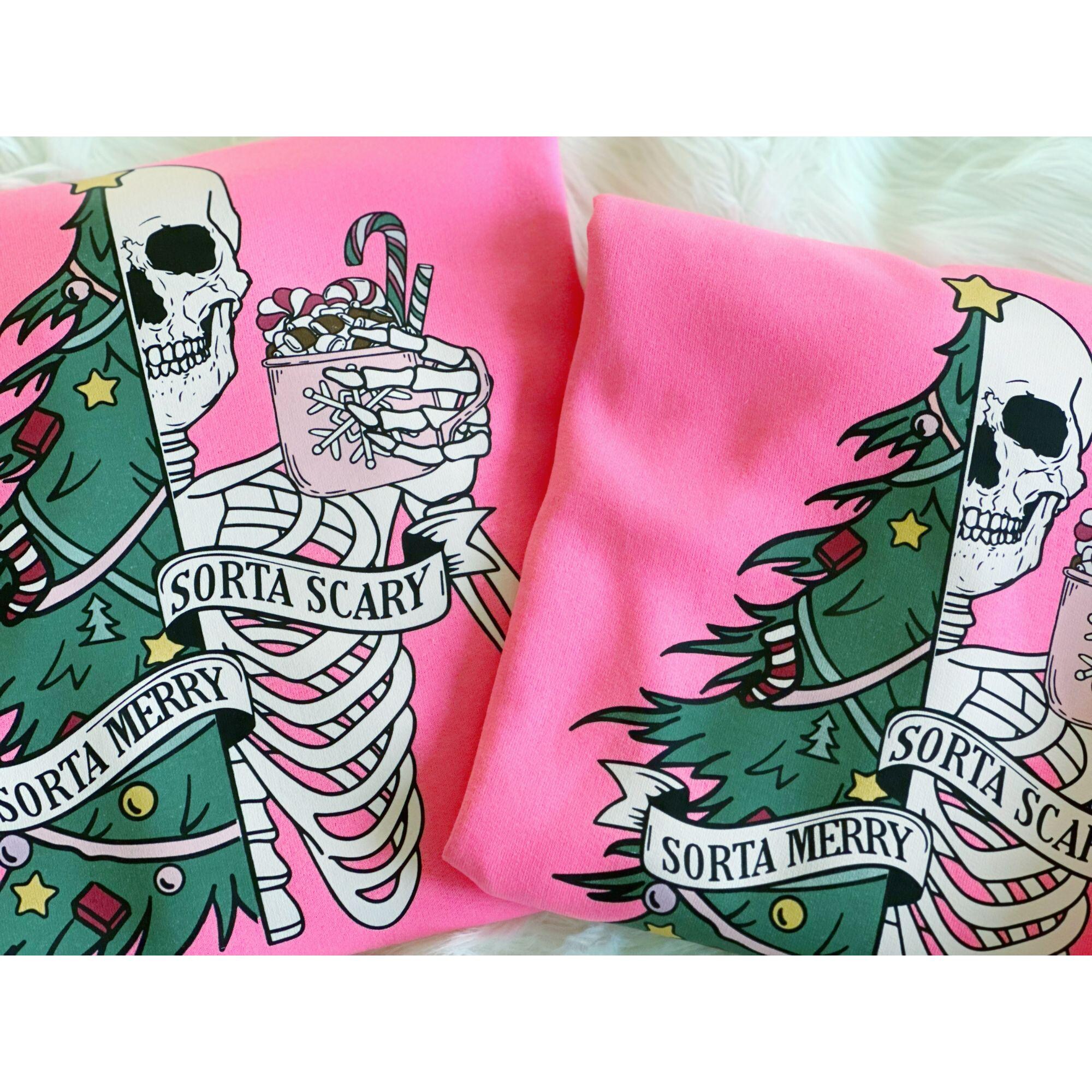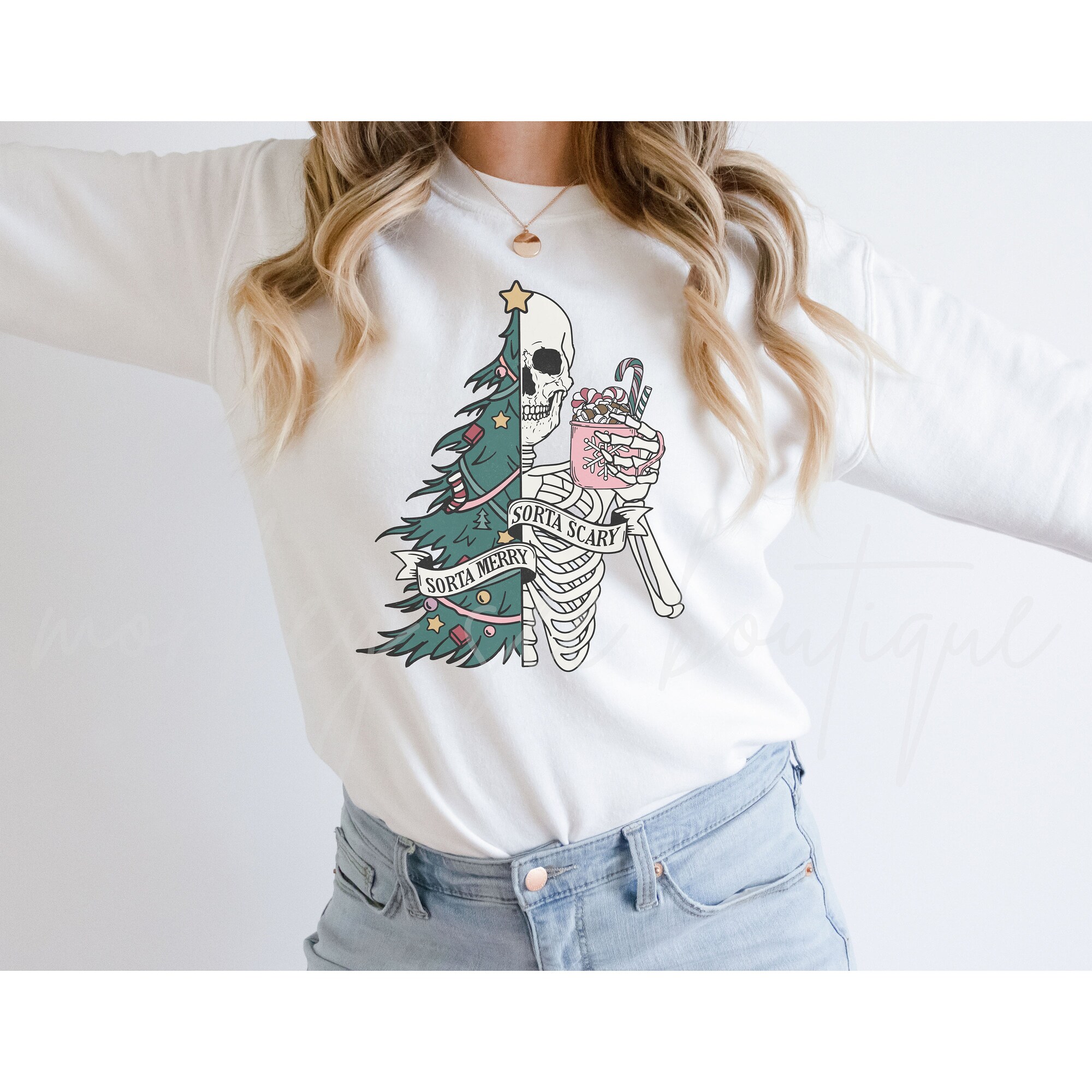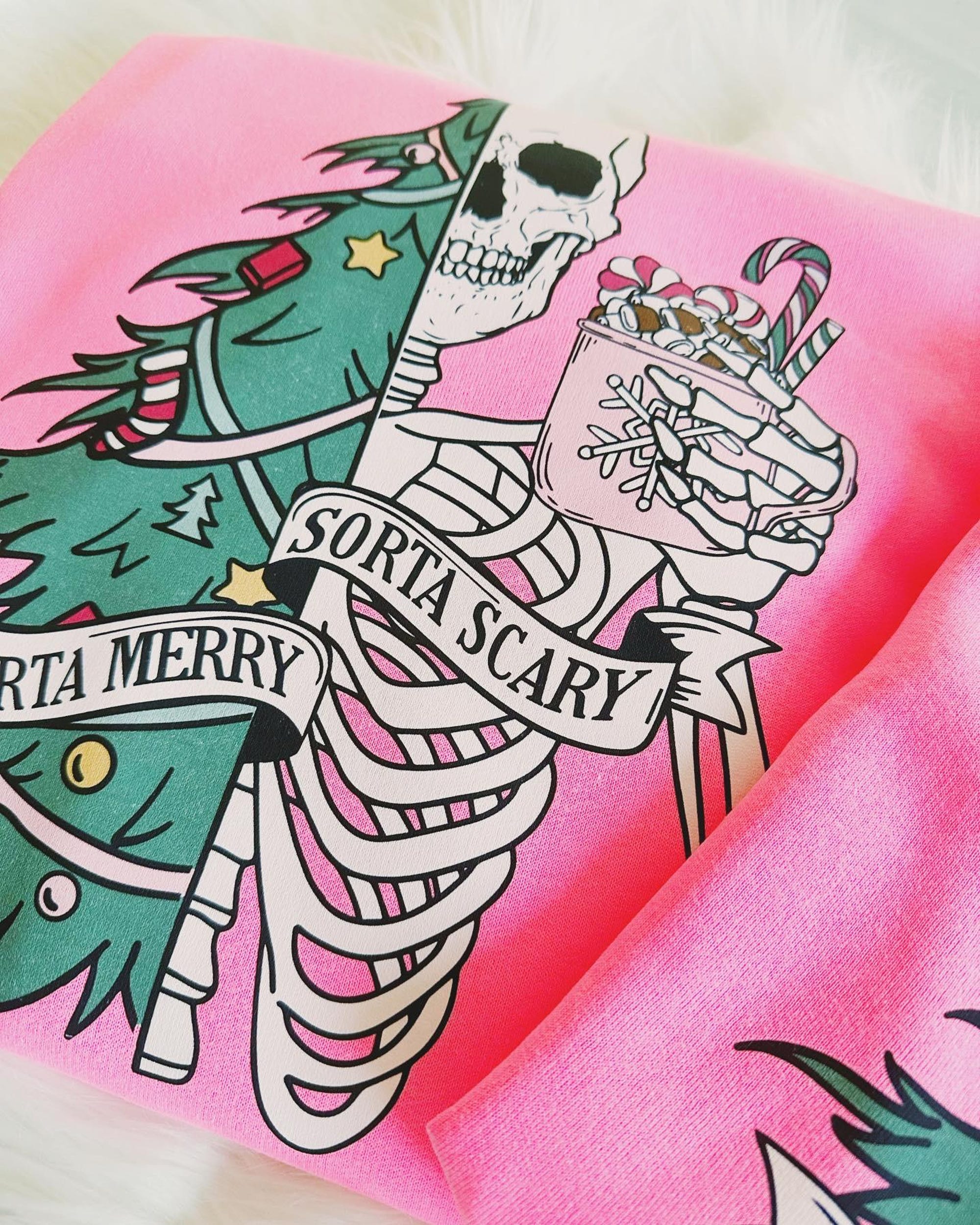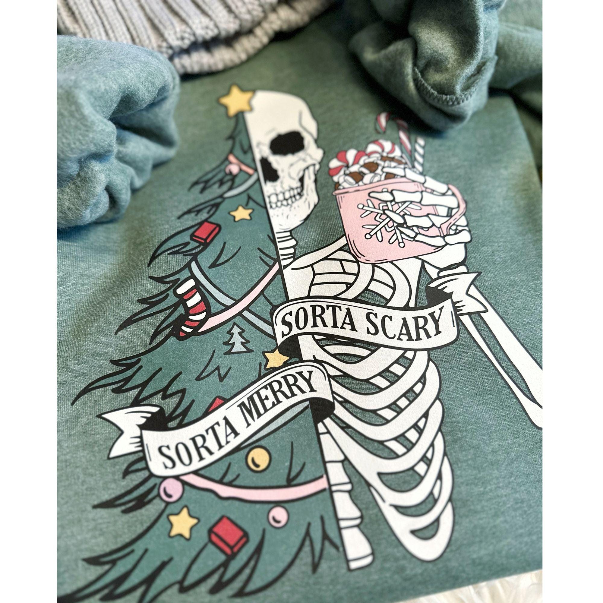 Whether you’re gifting it, wearing it to a Christmas party, or cozying up by the tree, this Sorta Merry Sorta Scary sweatshirt makes the season just the right mix of festive and fun.