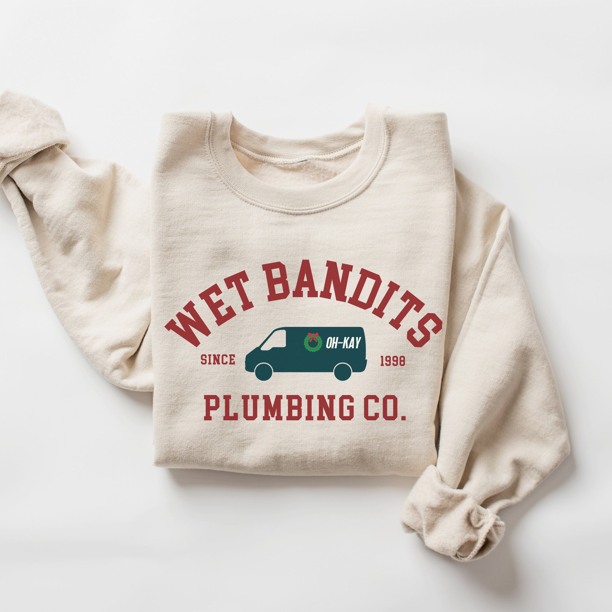 Funny Christmas Sweatshirt, Wet Bandits Plumbing Co Shirt, Holiday Movie Lover Sweatshirt, Trendy Christmas Gifted Sweatshirt, Xmas Crewneck