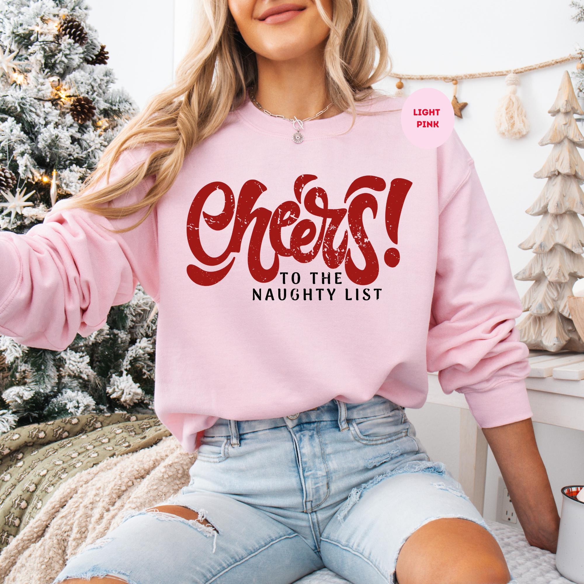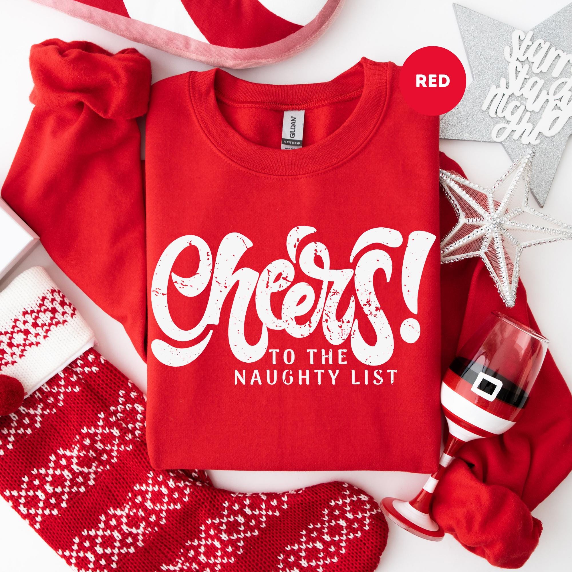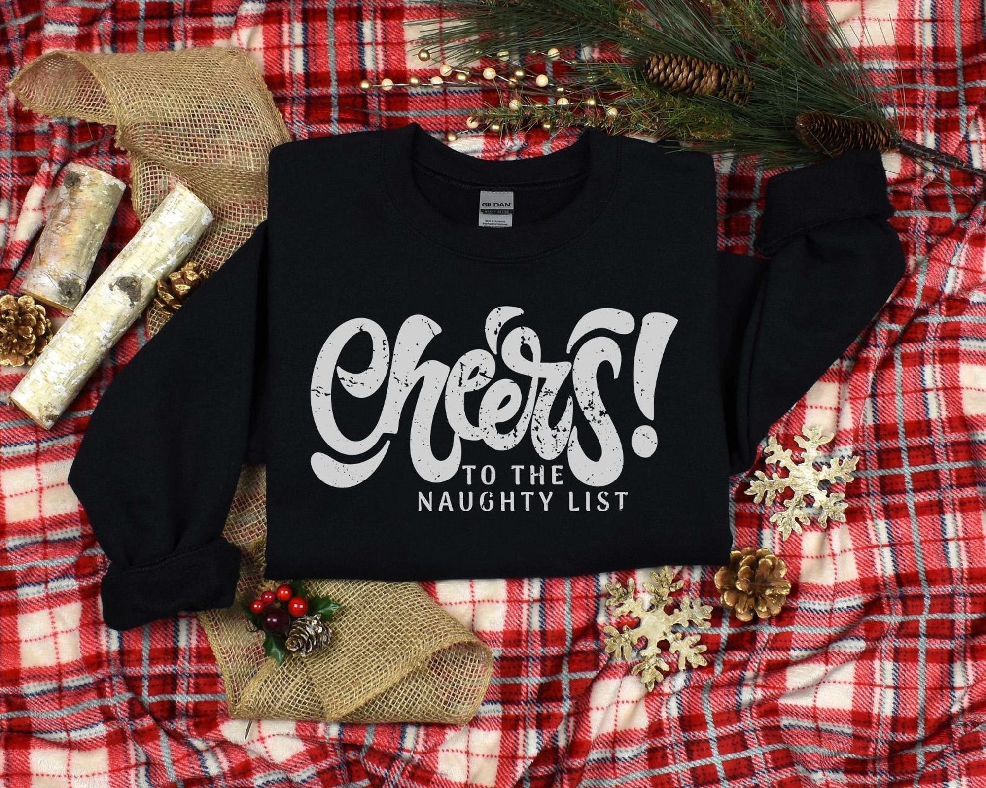 Funny Christmas Sweatshirt, Cheers To The Naughty List Holiday Sweater, Naughty List Club Sweatshirt, Best Holiday Gift for Friends & Family