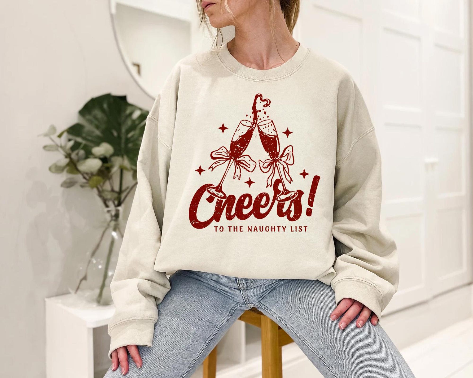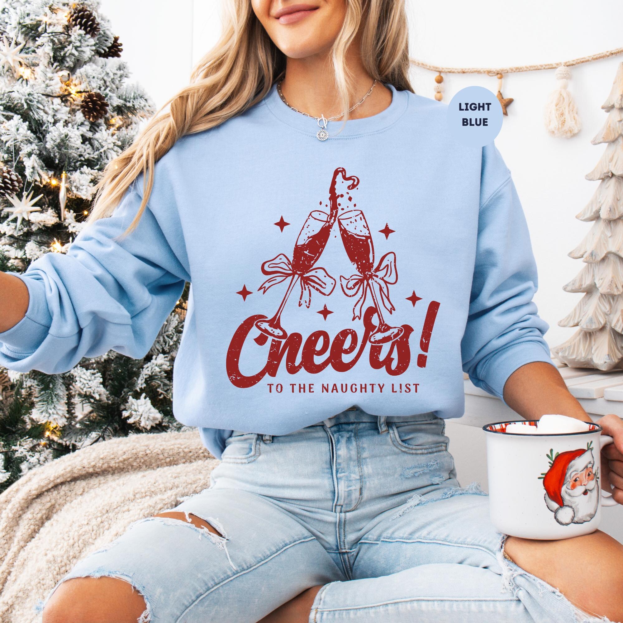 Funny Christmas Sweatshirt, Cheers To The Naughty List Holiday Sweater, Naughty List Club Sweatshirt, Best Holiday Gift for Friends & Family