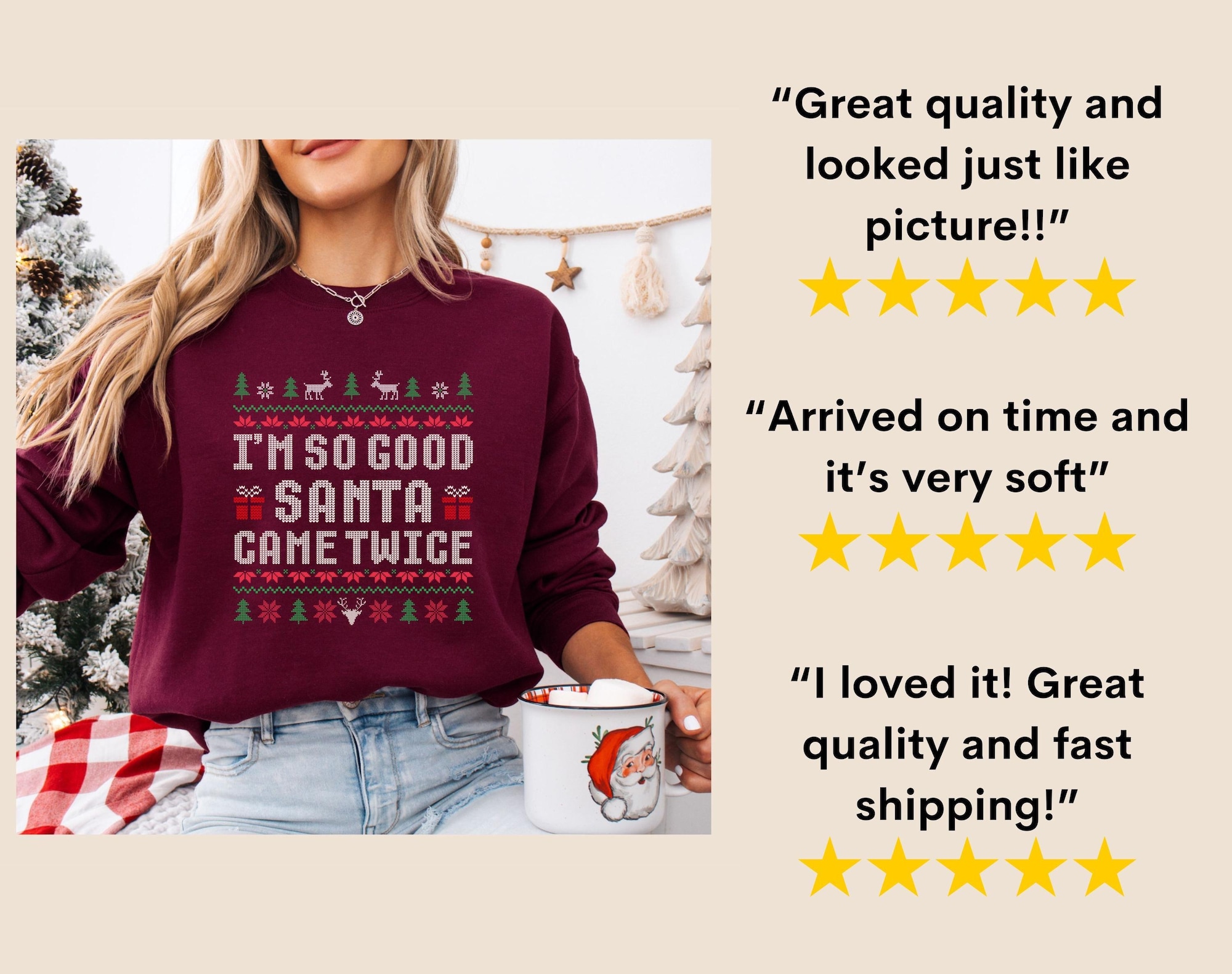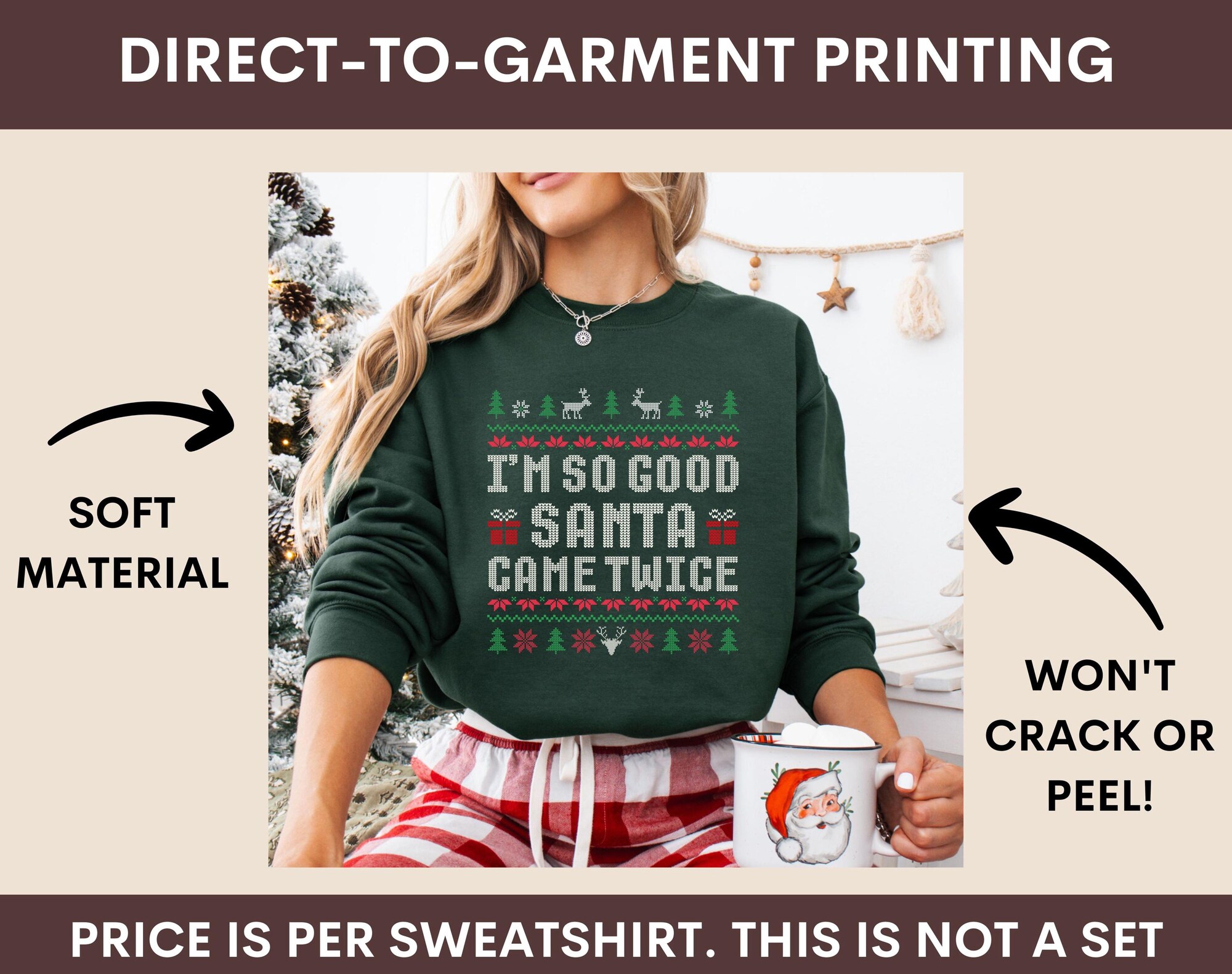 Funny Couple Ugly Christmas Sweater, I’m So Good Santa Came Twice Ugly Sweater Humorous Couples Matching Holiday Party Adult Humor