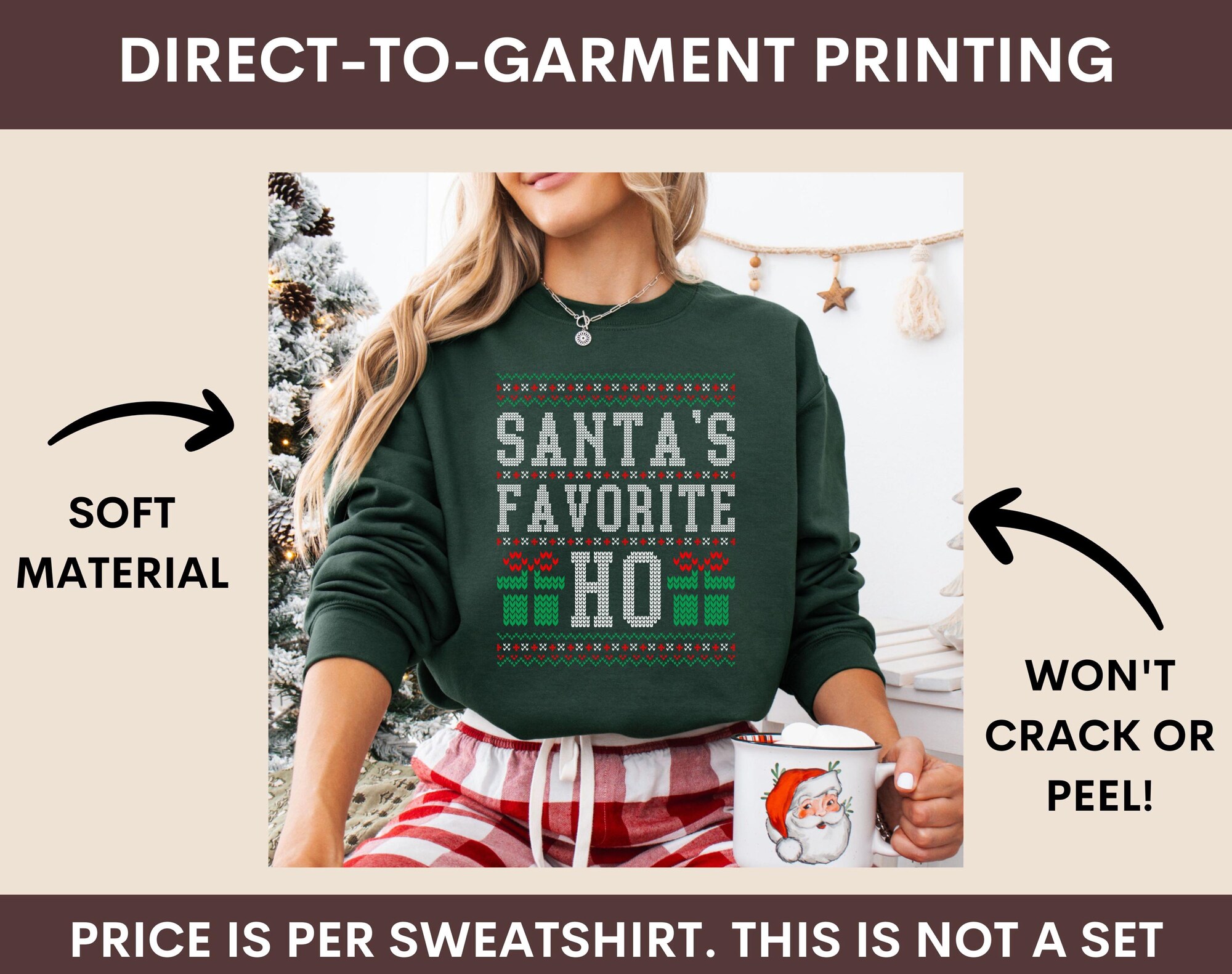 Funny Couple Ugly Christmas Sweater, Santa’s Favorite Ho Sweater, Humorous Couples Matching Holiday Apparel Holiday Party Adult Humor