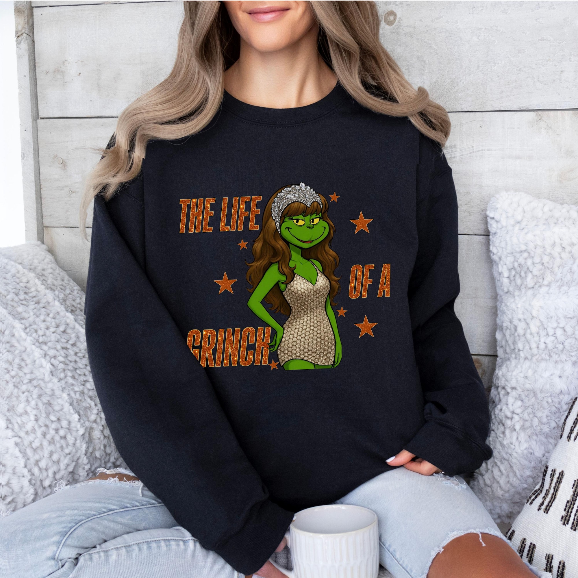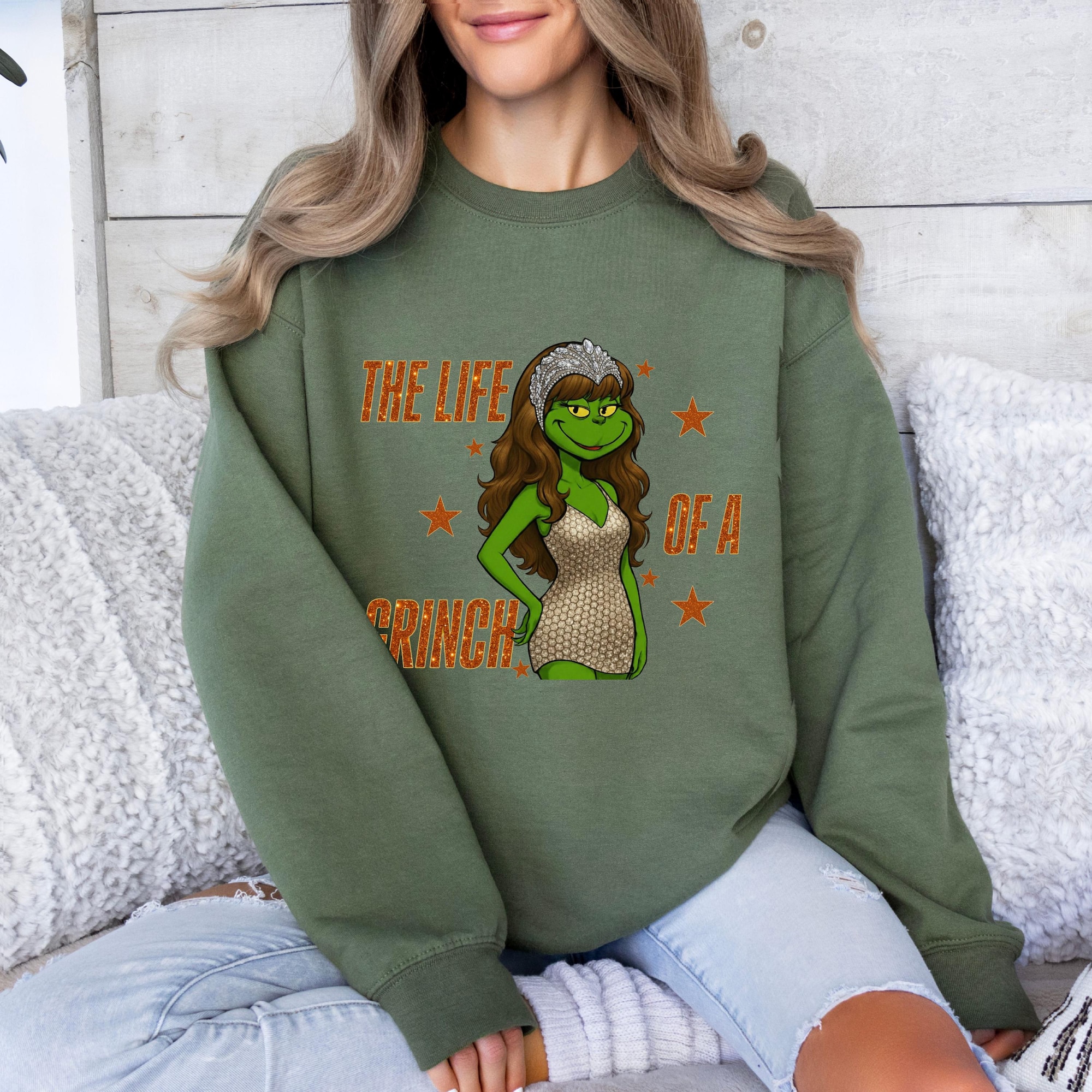Funny Grinchmas Sweatshirt The Life Of A Grinch Christmas Gift Holiday Crewneck Cozy Pullover for Women Friends Family Winter Outfit Unisex