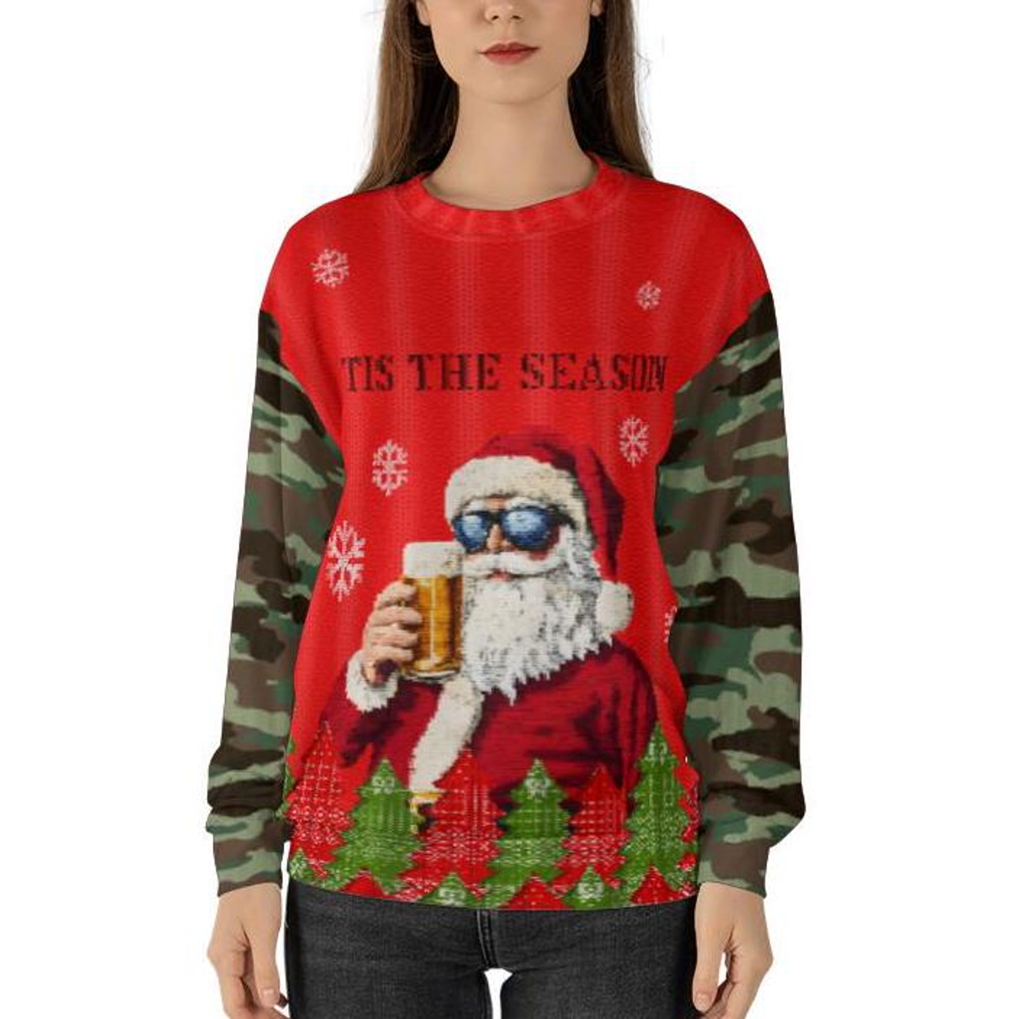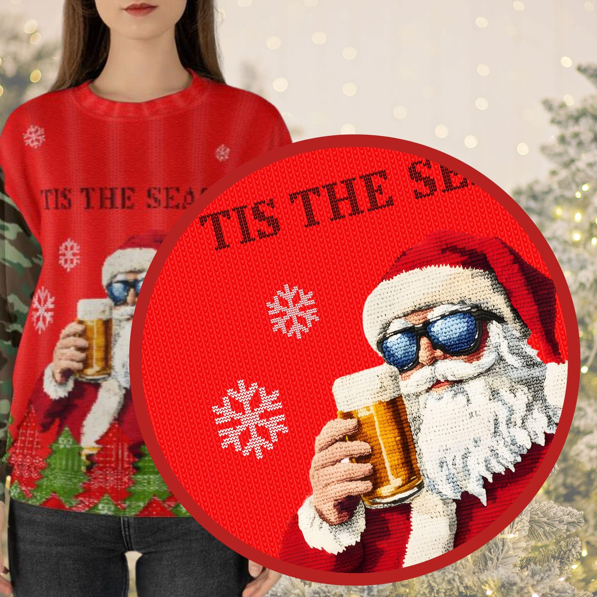 Beer Ugly Christmas Sweatshirt, Santa Claus Drinking Beer Funny Christmas Crew Neck Ugly Sweater StyleSee sizing Chart on Pictures for Perfect fitMaterial: Acry...