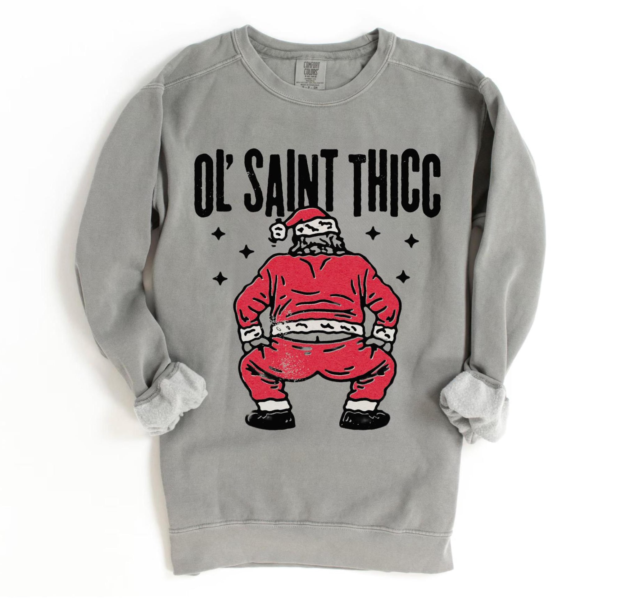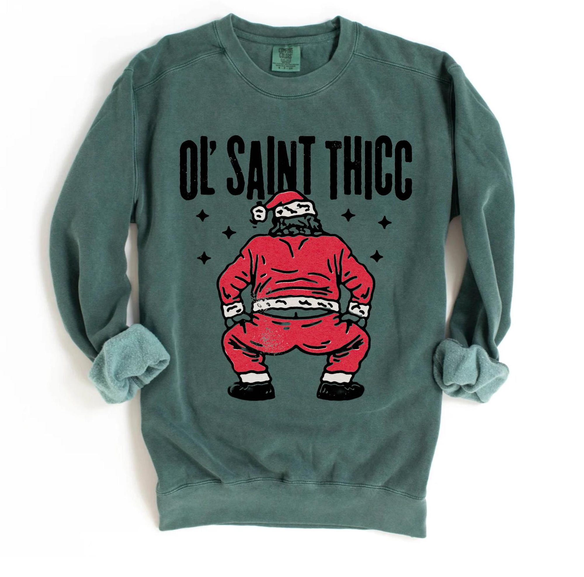 Funny Santa Sweatshirt UNISEX Comfort Colors® Old Saint Thicc Twerking Santa Retro Christmas Crewneck Slutty Santa Shirt Secret Santa Gift Christmas PJs Festive Clothing Holiday Pyjamas