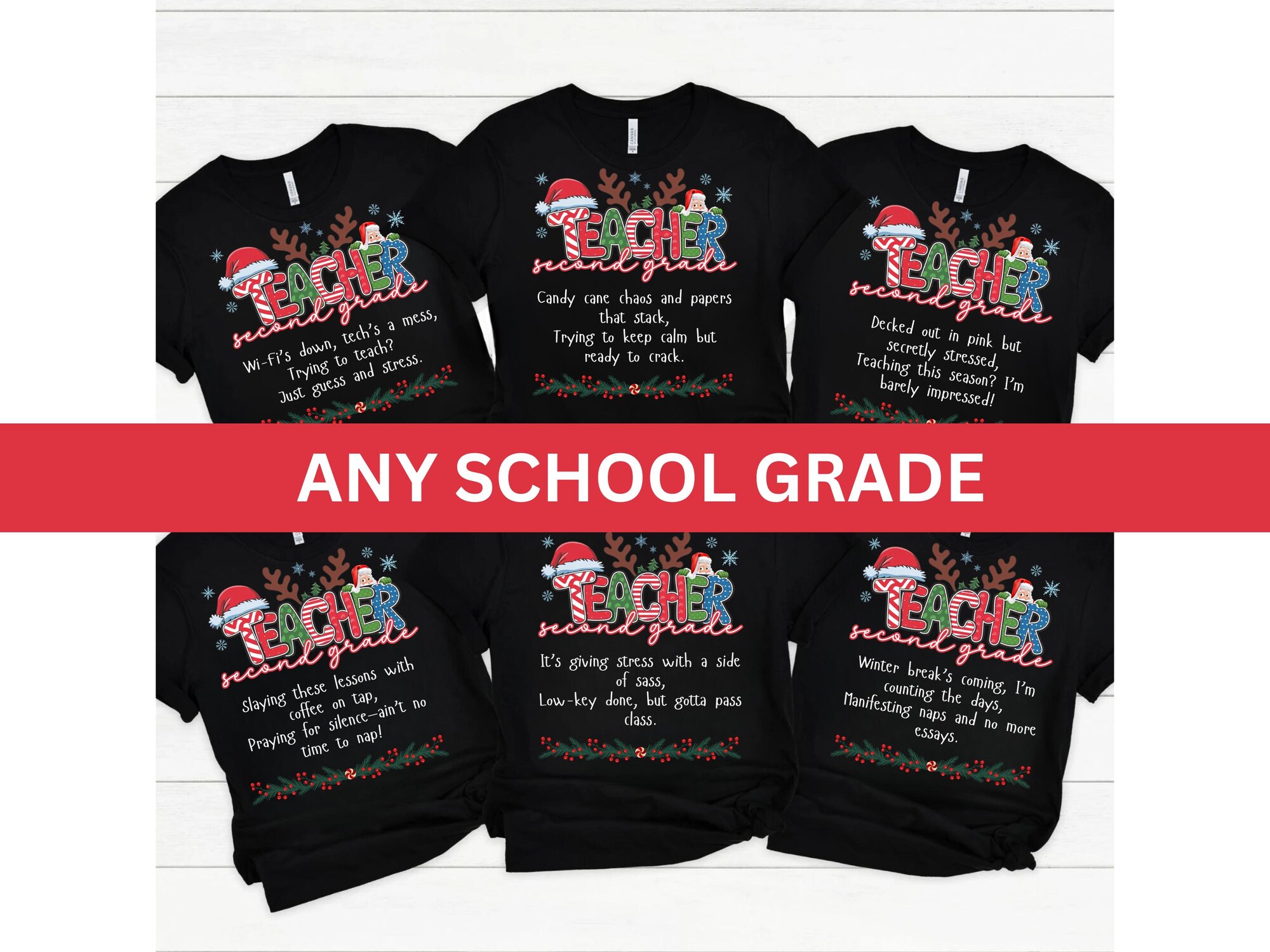 Bring holiday cheer to your classroom with our Second Grade Christmas Teacher Shirts! ???? Perfect for 2nd grade teachers, these festive and funny shirts are a great way to spread joy during the holiday season. Designed with comfort and style in mind, they’re ideal for classroom parties, holiday events, or matching with your teaching team for a coordinated Christmas look.