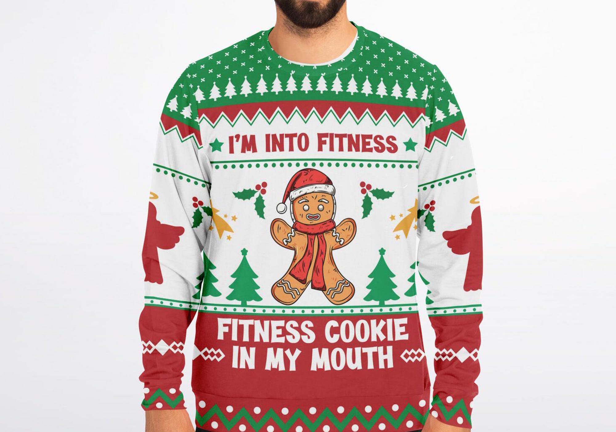 Funny Ugly Christmas Sweater for Men Women – Fitness Cookie Gingerbread Design – Hilarious Holiday Pullover – Festive Xmas Sweater.