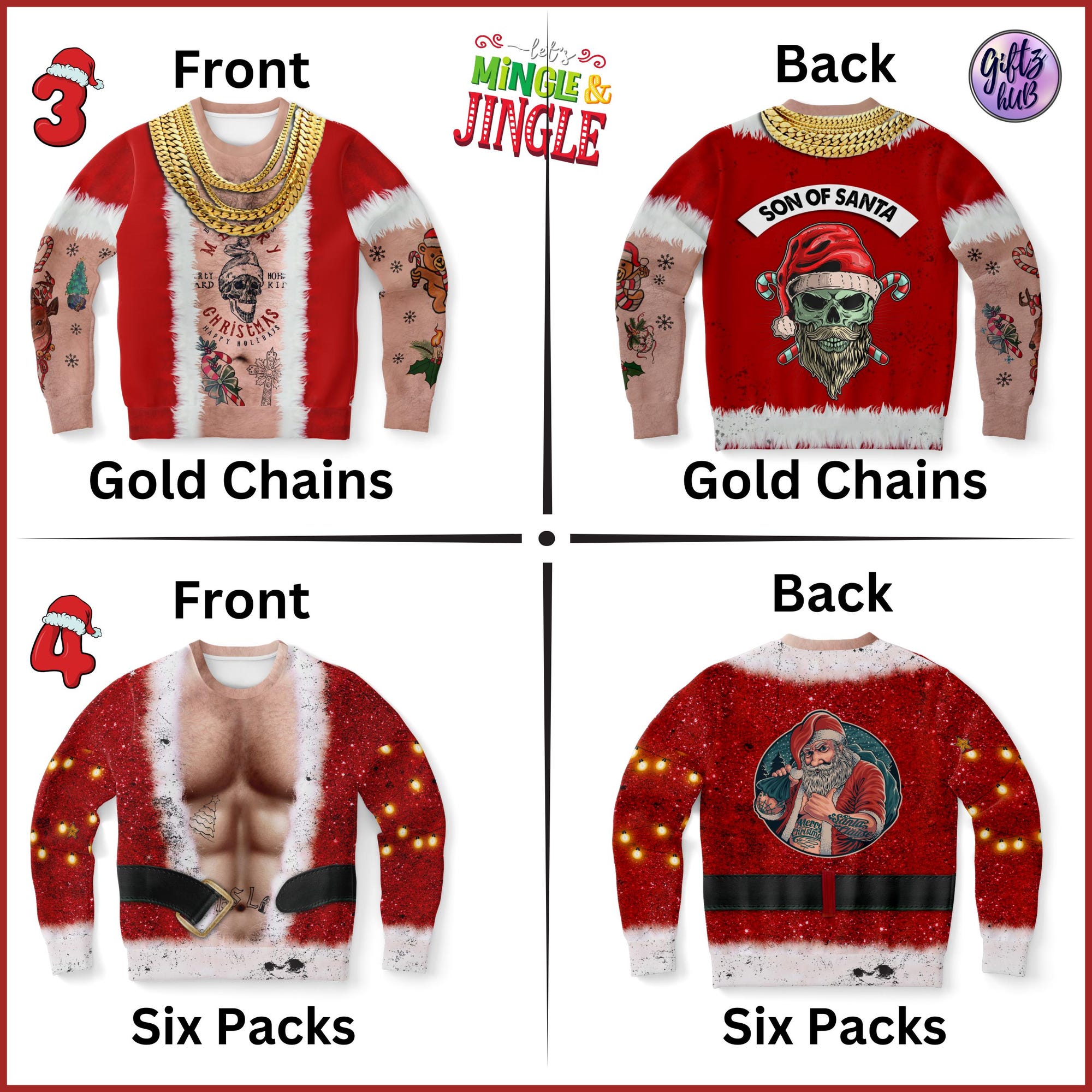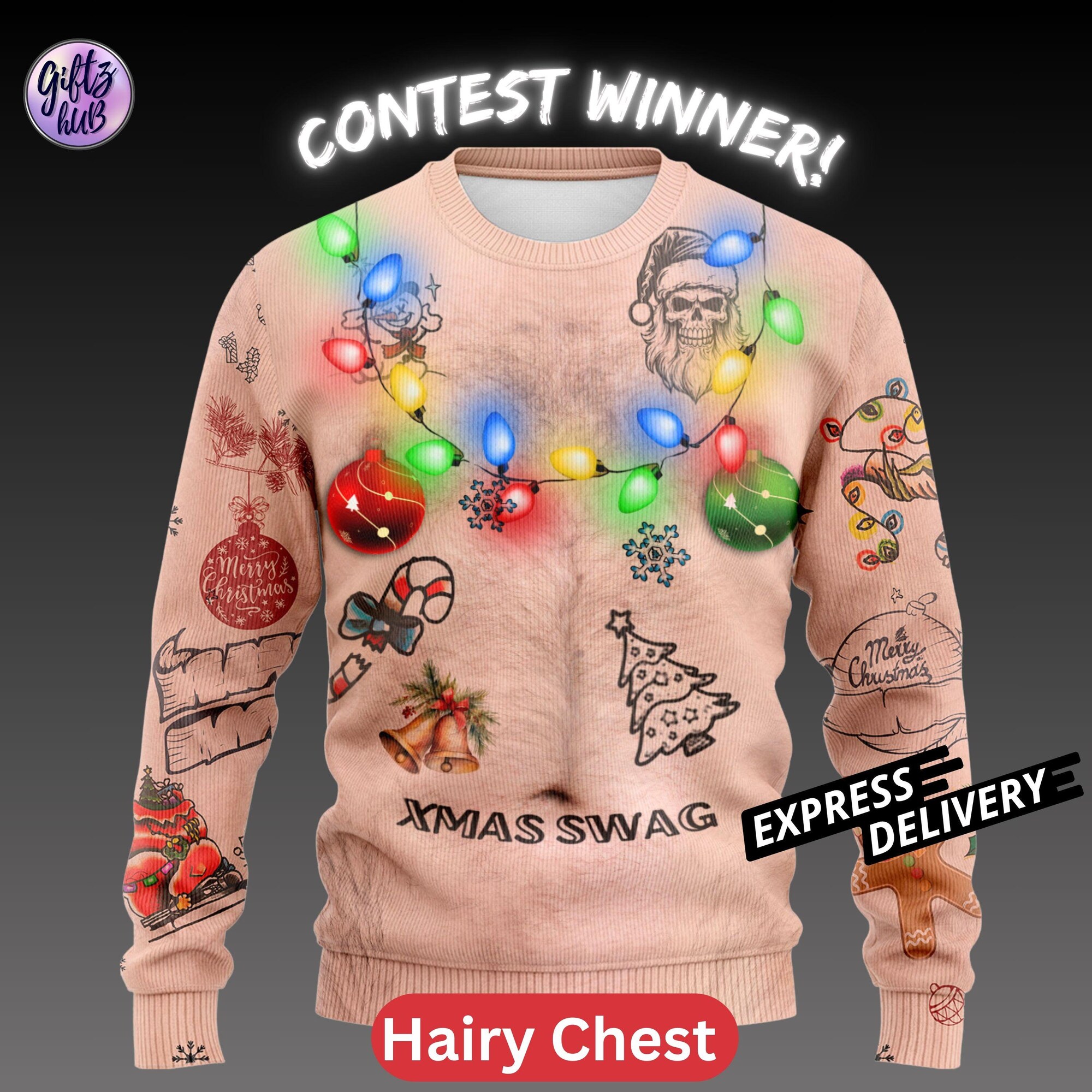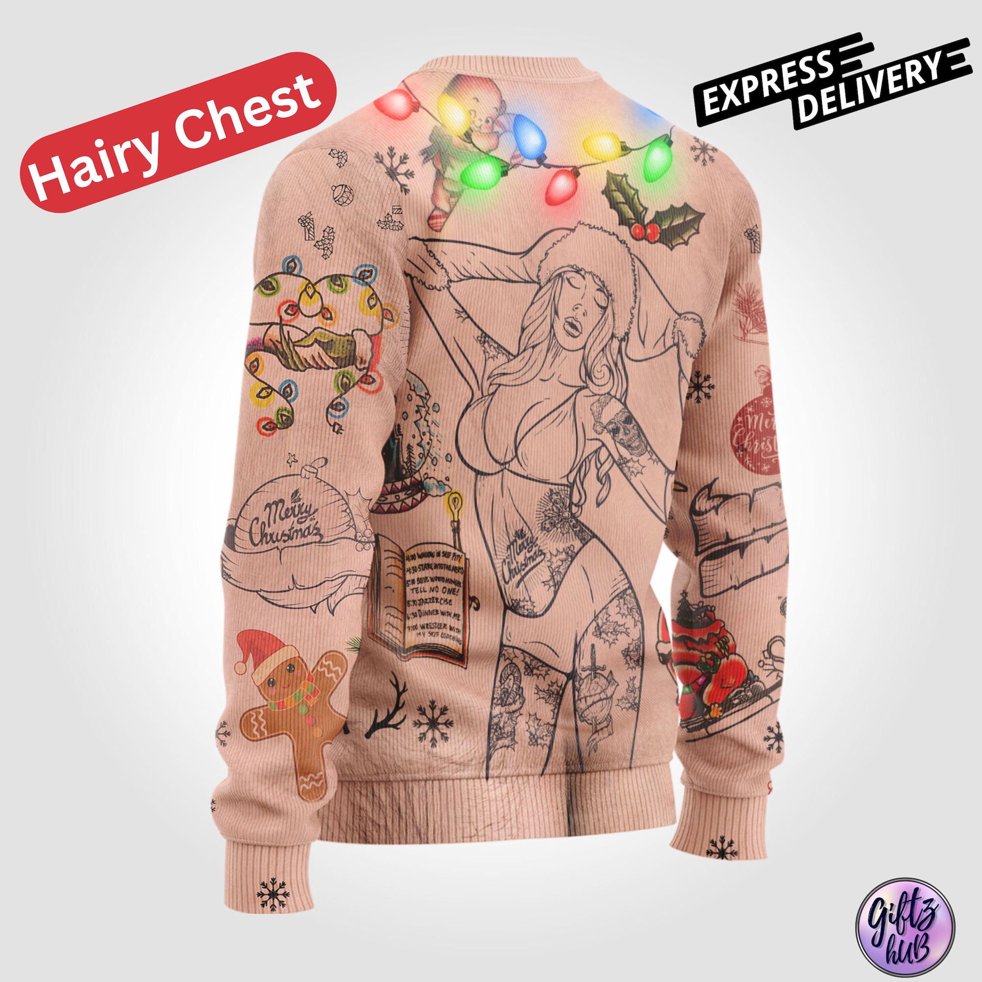 Funny ugly christmas sweater for men women, Hairy chest xmas ugly sweater, Adult humor Inappropriate ugliest christmas party jumper tops 4XL