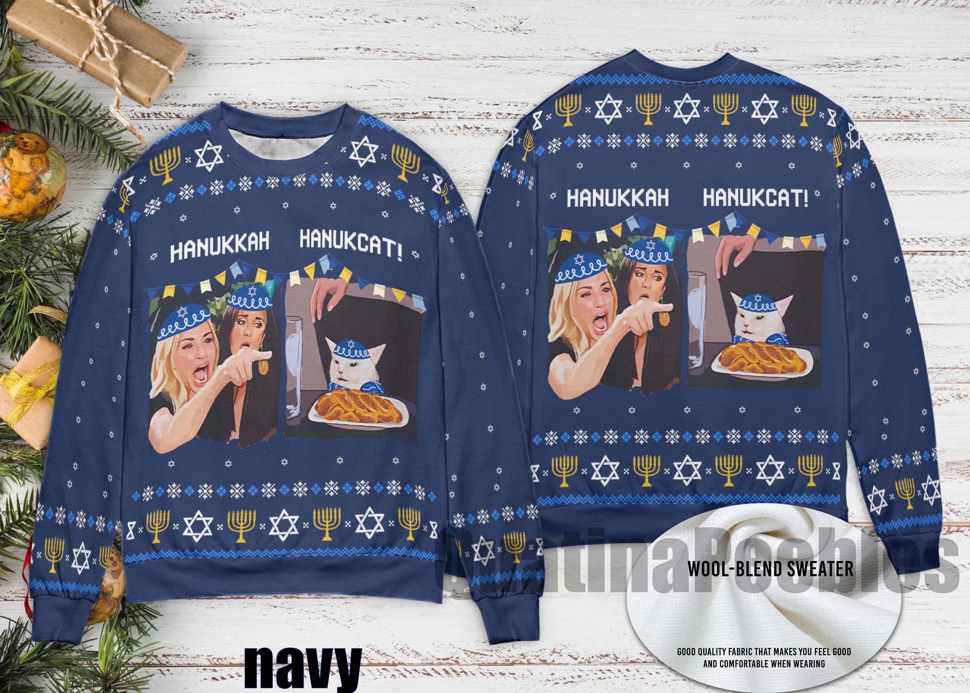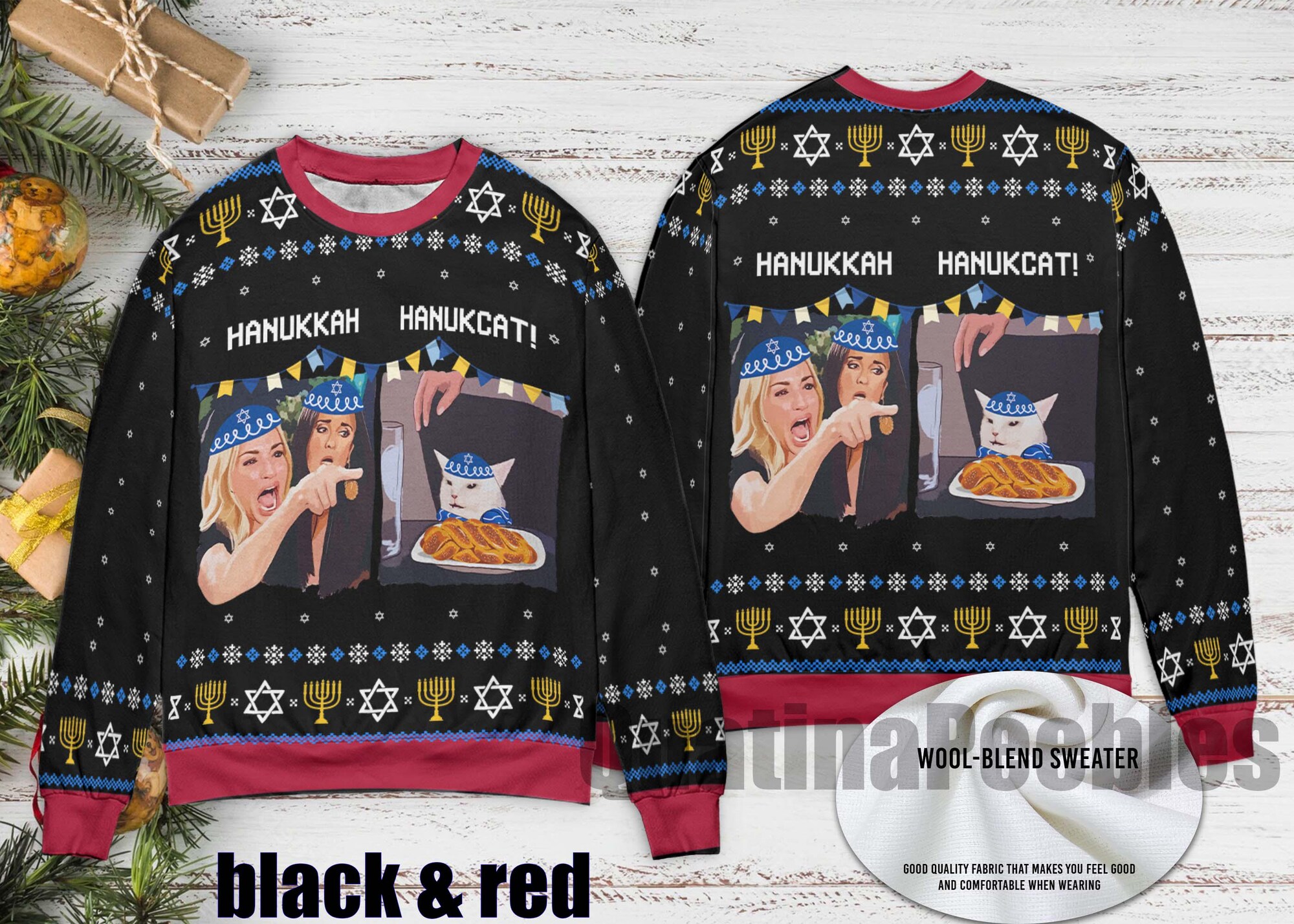 Funny Woman Yelling At A Cat Meme Jewish Ugly Sweater, A Cat Meme Christmas Ugly Sweater, Family Ugly Christmas Sweater, Sweater for Family