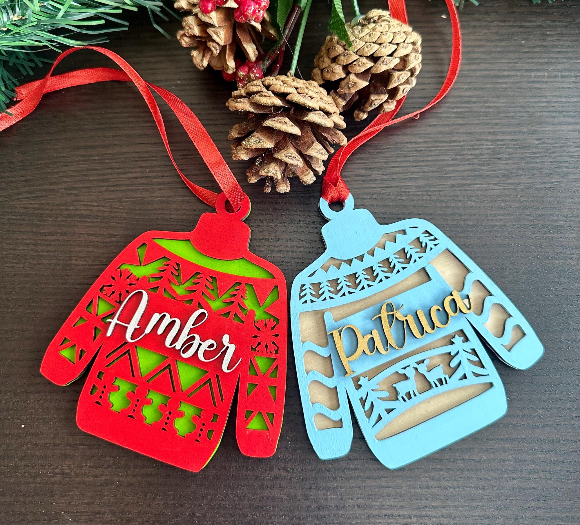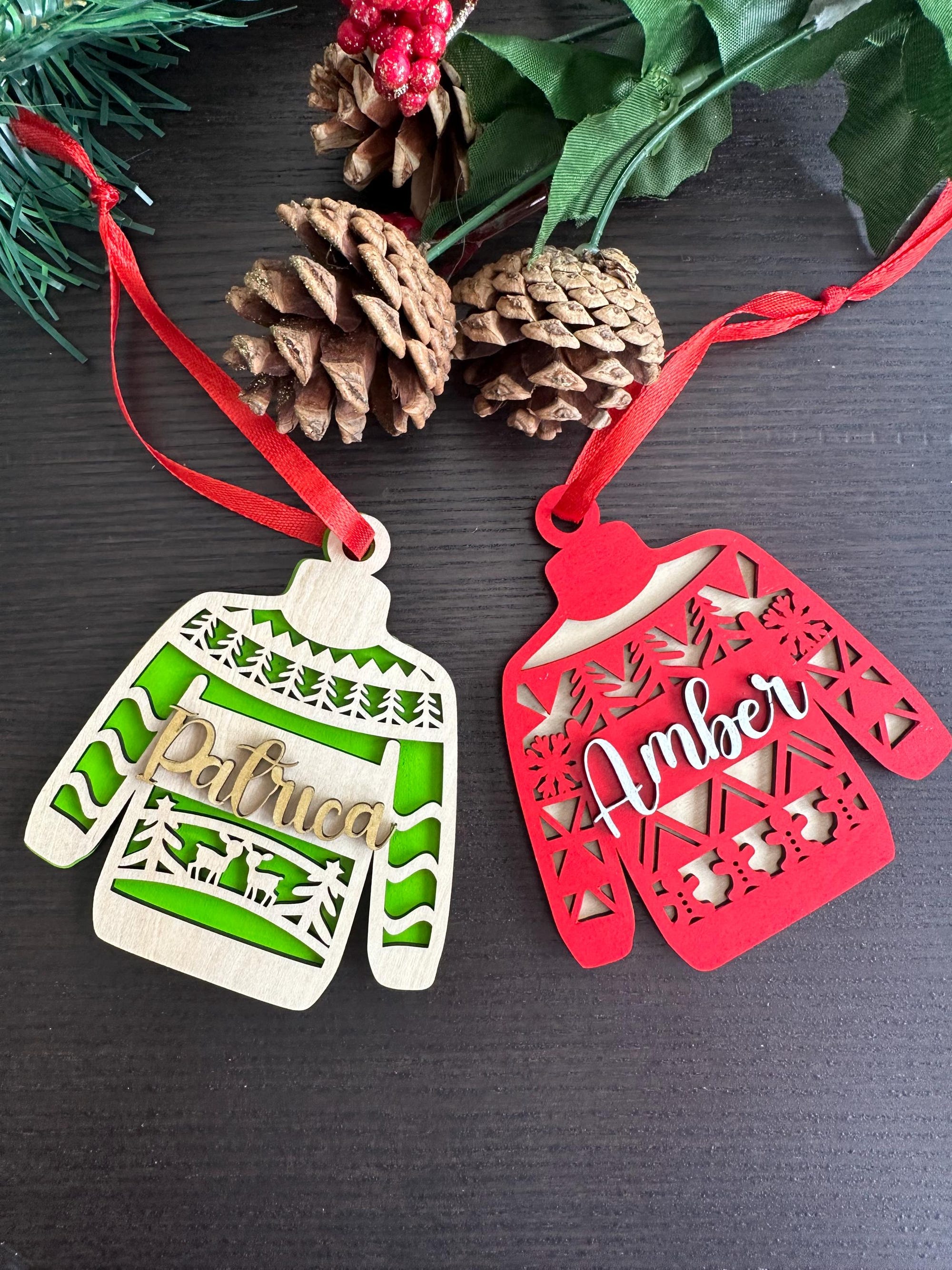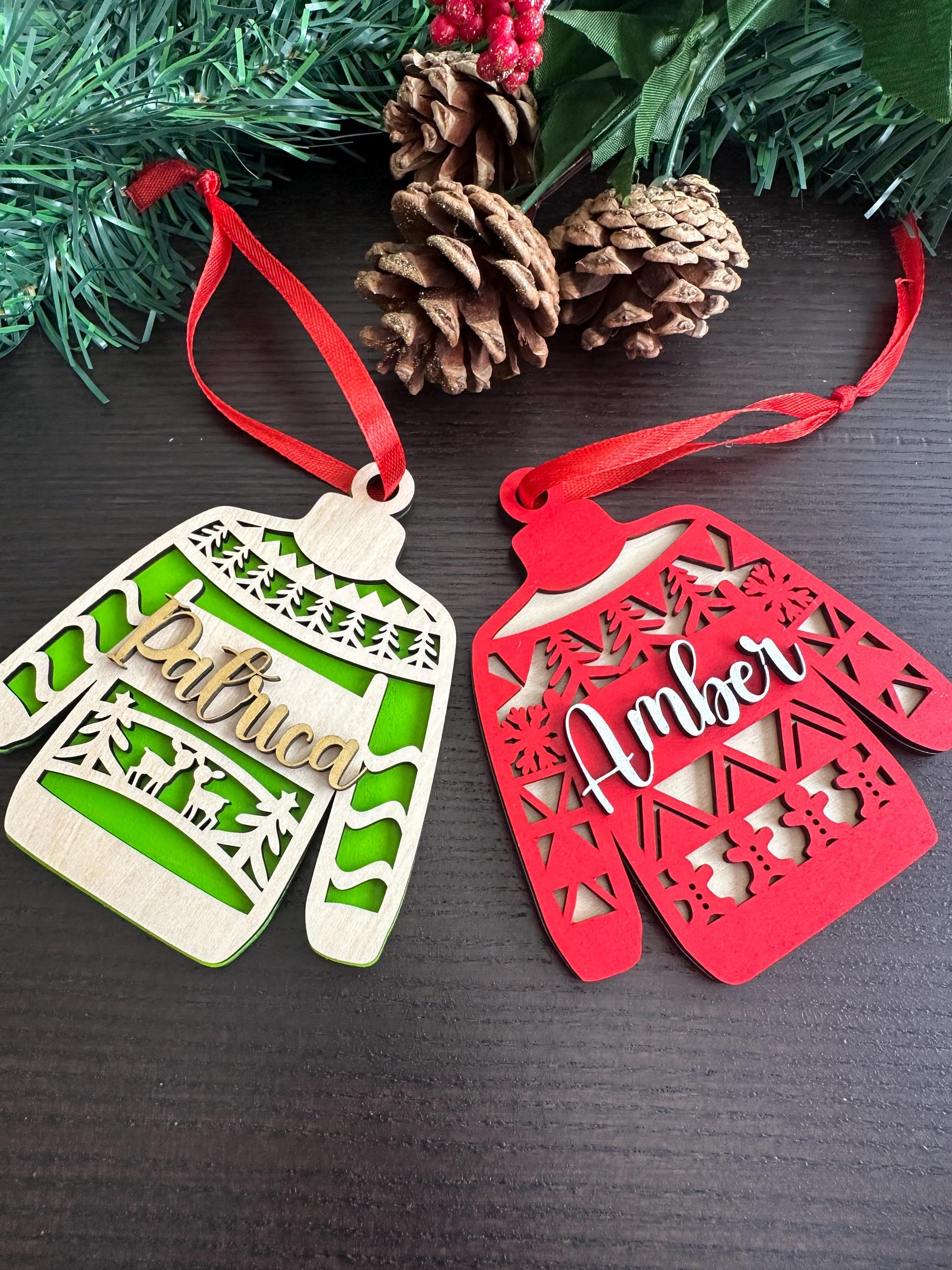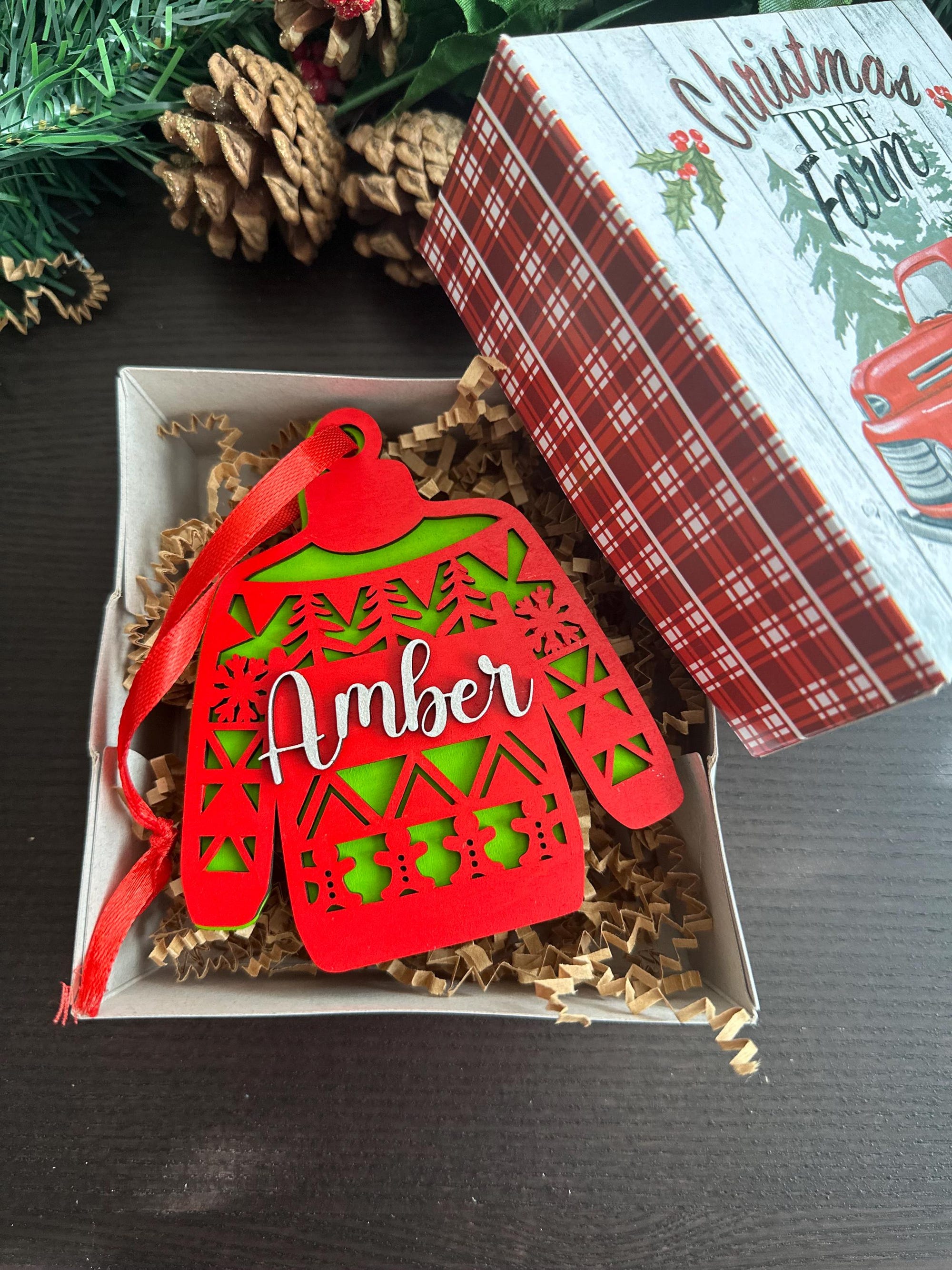 Funny Wooden Ugly Sweater Ornament: Personalized Christmas Gift