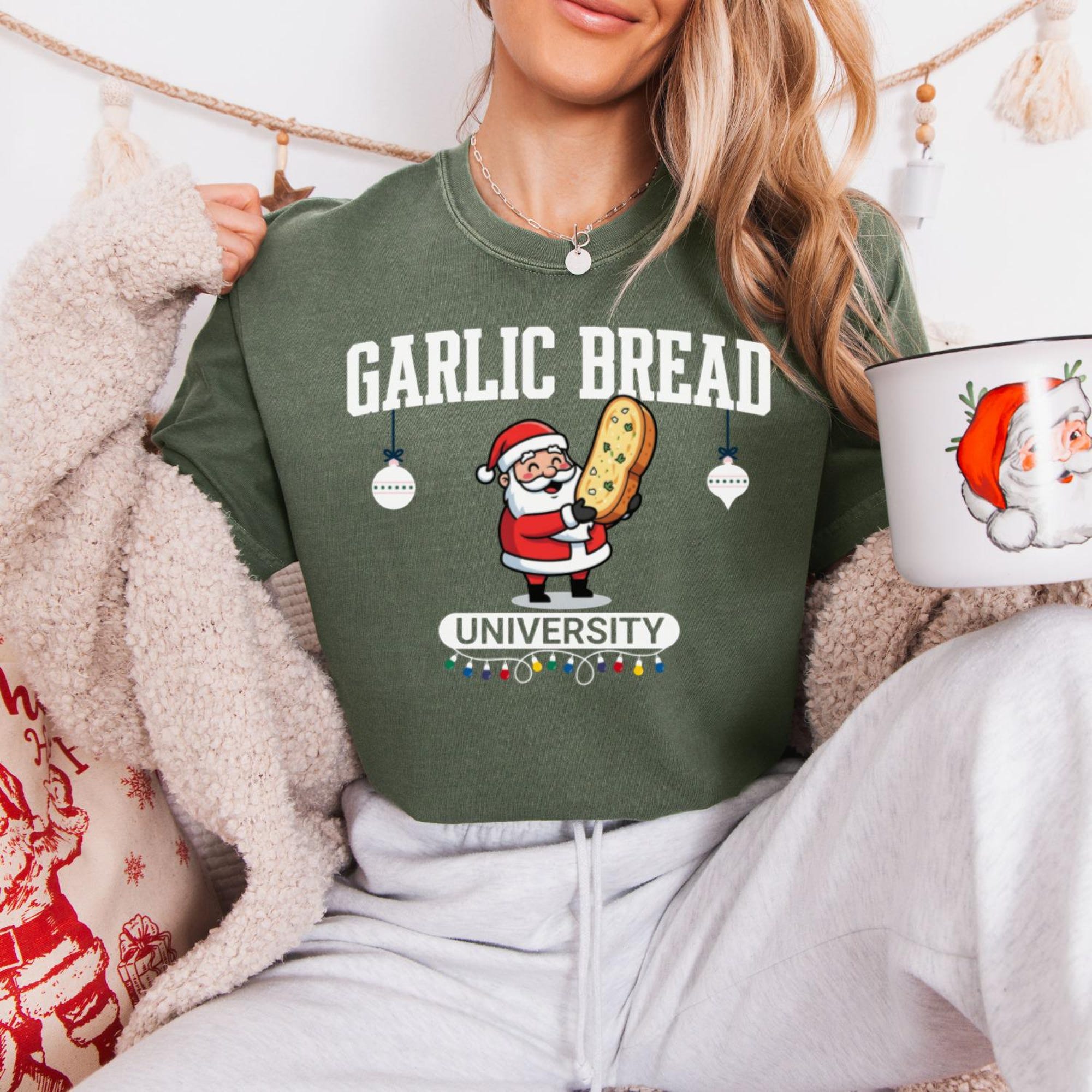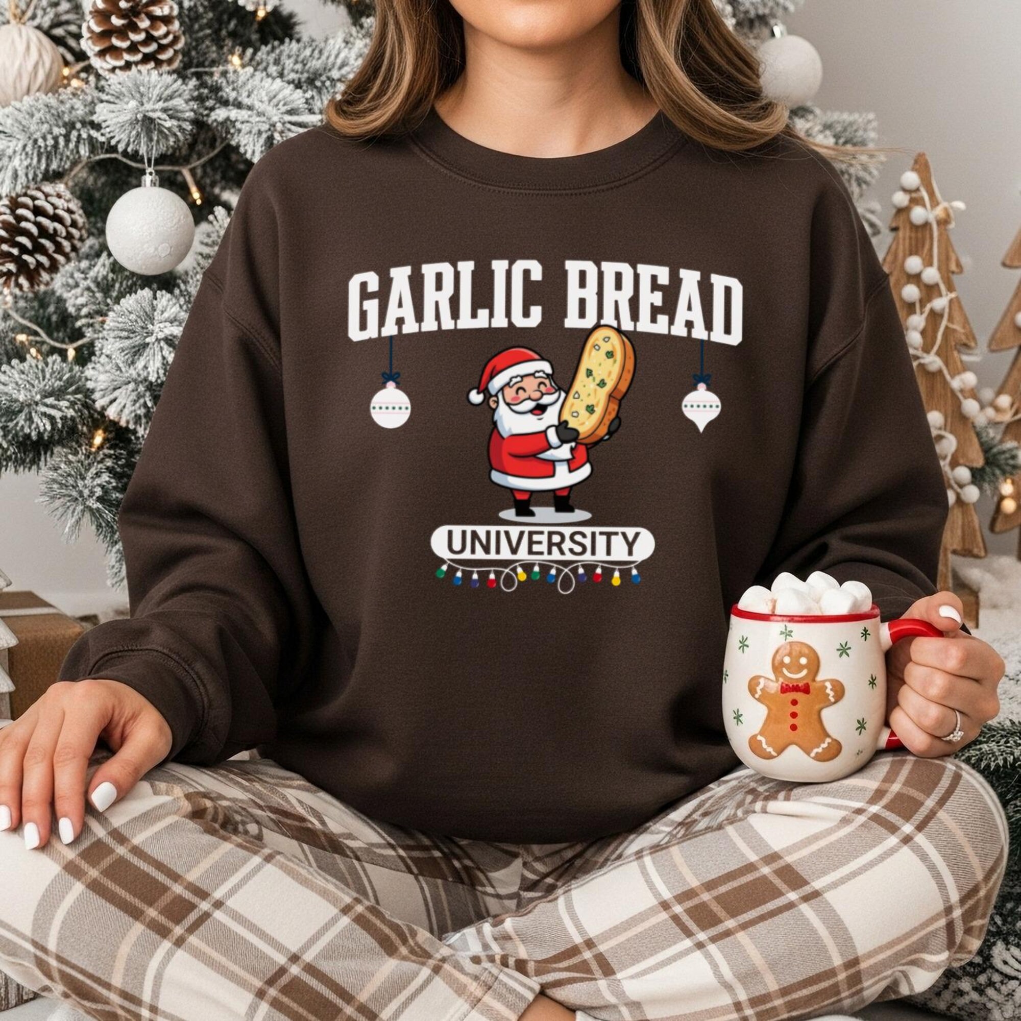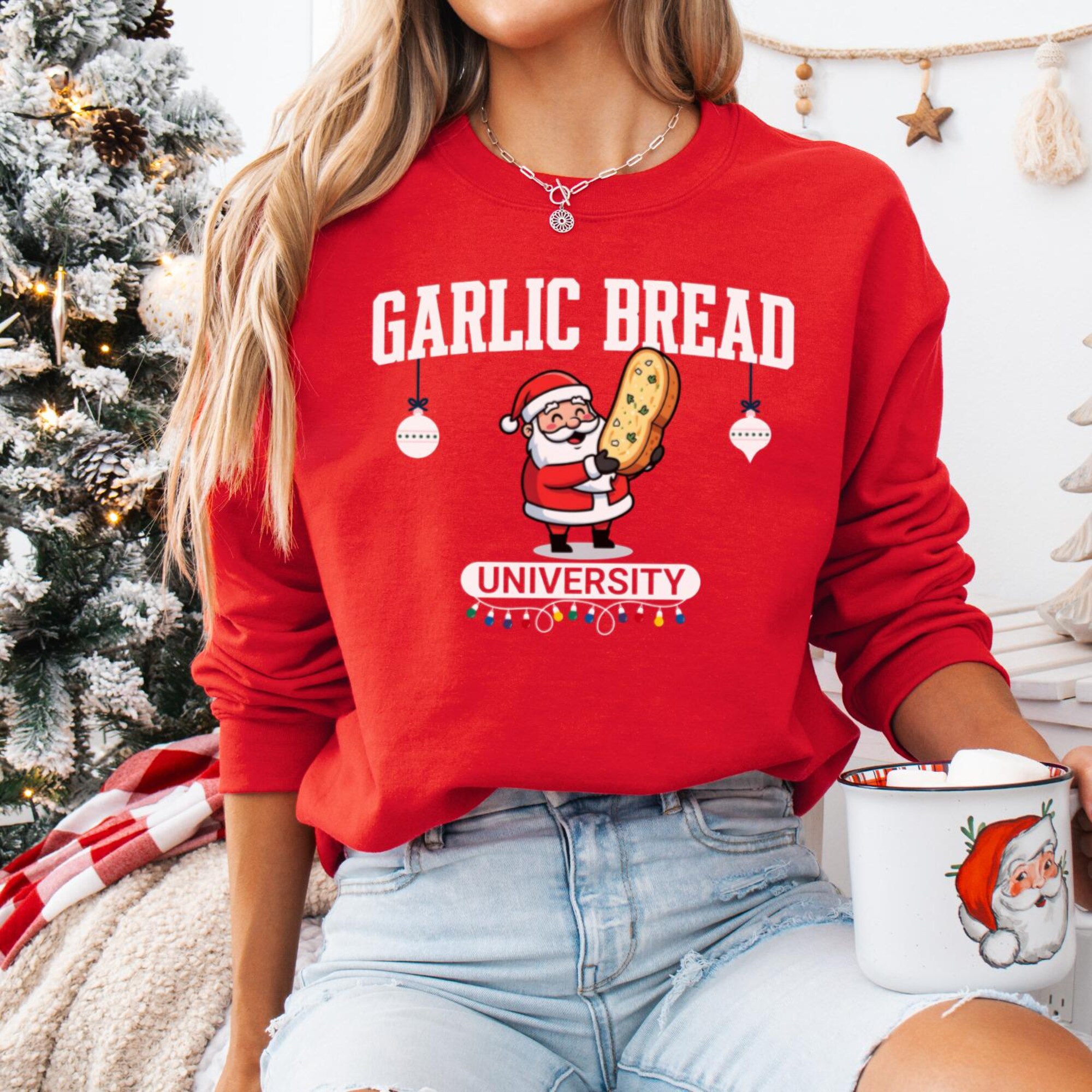 Garlic Bread University Sweatshirt, Santa Christmas Gift, Funny Foodie Sweatshirt, Unique Best Friend Gift, Bread Lover Present