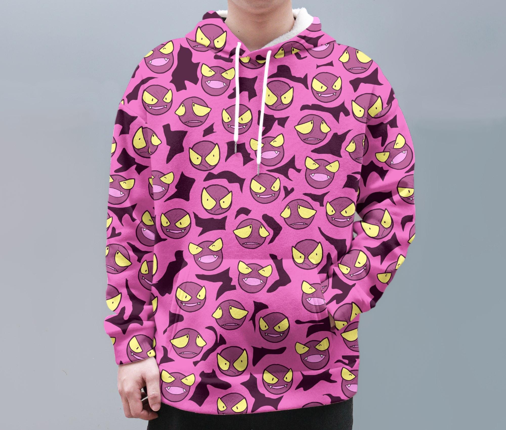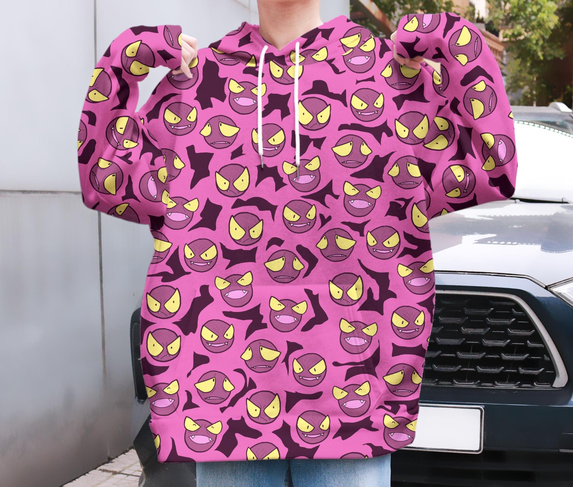 Gastly Hoodie, Cute Gengar Graphic Hoodie, Funny Spooky Hoodie, Unisex Halloween Hoodie, Cozy Streetwear Sweatshirt, Trendy Vintage Hoodie
