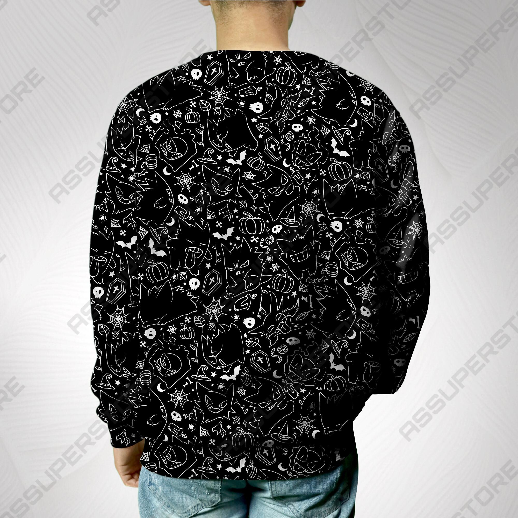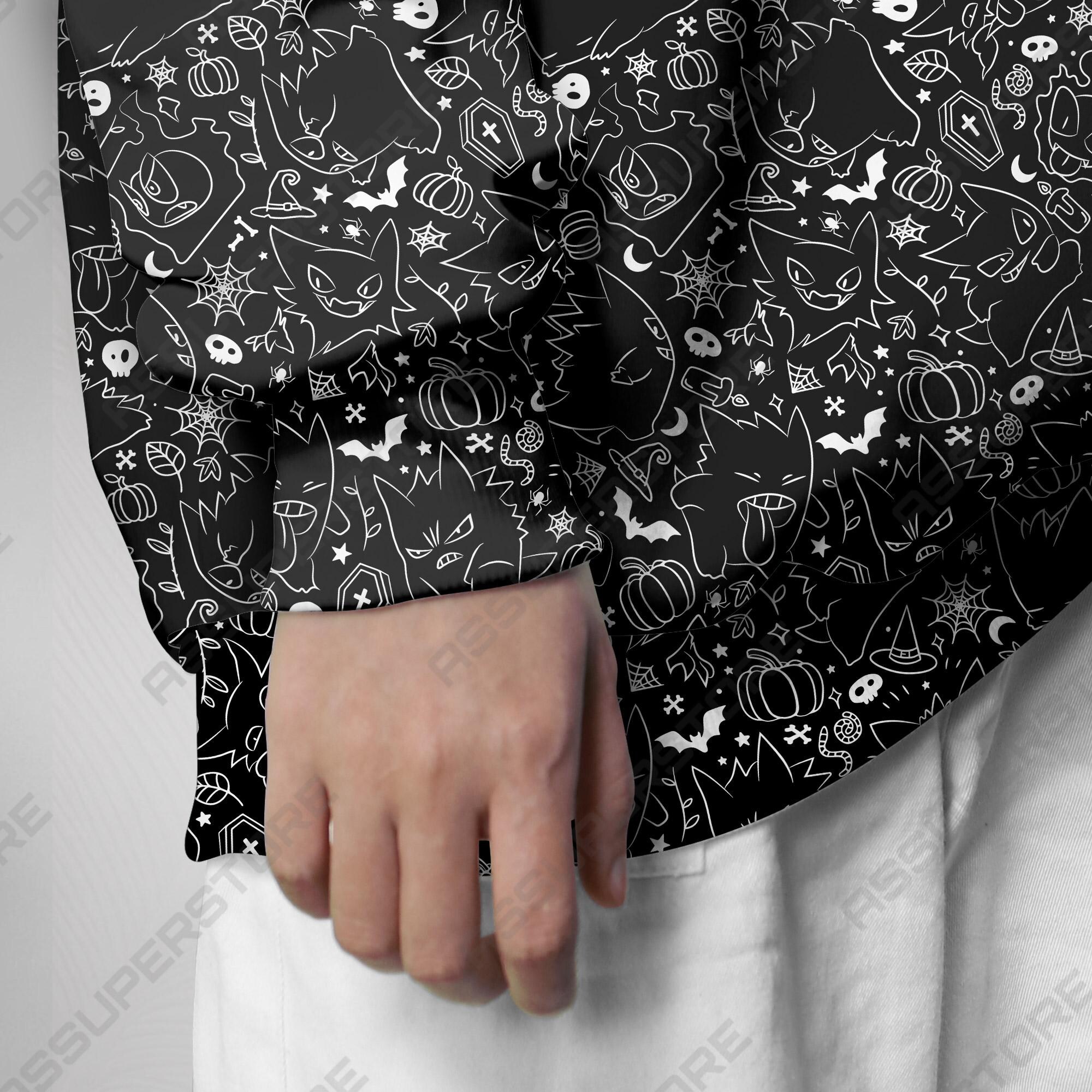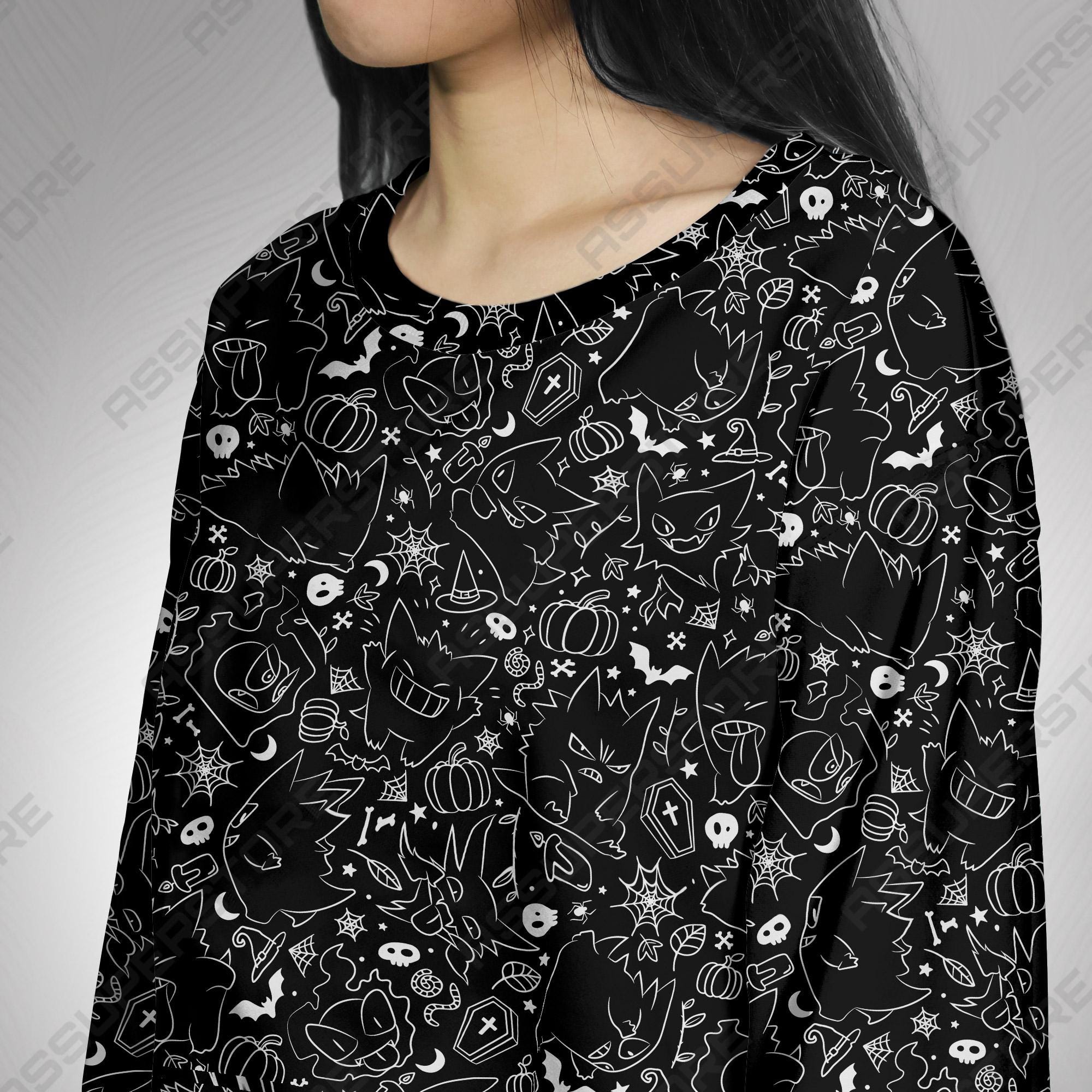 Gengar Crewneck Sweatshirt Black Graphic Art Unisex Sweatshirt Funny Halloween Sweatshirt Cute Gengar Shirt Gifts