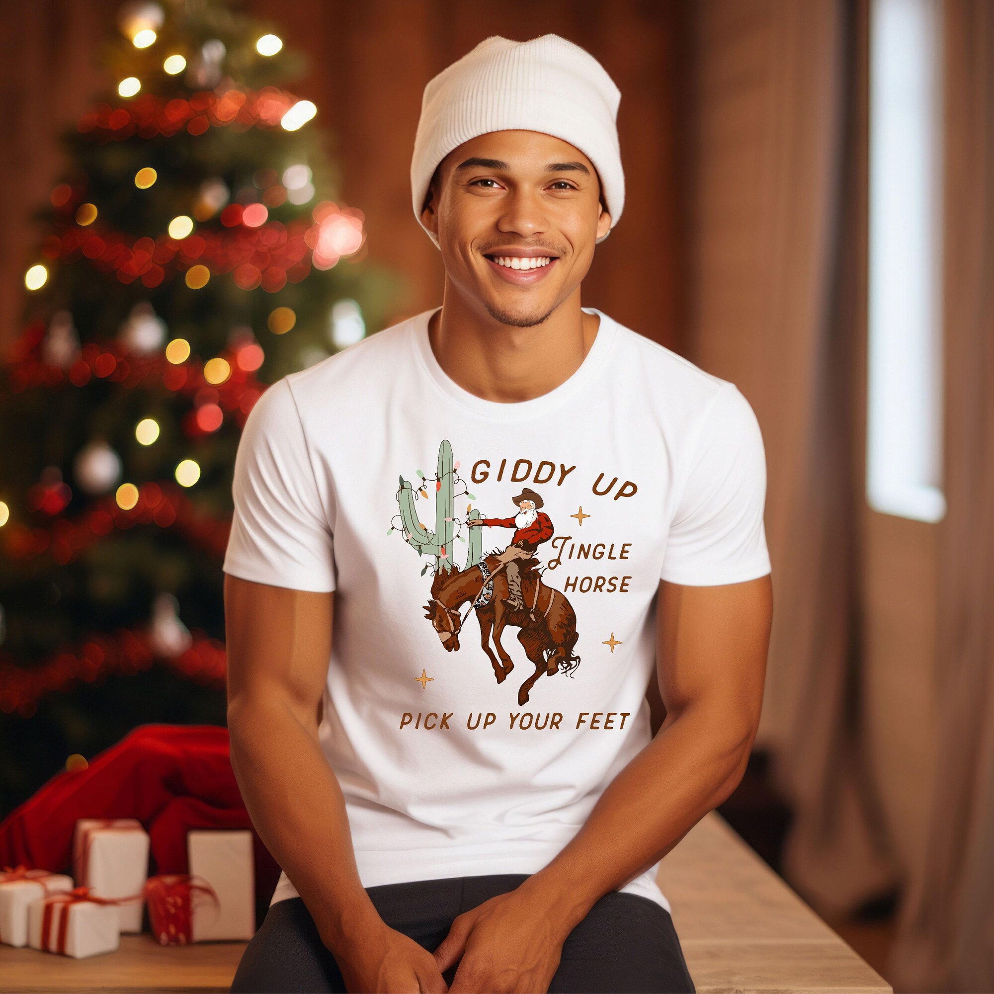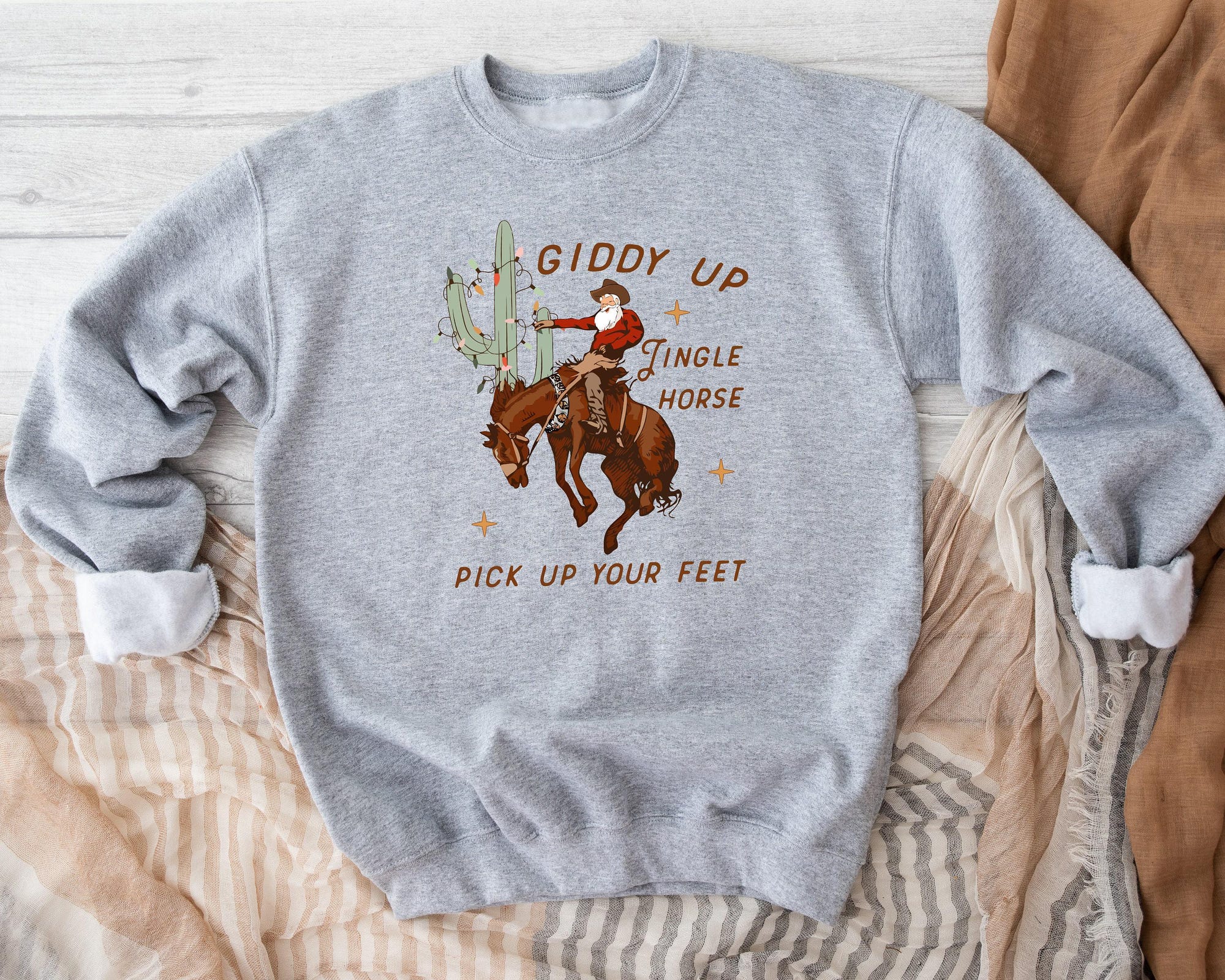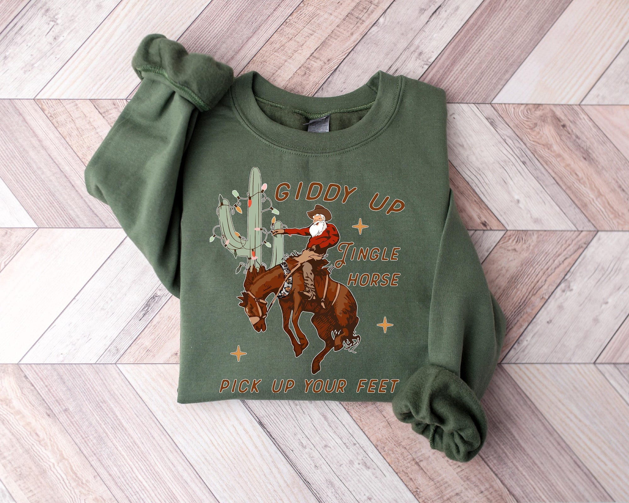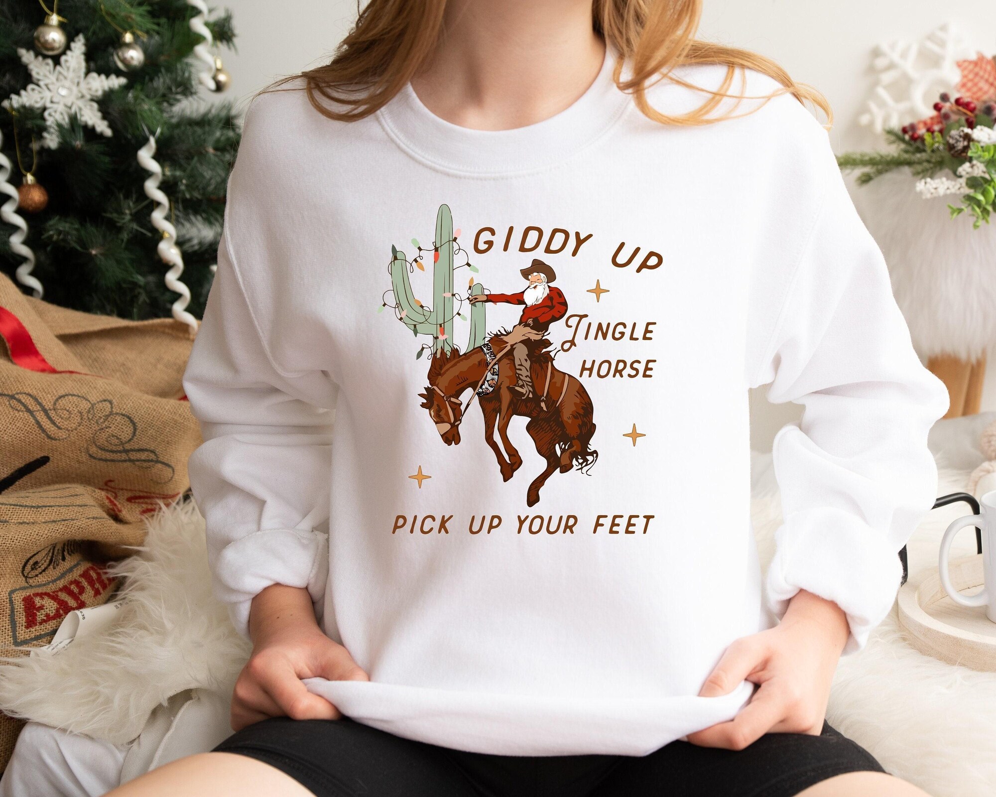 Giddy Up Jingle Horse Pick Up Your Feet,Cowboy Christmas Crewneck Sweatshirt,Cowgirl Hoodie,Howdy Country Christmas Horse T-Shirt