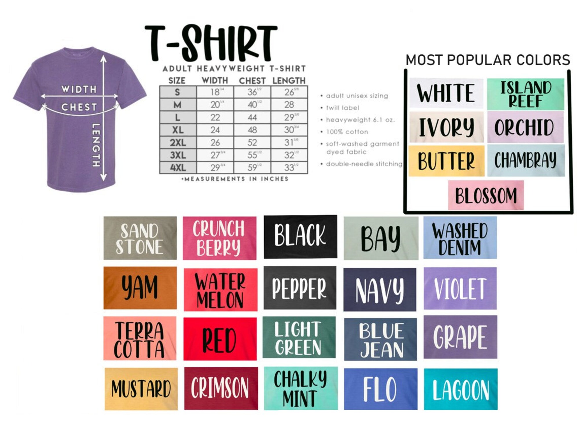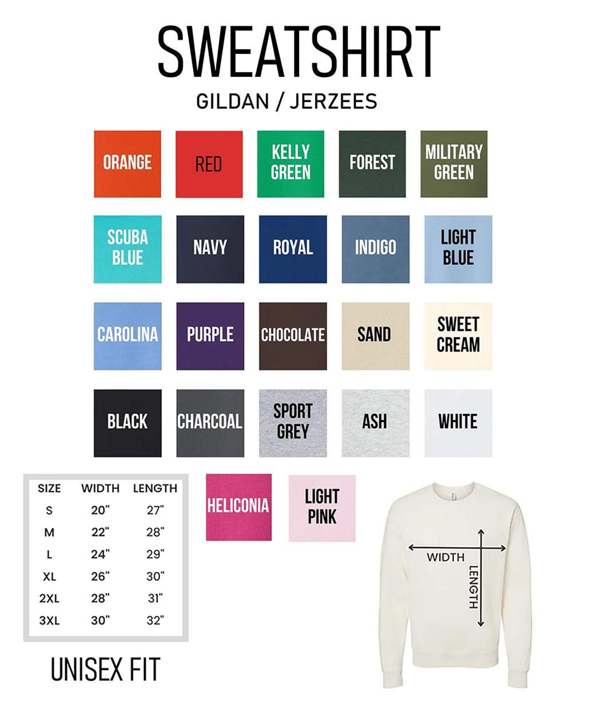 Shown on Sweet Cream Sweatshirt. Available on a Comfort Colors T-shirt, Gildan Sweatshirt, or Comfort Colors Sweatshirt