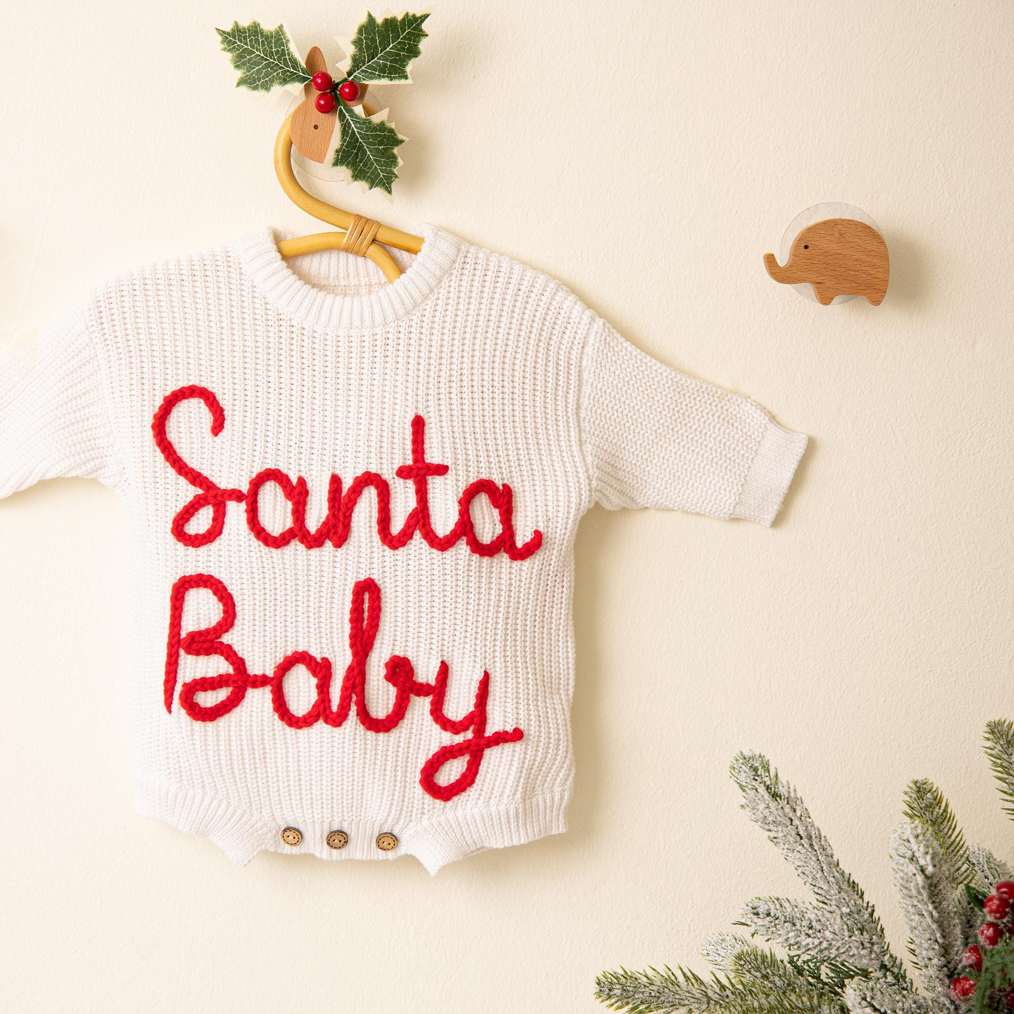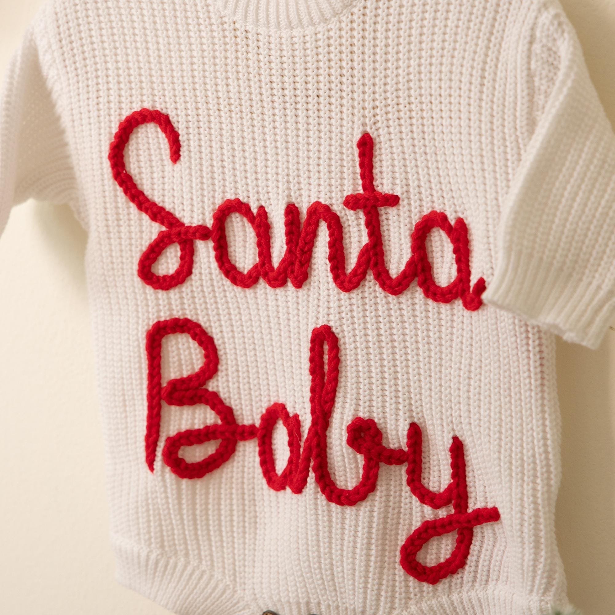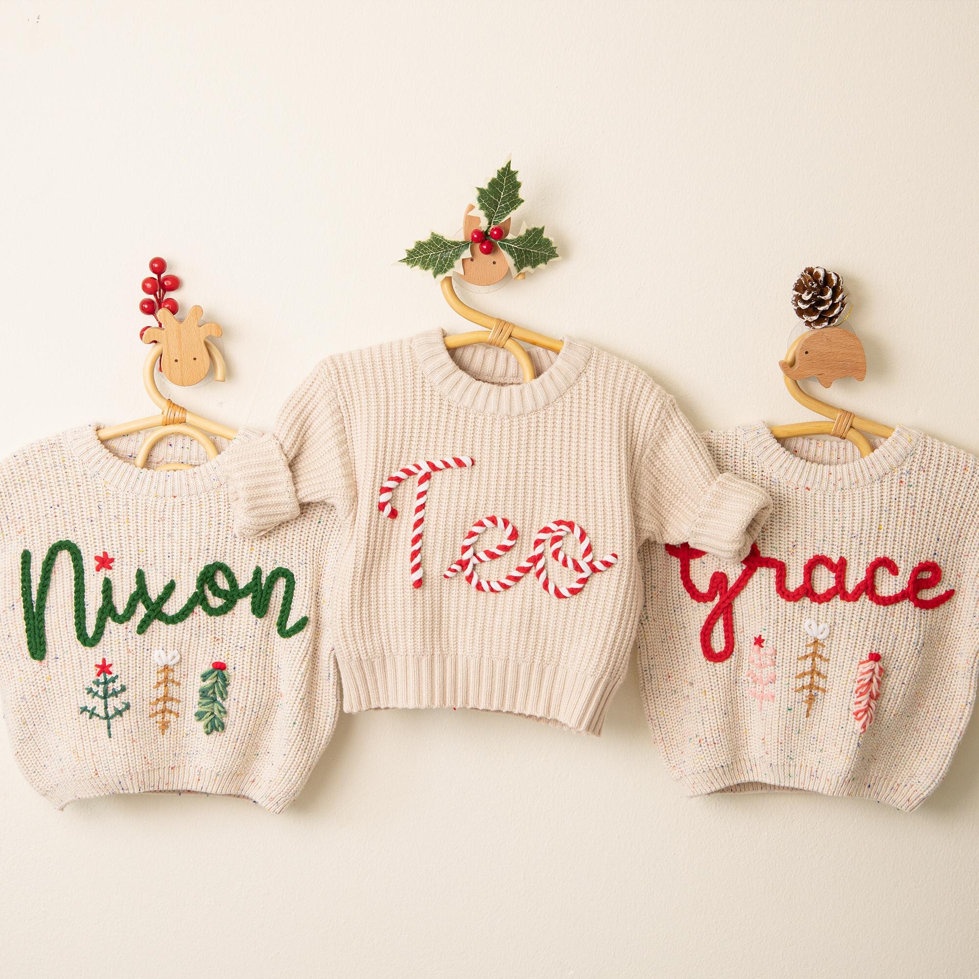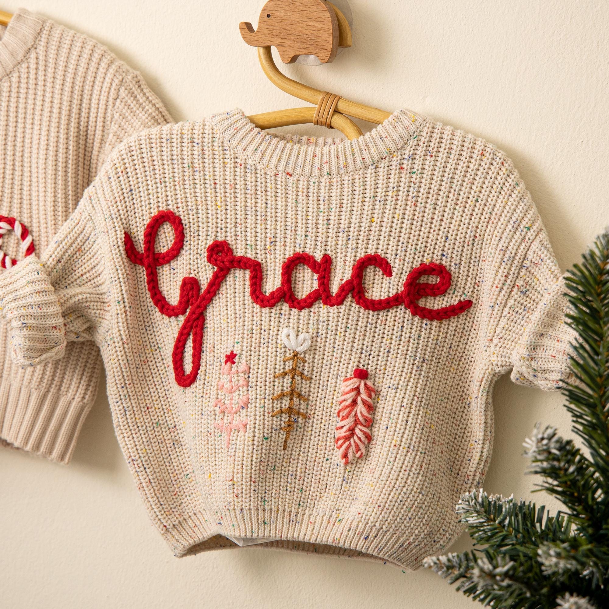 Hand Embroidered Baby Name Christmas Sweater for Baby Girls and Toddler Girls, Baby Toddler Custom Holiday Sweater, Christmas Girls Outfit