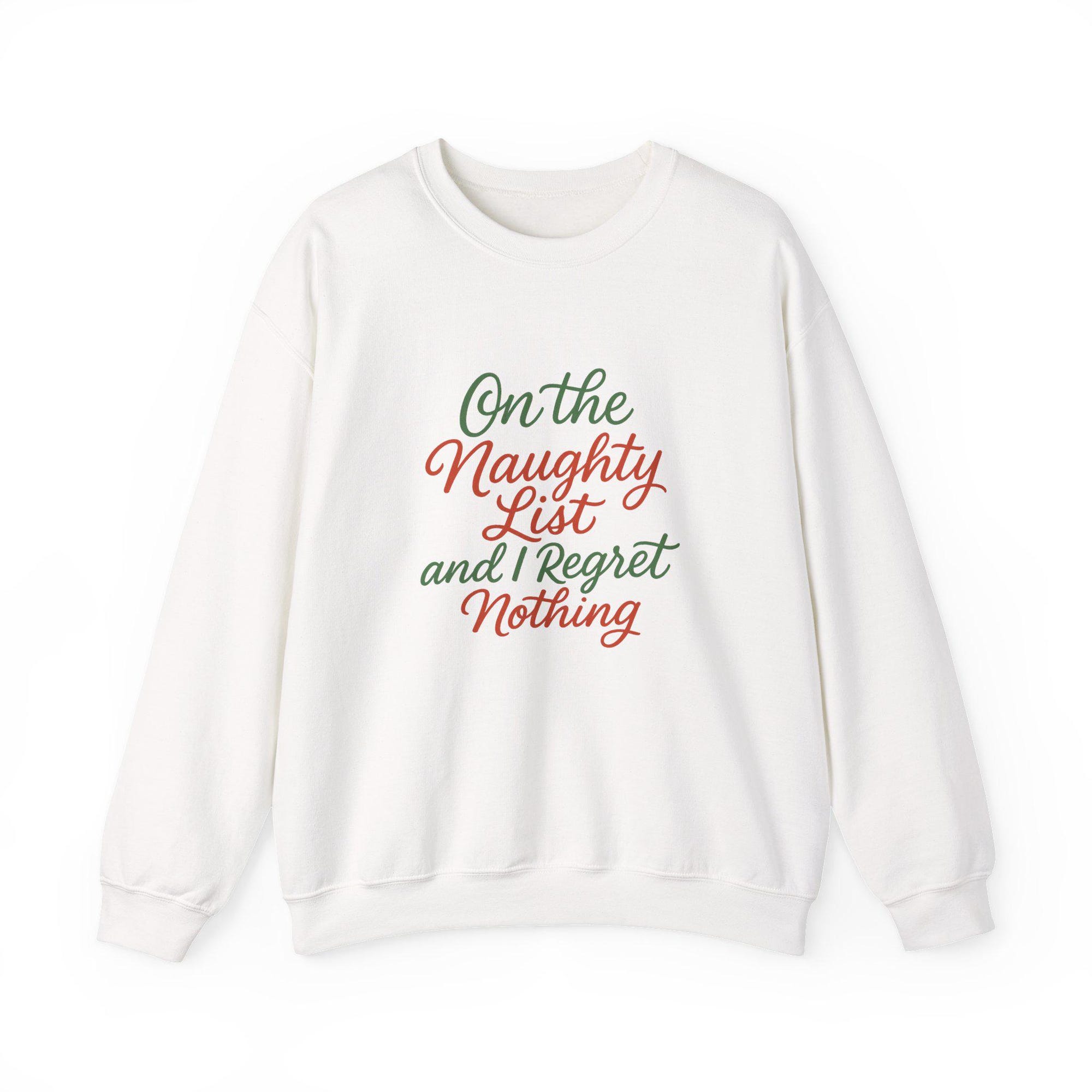 Get cozy and show off your holiday humor with this “On the Naughty List and I Regret Nothing” sweatshirt — the perfect mix of festive and cheeky! ????