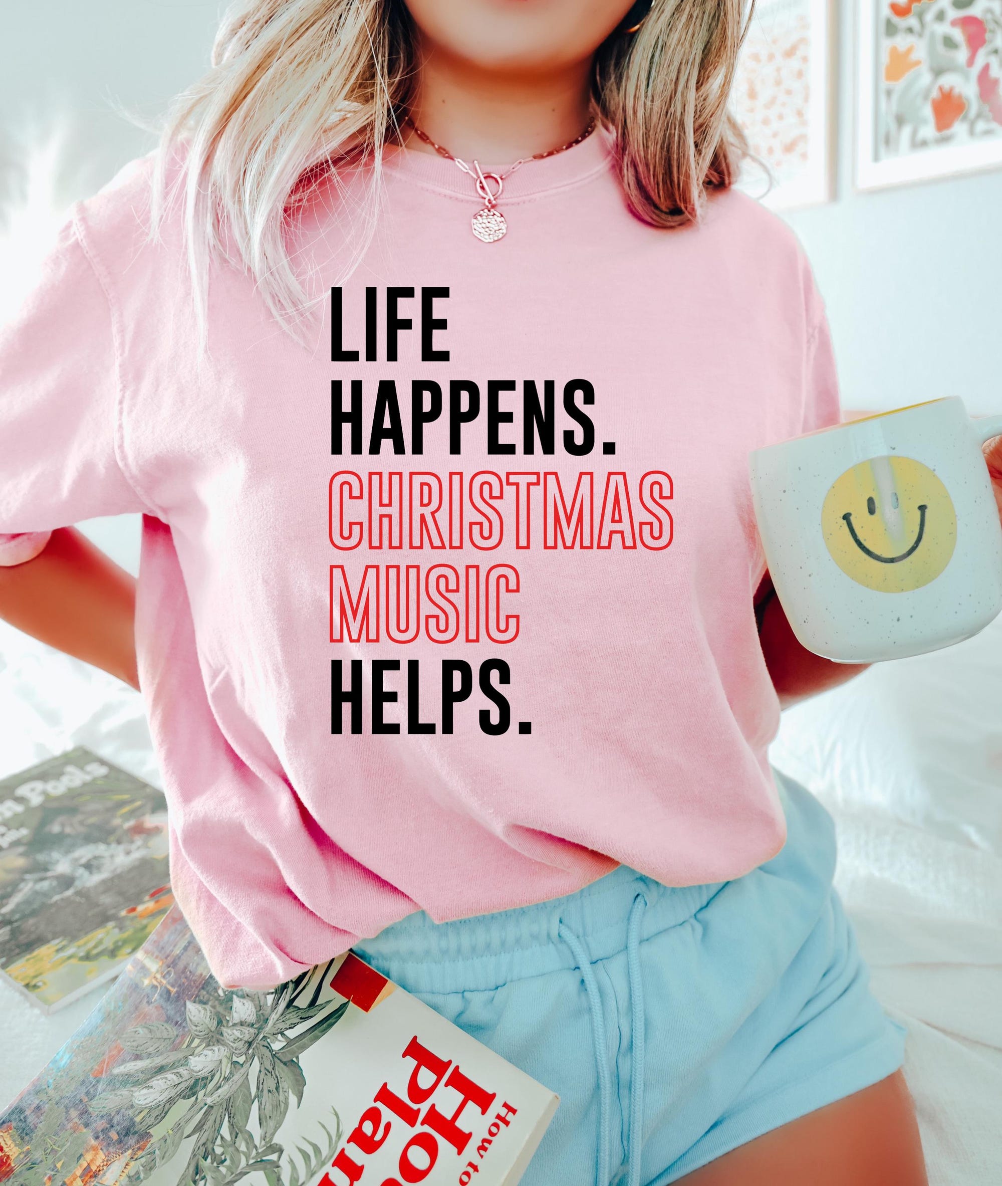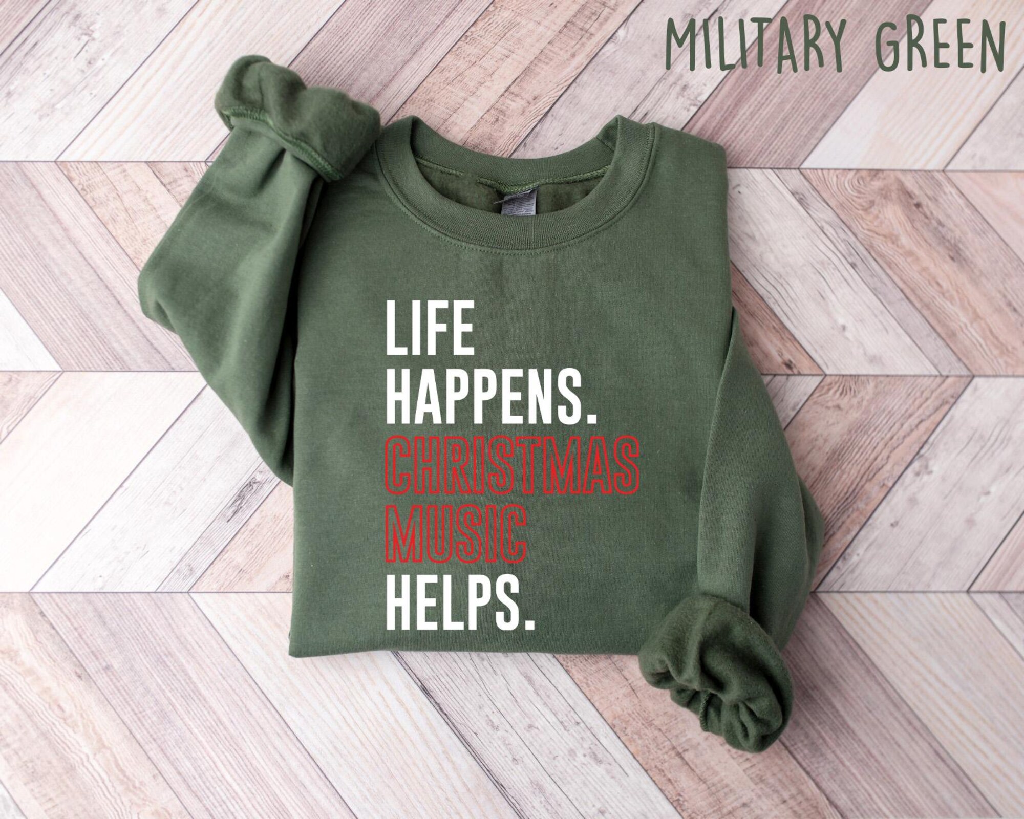 Holiday Sweatshirt, Life Happens Christmas Music Helps Lover Shirt, Christmas Hoodie, Christmas Music Tshirt, Winter Festive Music Crewneck