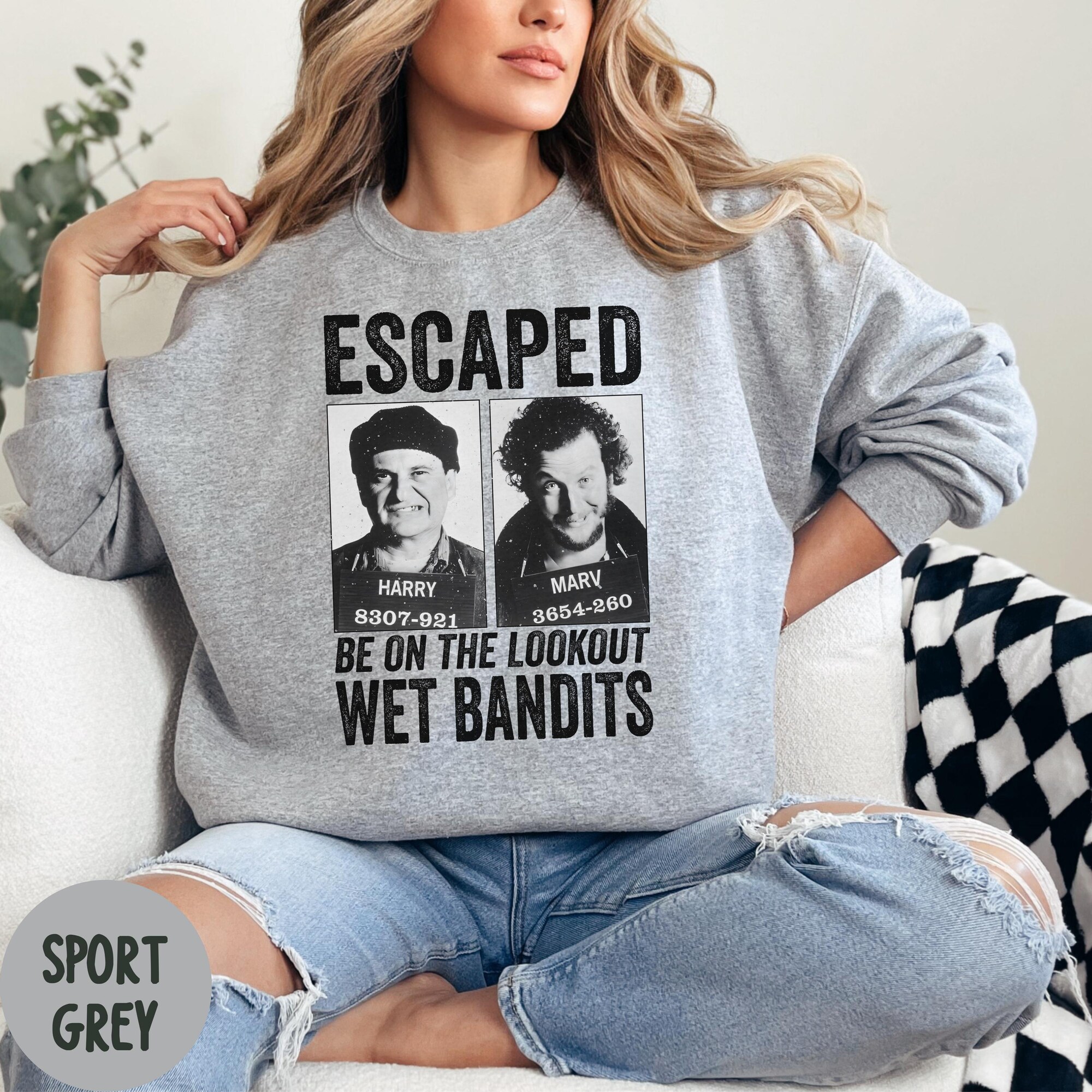 Home alone wet bandits sweatshirt harry and Marv sweatshirt funny Christmas sweatshirt movie characters escaped wet bandits sweatshirt kevin