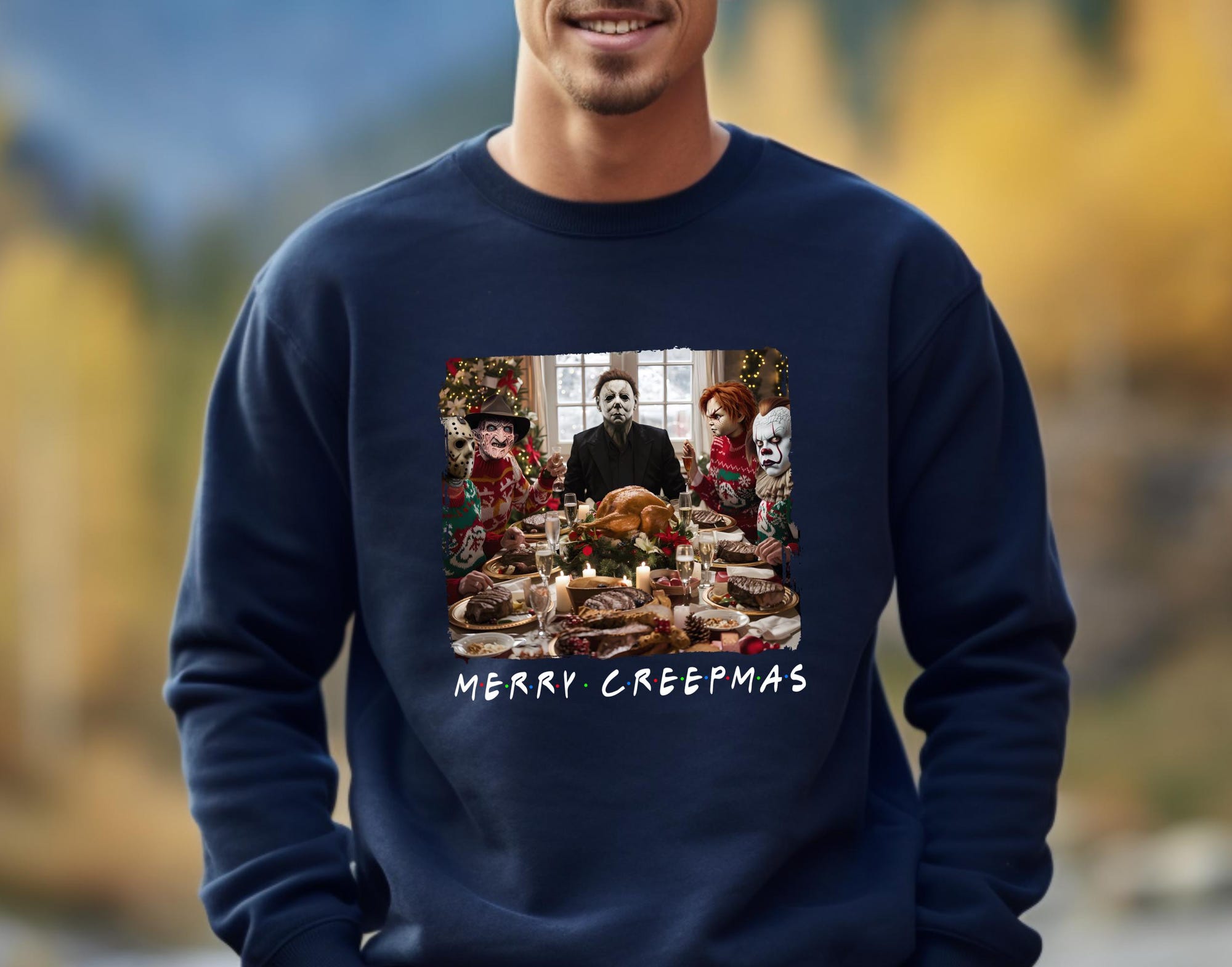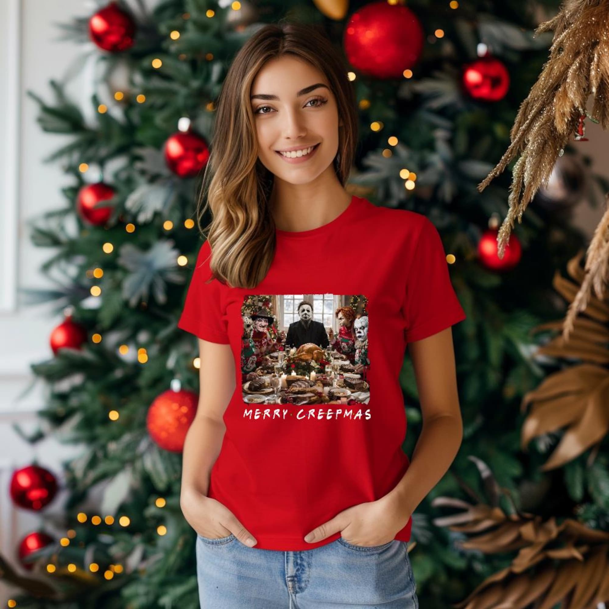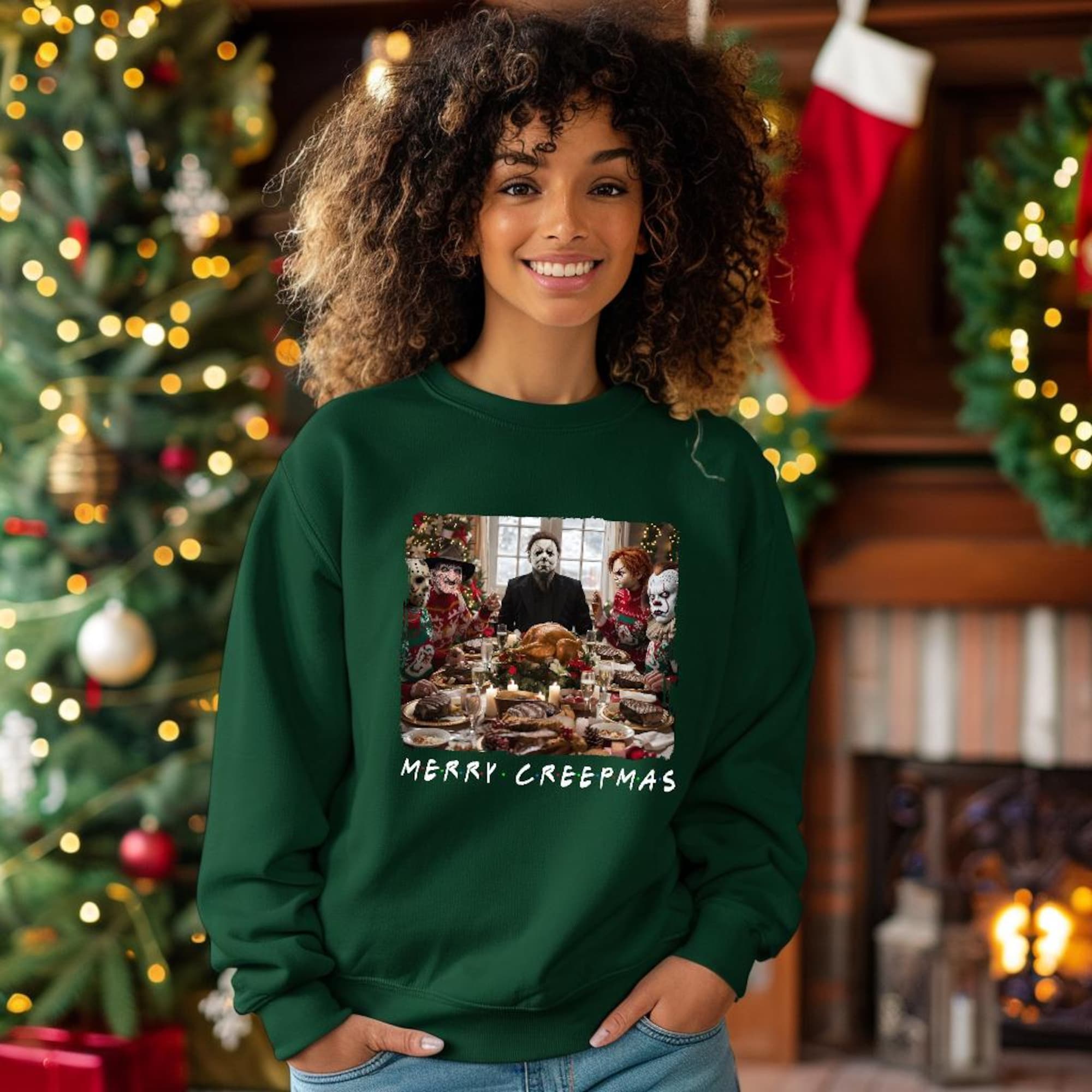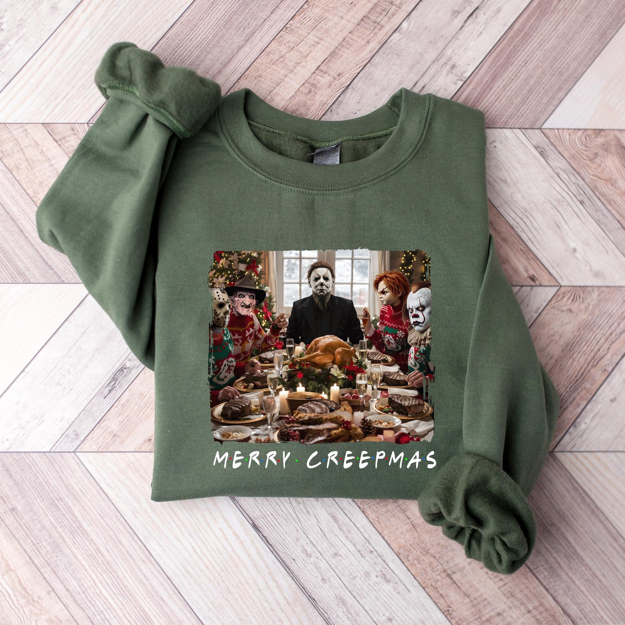 Horror Movie Christmas T-Shirt – Christmas Movie Killer Sweatshirt – Merry Creepmas Trendy Shirt – Christmas Horror Shirt – Killer Friends