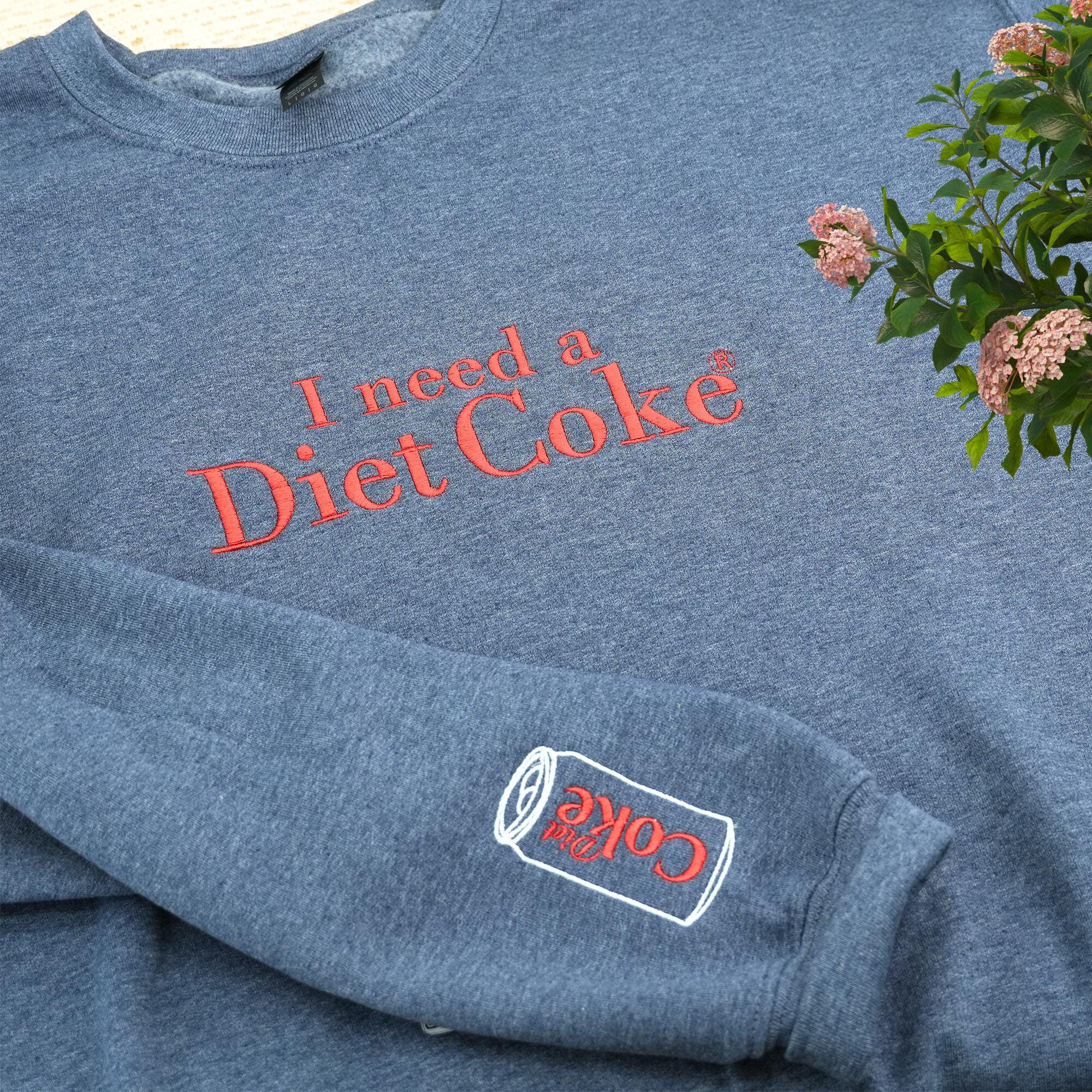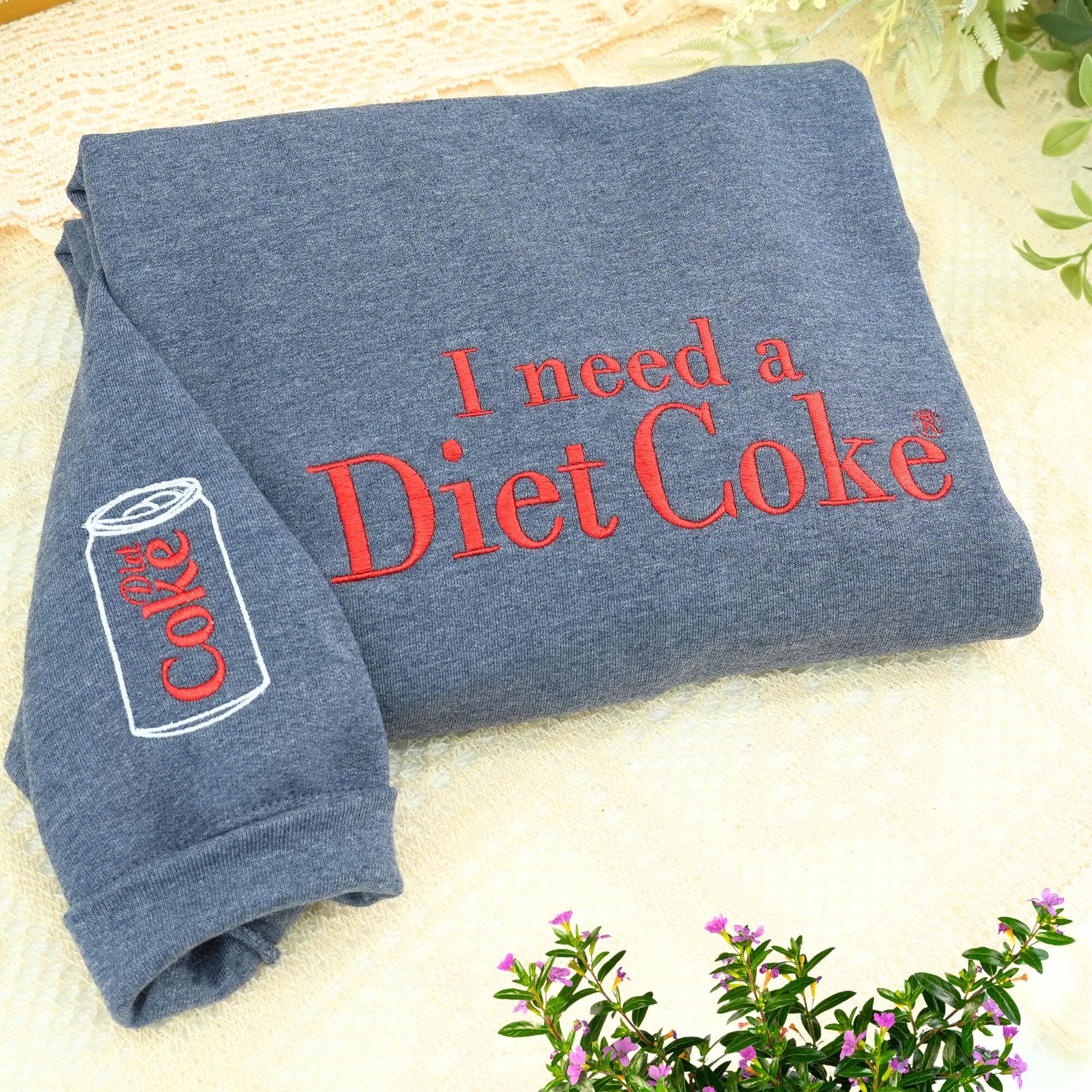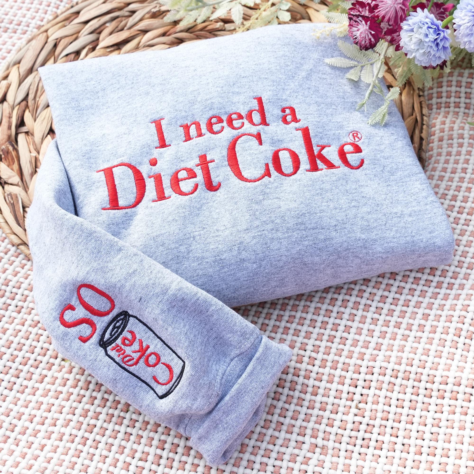 This cozy, retro-style “I Need a Diet Coke” embroidered sweatshirt is the ultimate cute gift for your boyfriend, bestie, or even yourself—perfect for Christmas mornings, soda runs, or lounging in classic 90s style.