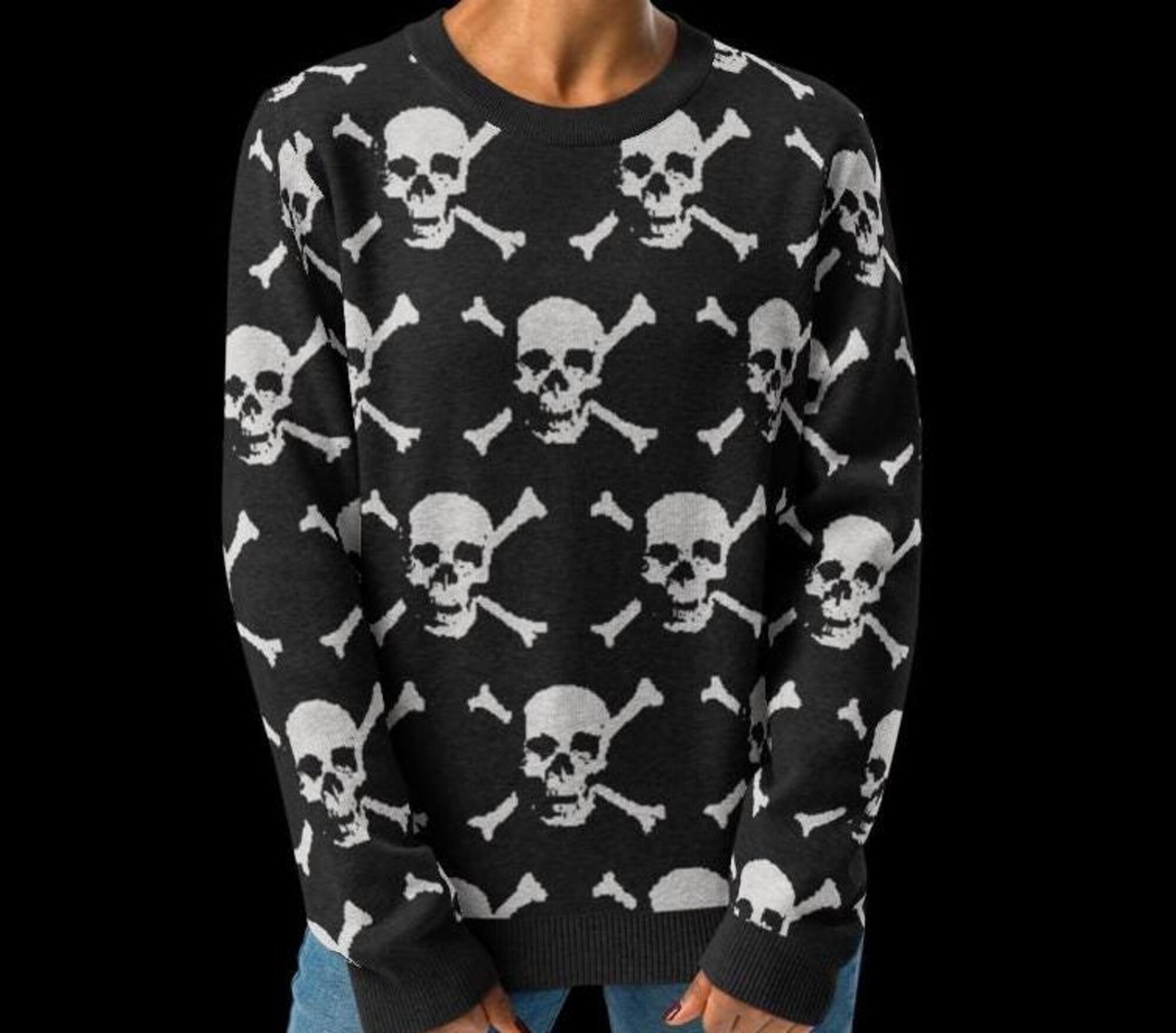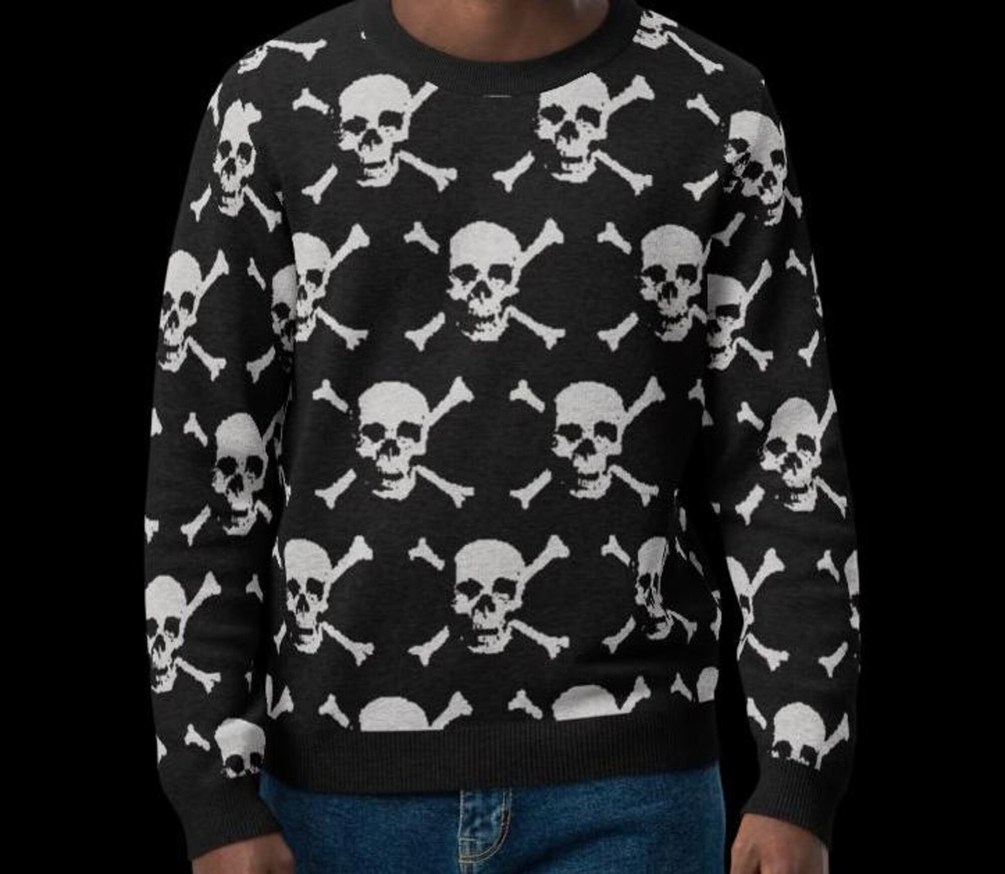 Jolly Roger Knitted Christmas Sweater, Ugly Christmas Sweater, Skull Christmas Sweater, Skull and Crossbones, Ugly Sweater, Knitted Sweater