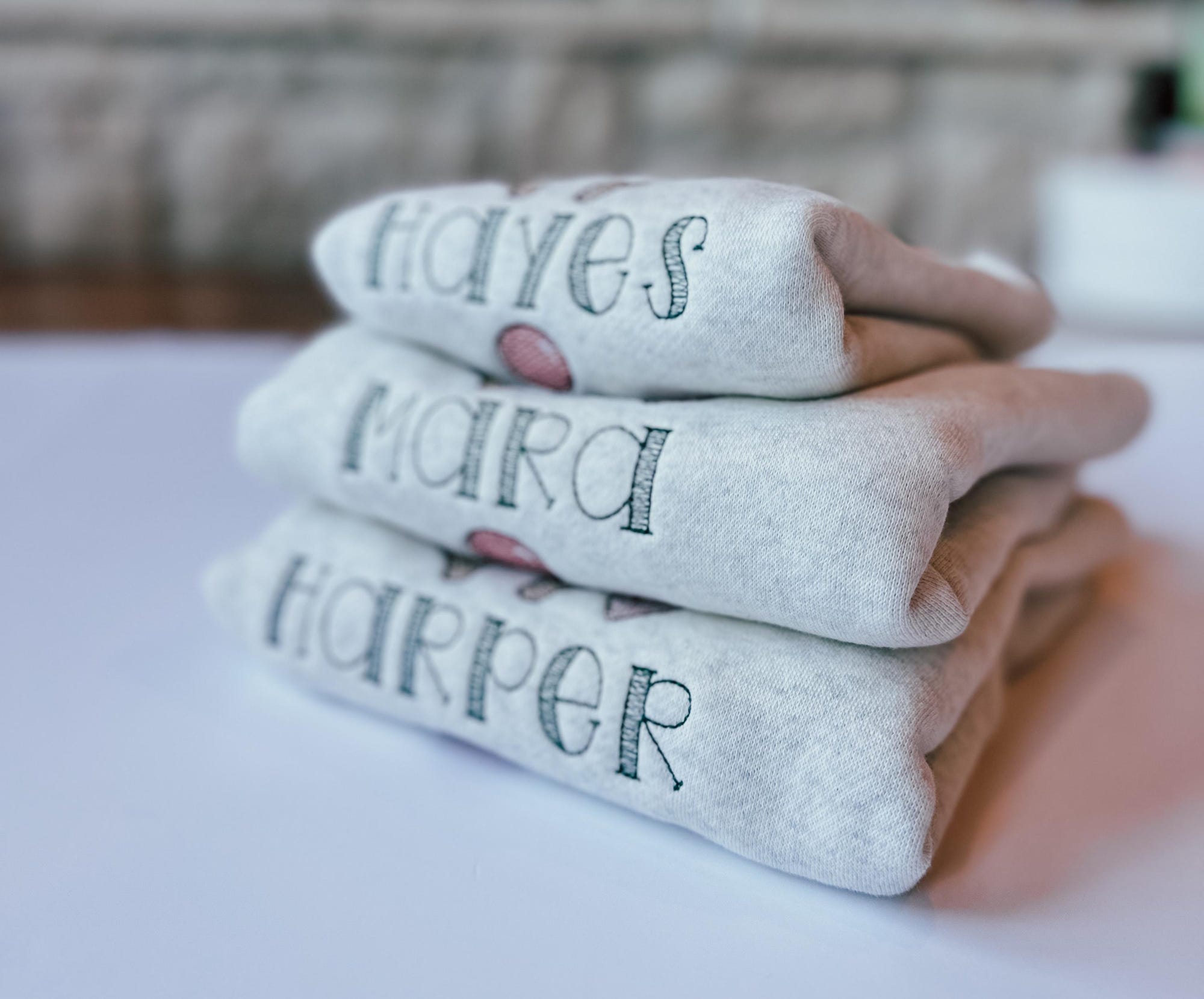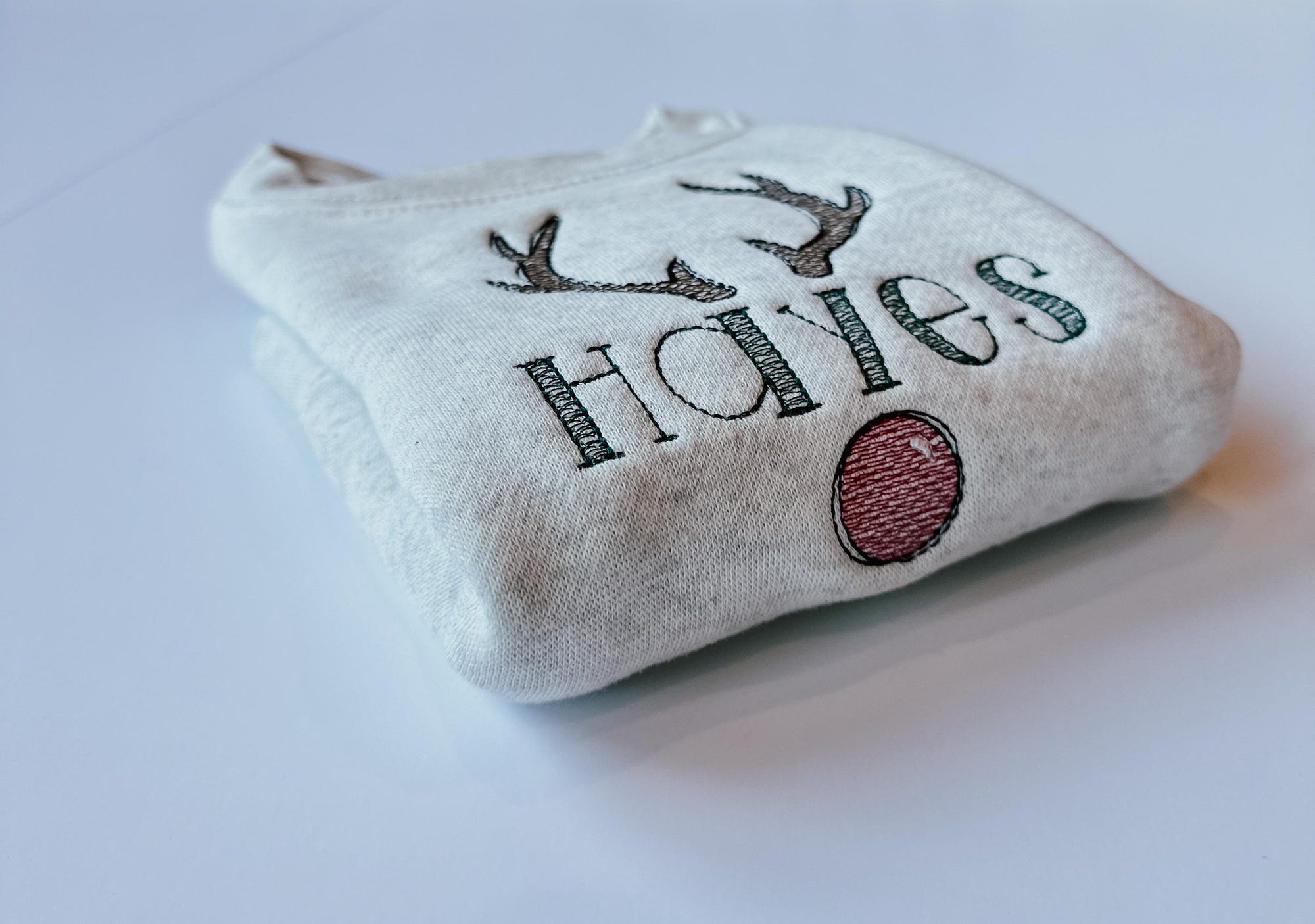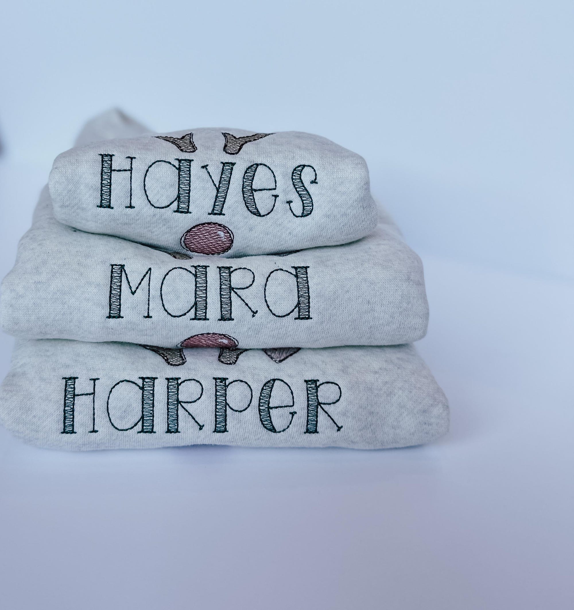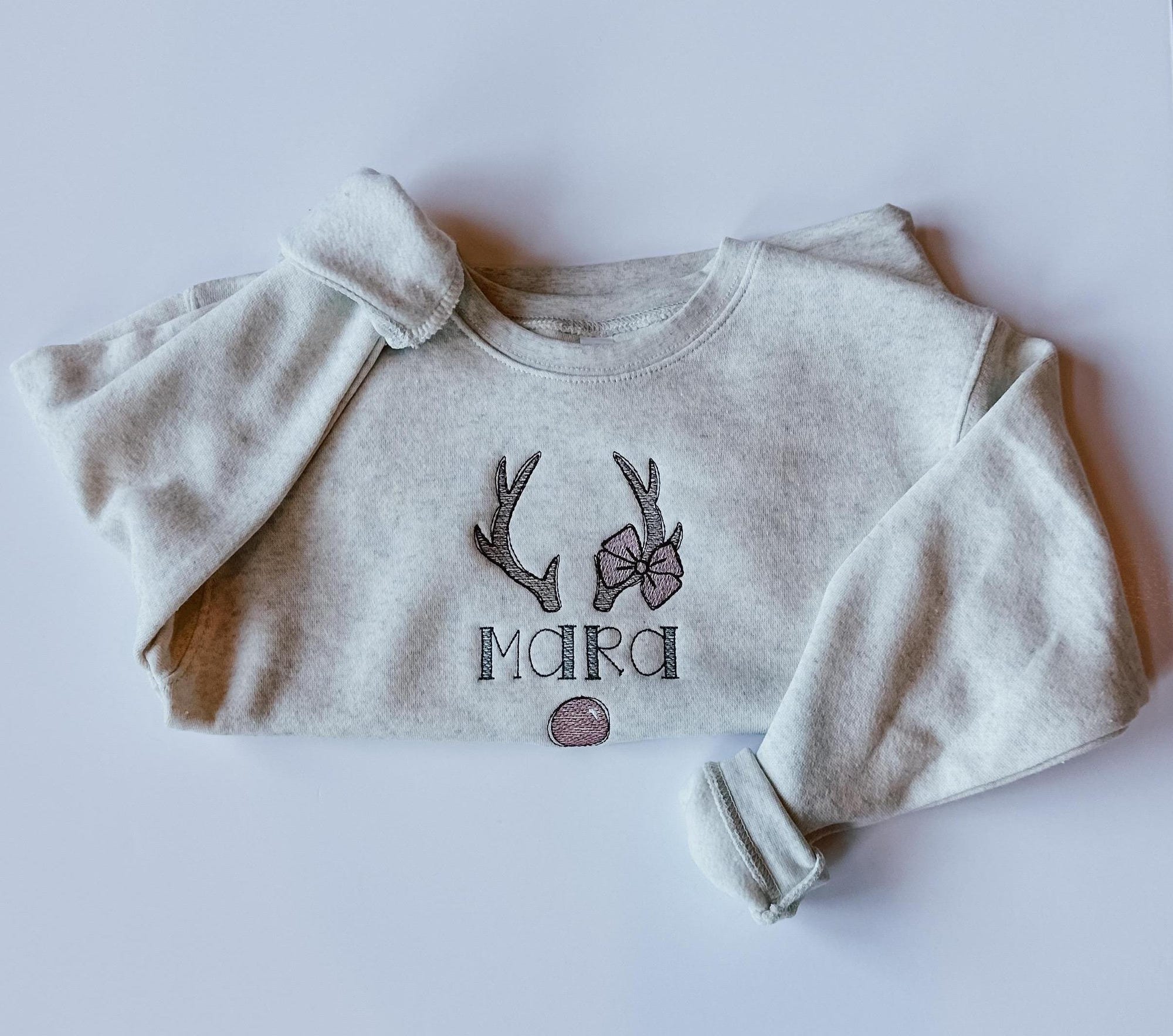 if you are looking for a personalized Christmas sweatshirt, you’ve found it! This sweet, simple and cozy shirt is perfect for any little girl or little boy. This holiday reindeer sweatshirt comes with or without a bow and customized with your little one’s name.
