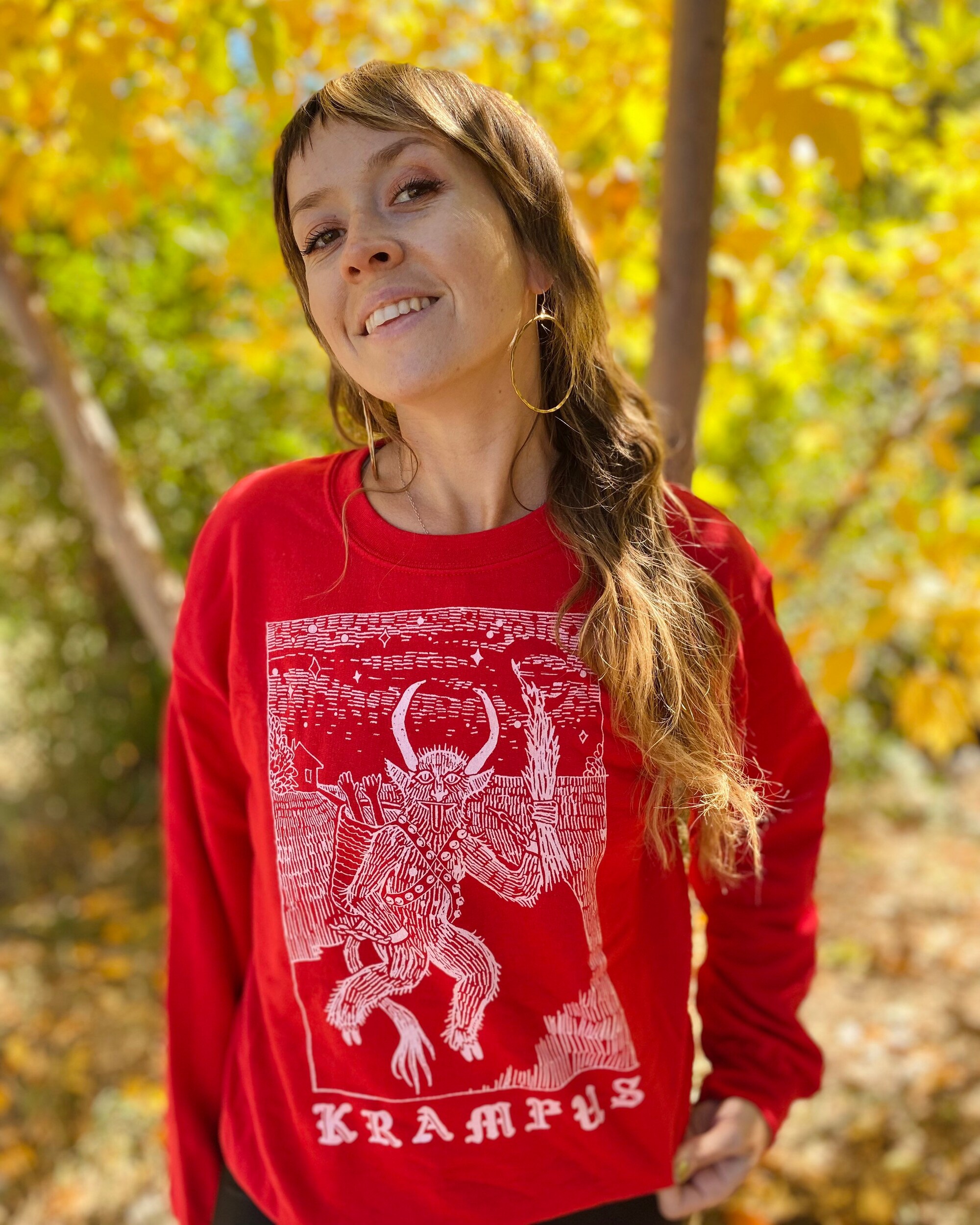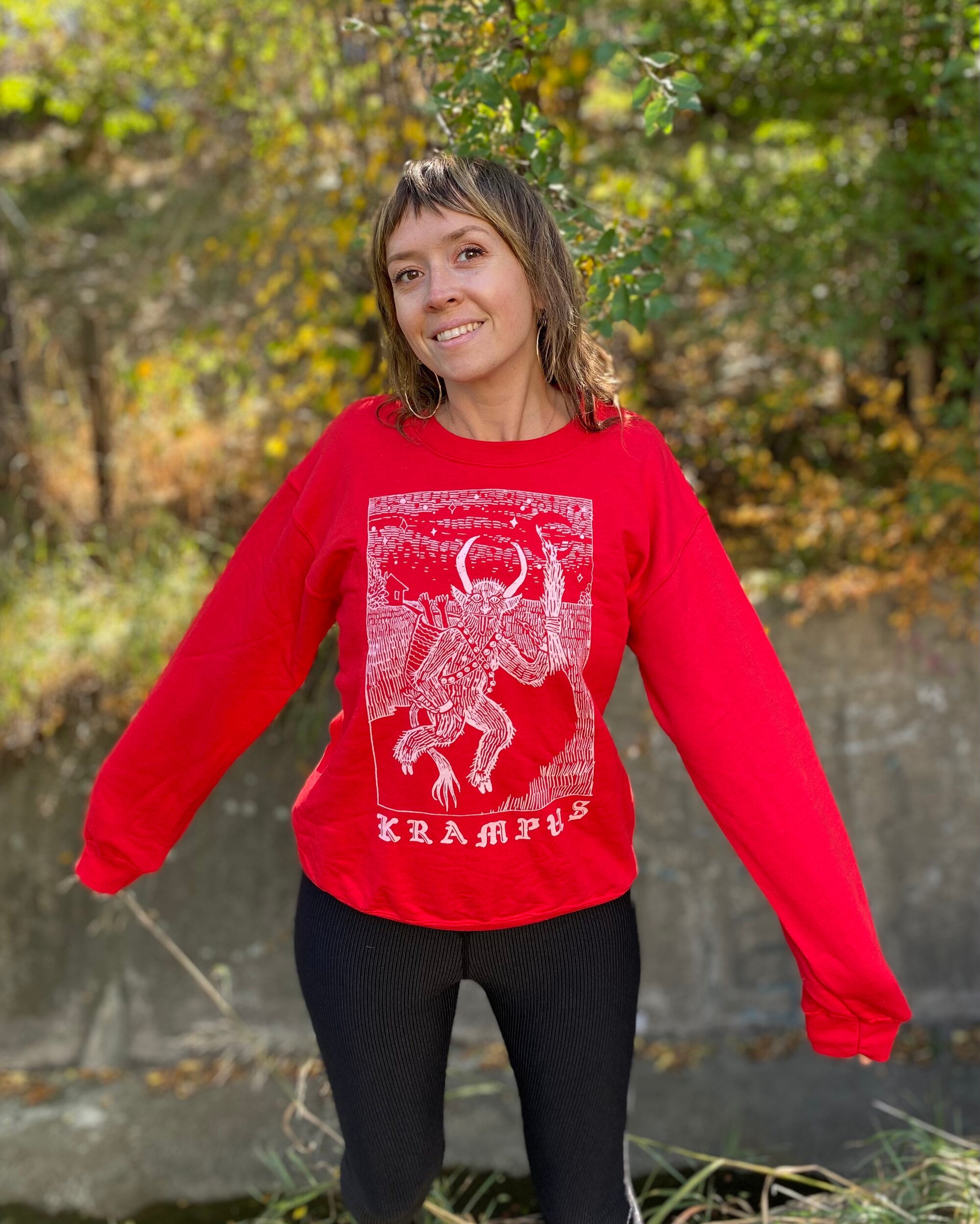 KRAMPUS SWEATER red – Gruss Vom Krampus / edgy christmas / pagan occult holiday look / oversized Vintage Style
