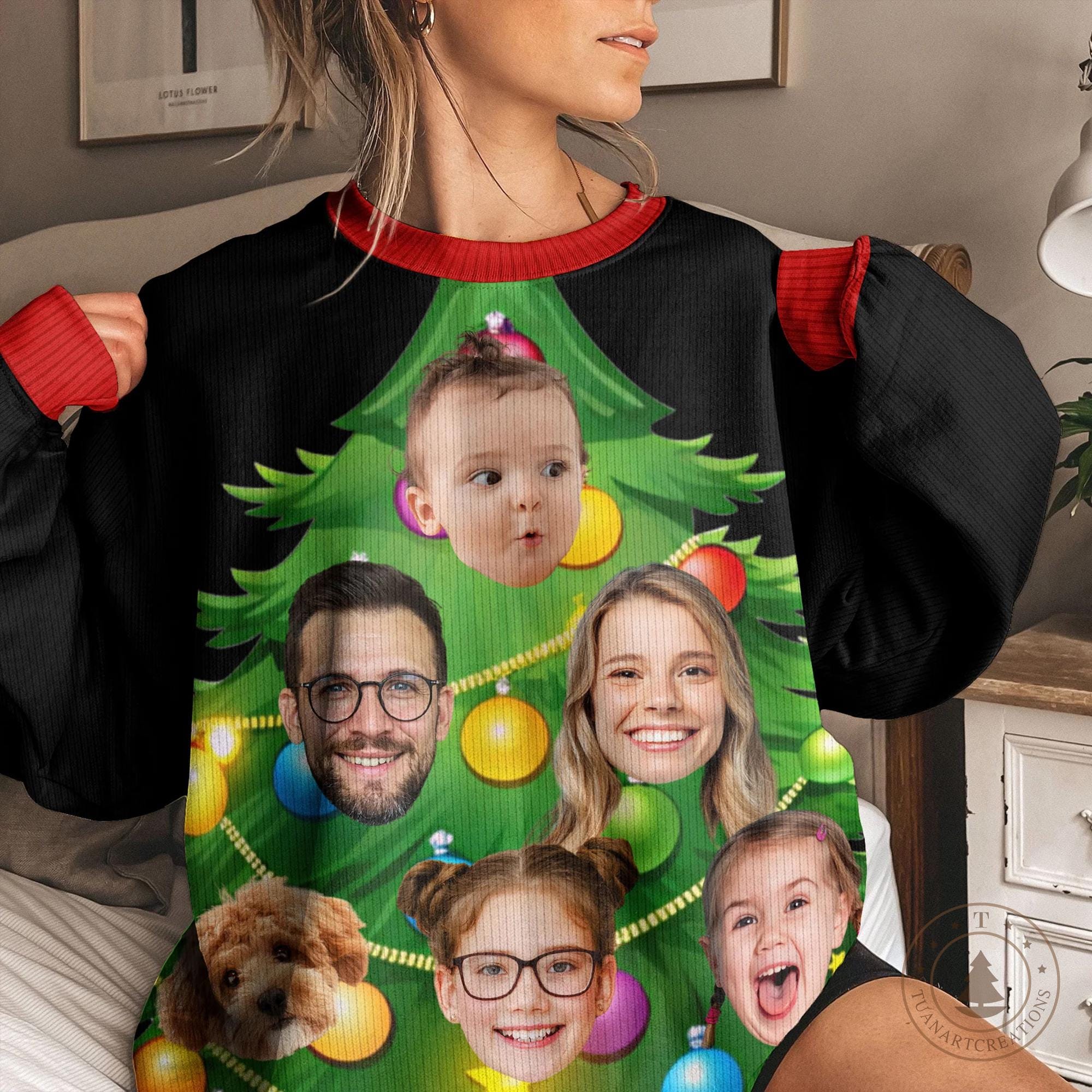 Light Up Christmas Sweater with Custom Photo – Personalized Funny Face Ugly Sweater for Holiday Gifts