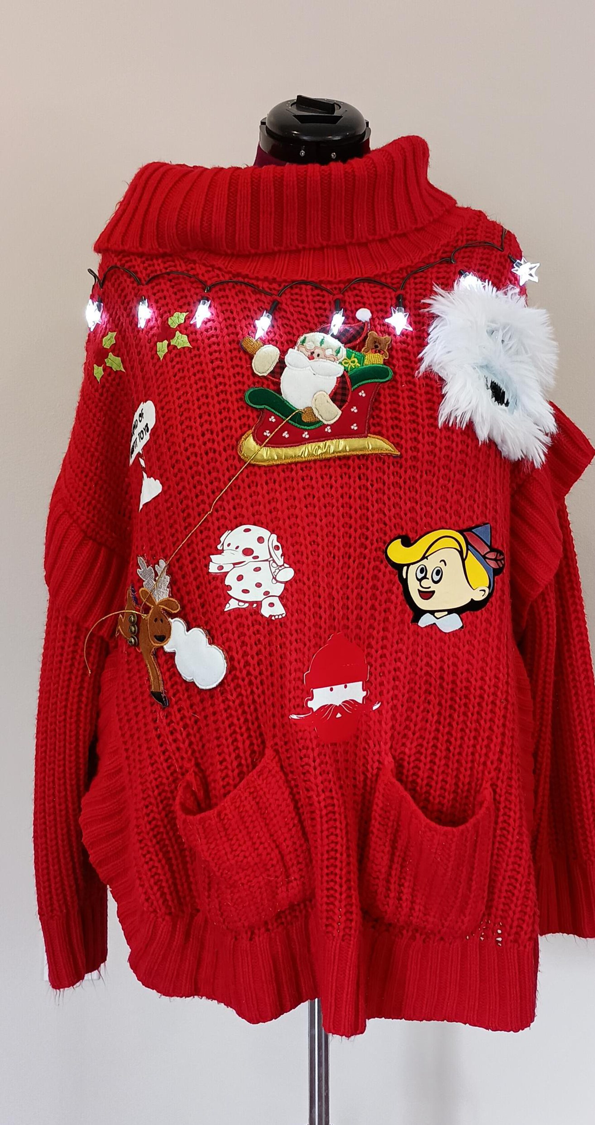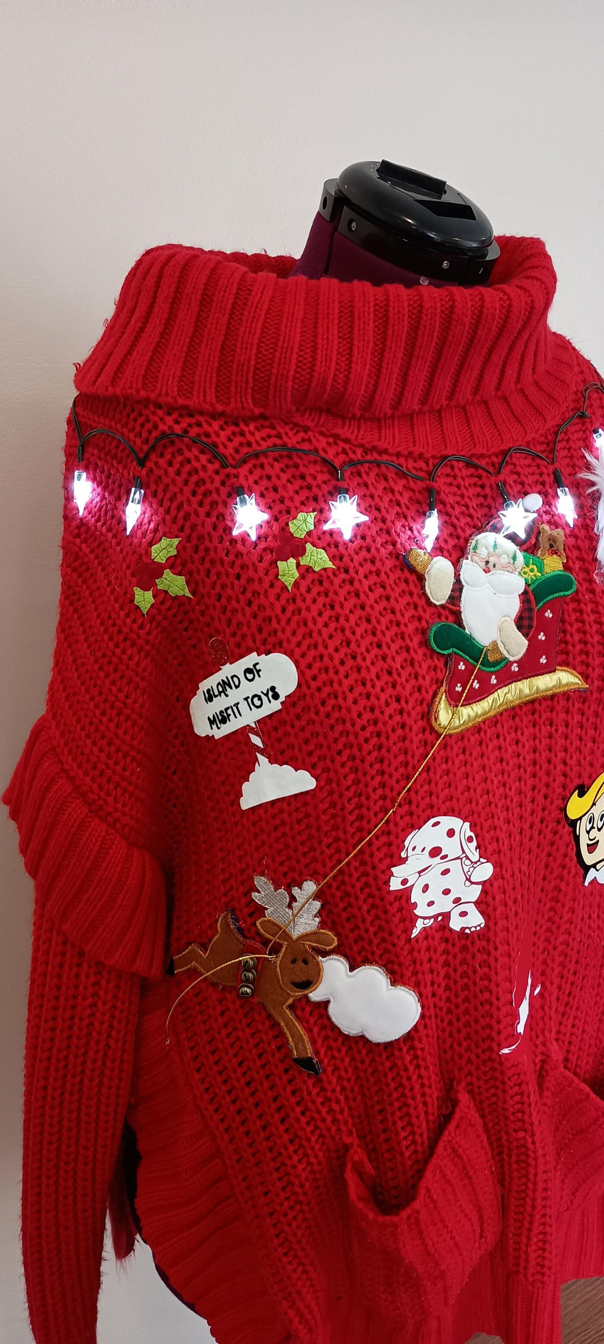 Light-Up Ugly Christmas Sweater Plus Size 1X/2X – Rudolph & Misfit Toys Theme