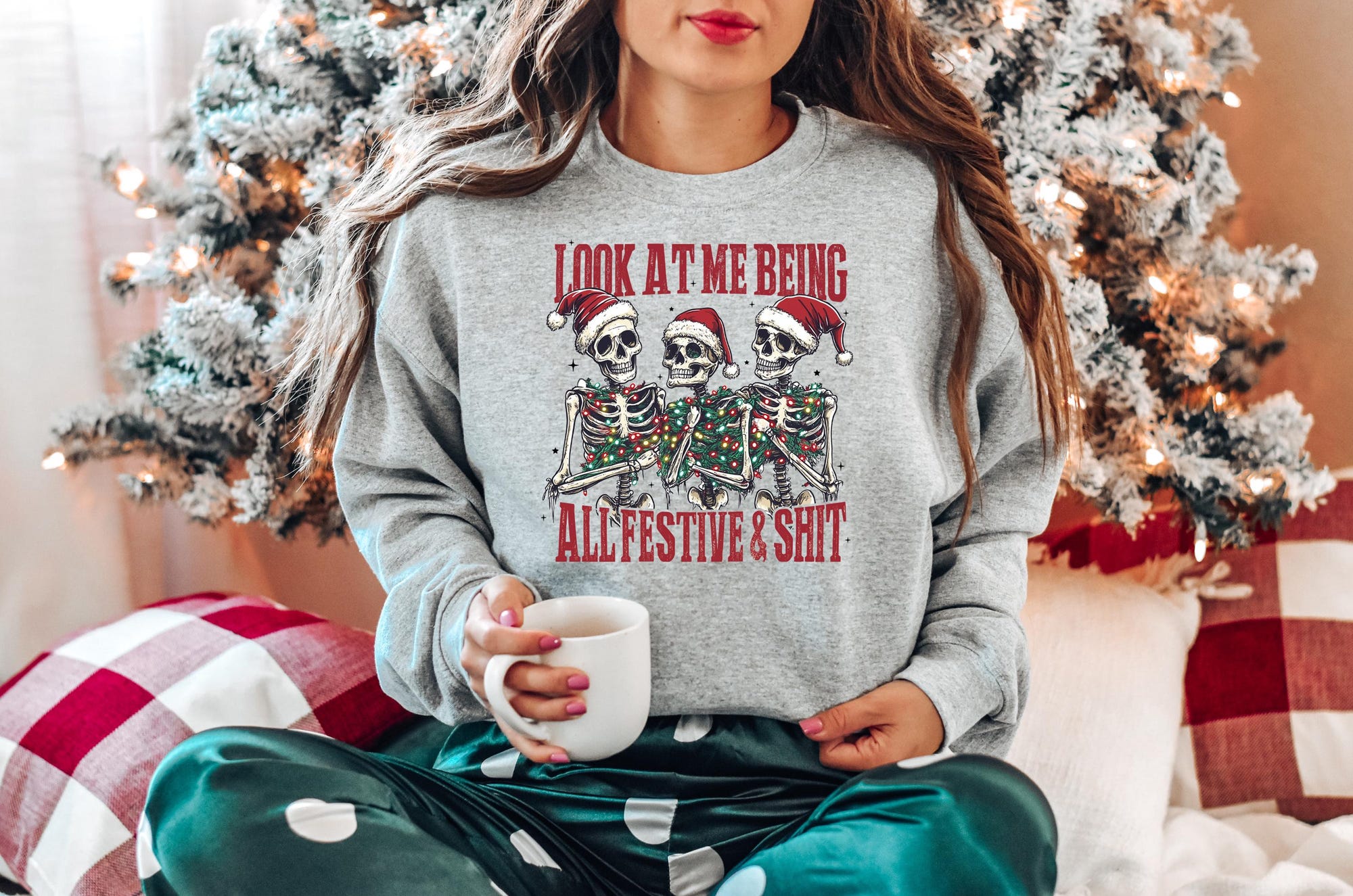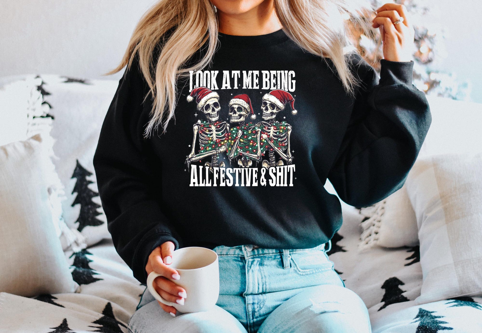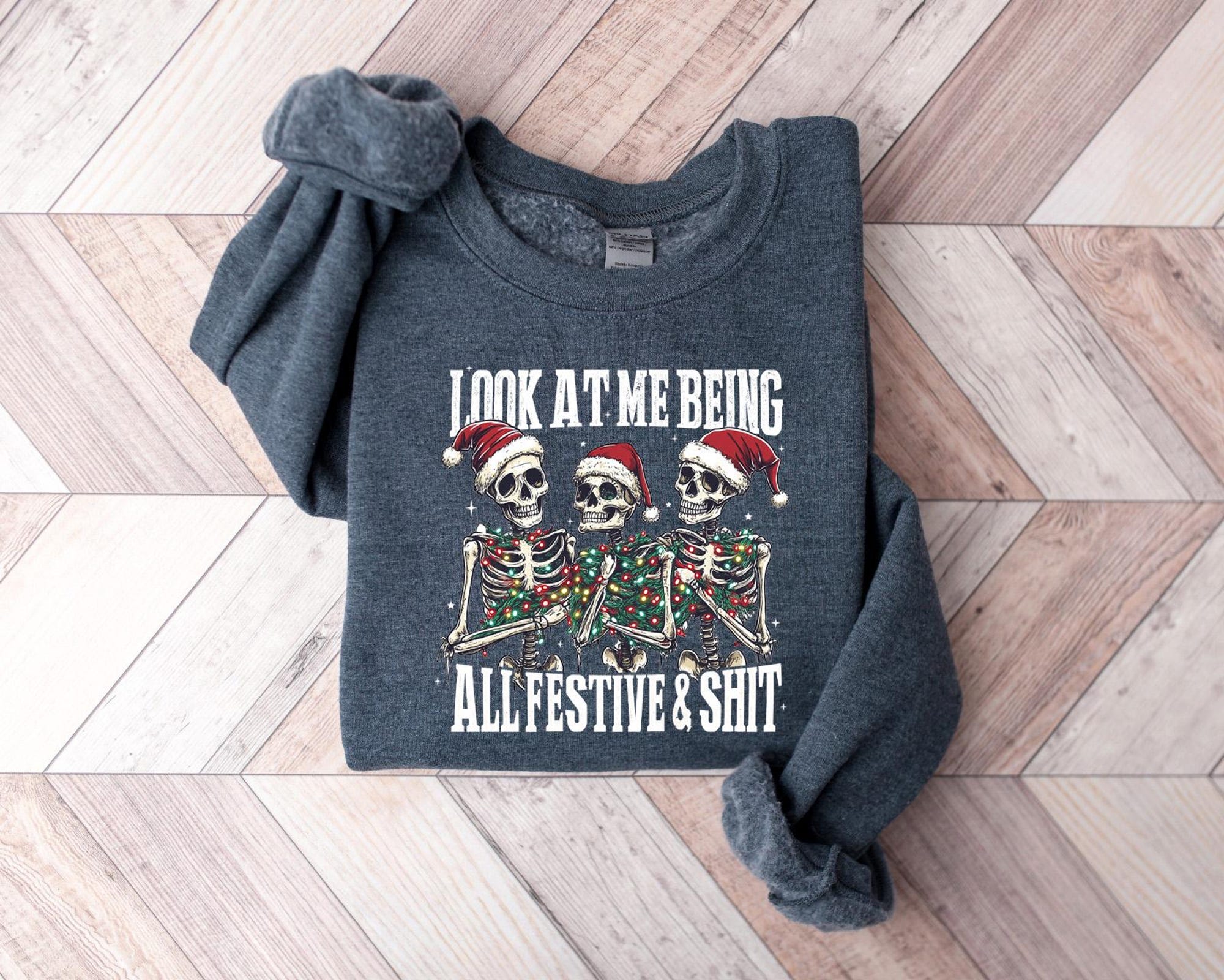 Look At Me Being All Festive Humor Christmas Sweatshirt, Sarcastic Holiday Shirt, Funny Christmas Shirt, Christmas Humor Shirt, Meme Shirt