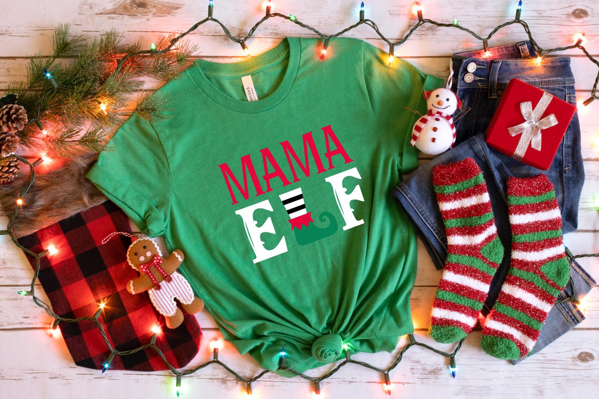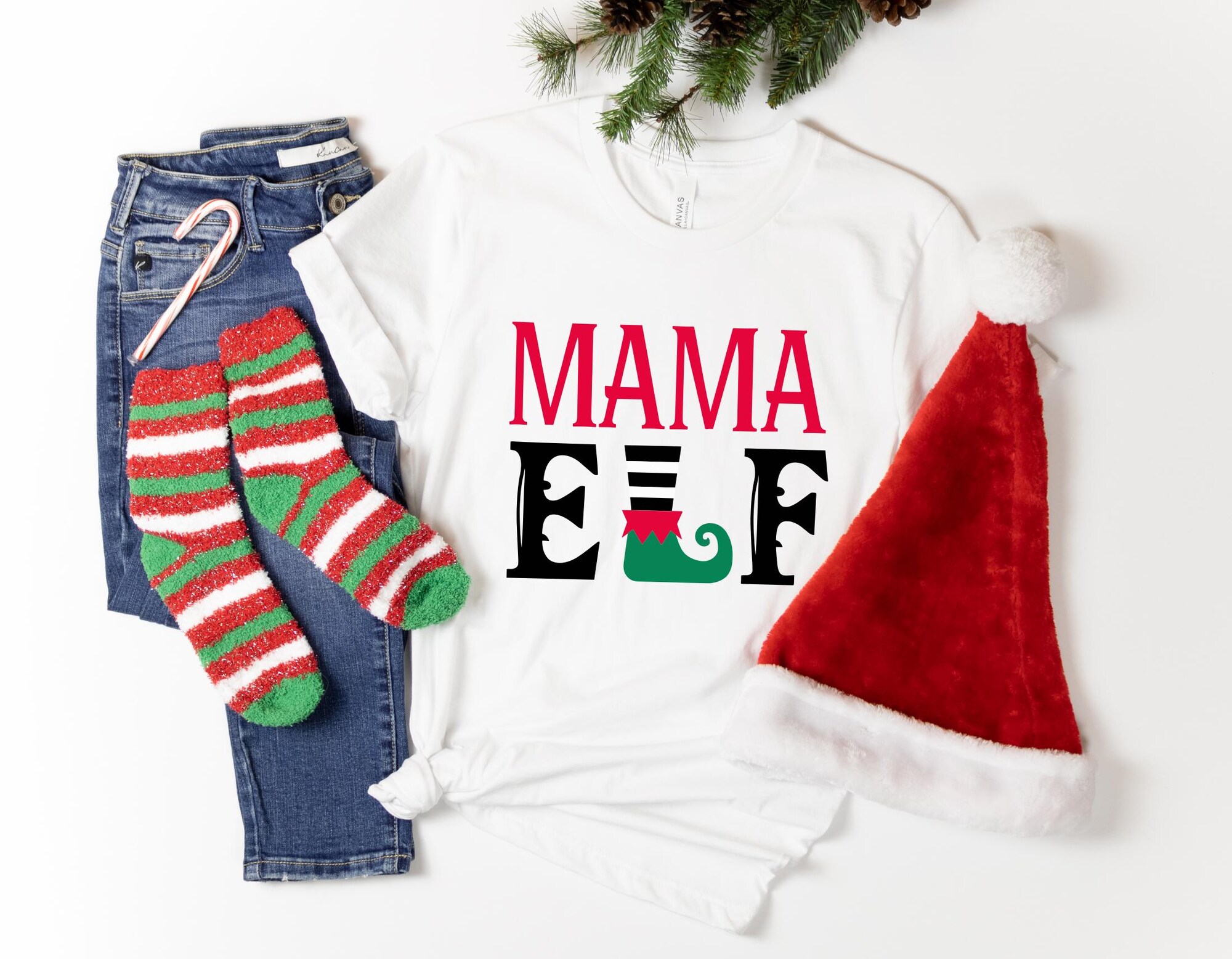 Mama Elf Shirt, Matching Family Christmas Elf Tee, Funny Holiday Pajama Shirt, Cute Xmas Outfit, Santa’s Helper Top for Mom, Gift for Her