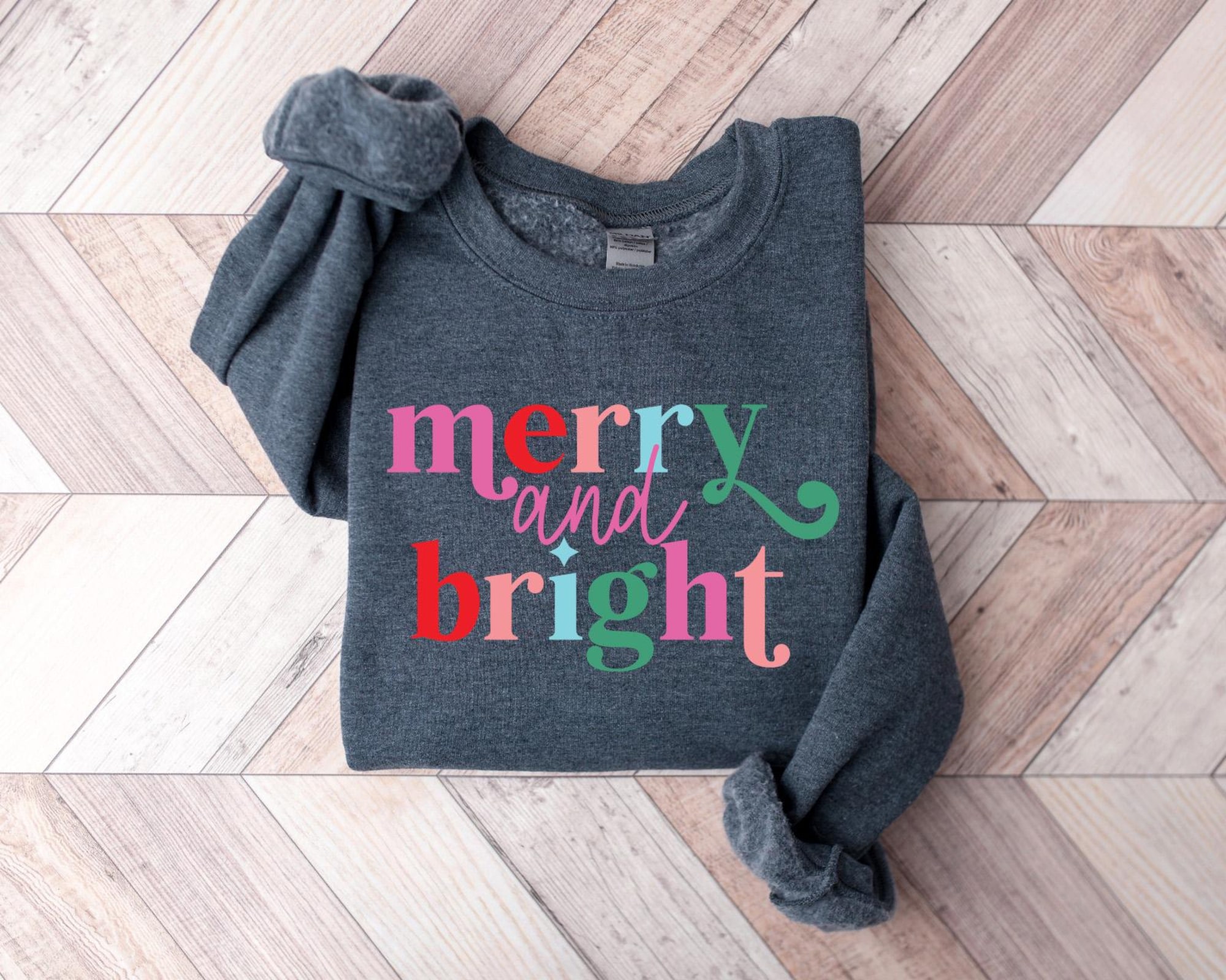 Merry and Bright Sweatshirt, Christmas Sweatshirt, Family Christmas Sweatshirt, Christmas Sweatshirts for Women, Merry Christmas Sweatshirt