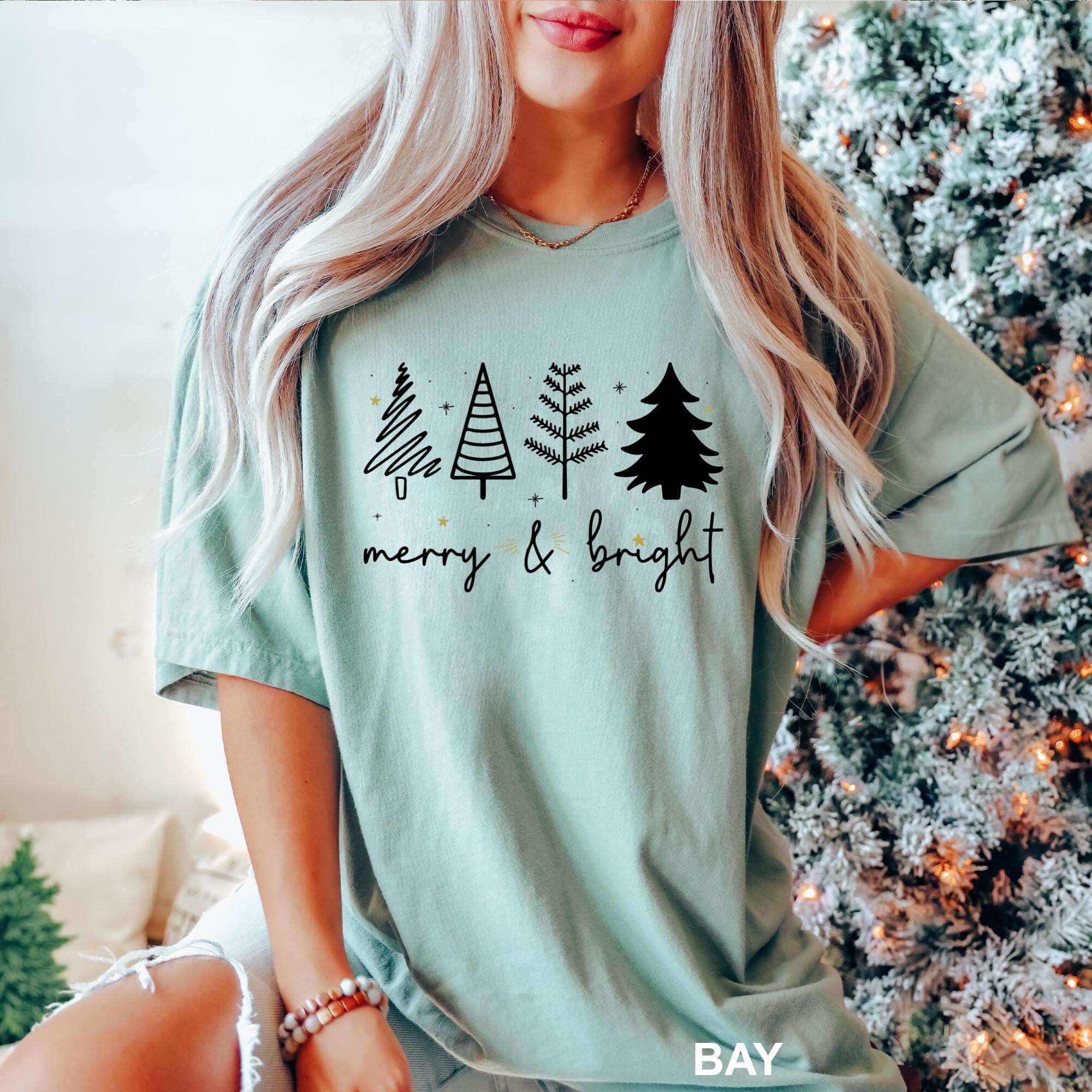 Merry and Bright Trees, Comfort Colors Tee, Women’s Christmas Shirt, Womans Holiday Shirt,Cute Holiday Tee,Christmas Tree Shirt