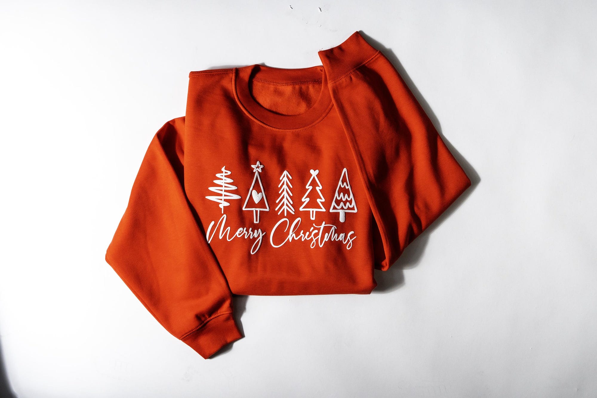 Merry Christmas Puff Sweatshirt, Embossed Merry Christmas Shirt, Merry Christmas Shirt, Christmas Women Shirt,Christmas Tree Puff Sweatshirt